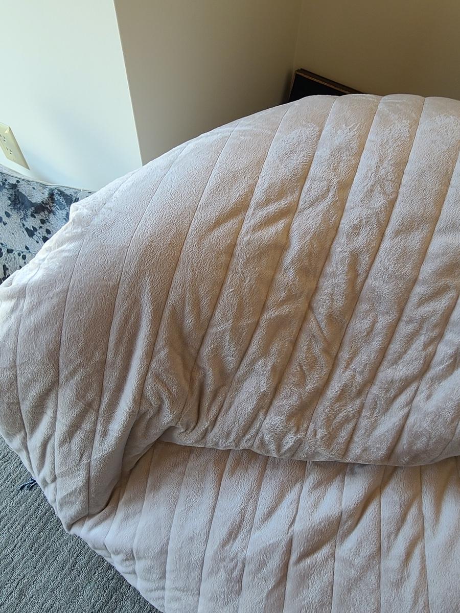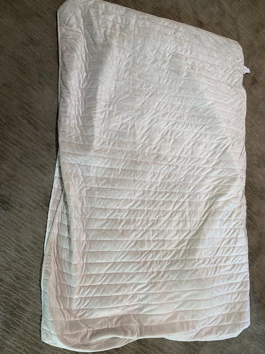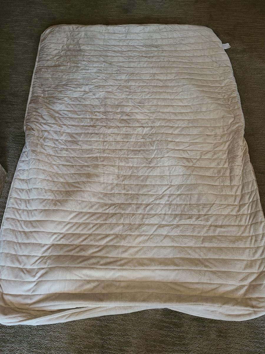 Neutral pale gray, color weighted throw blanket. Please see all pictures as they are the best representation of the items in the lot, the condition of the lot, and will show measurements if taken. If purchasing furniture you must be able to move yourself with your own help, and truck.