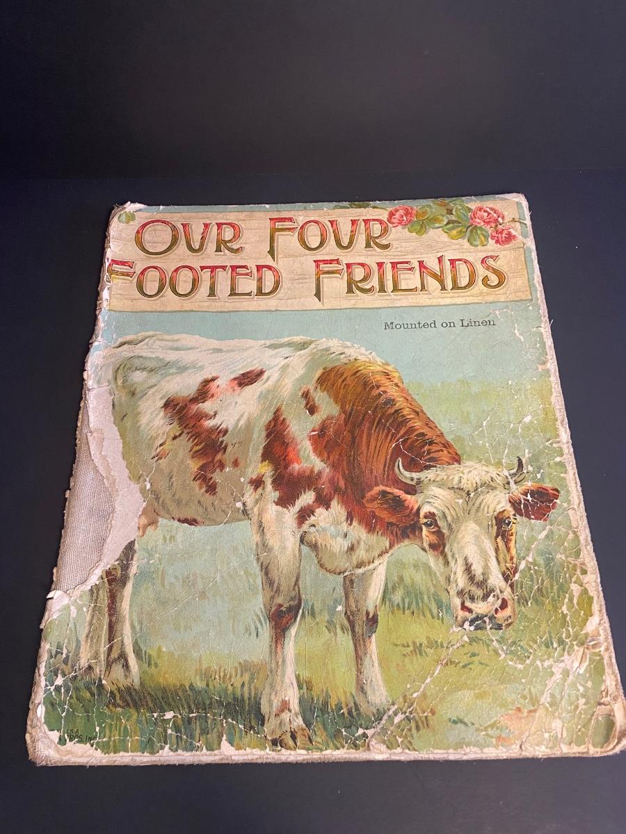 Our Four Footed Friends book is printed on linen. All books have been pre loved and show ware. Beautiful illustrations with vivid colors. Please see all pictures as they are the best representation of the items. The pictures show condition, measurements if taken, and what is included in the lot. Due to the large amount that we photograph and the time frame, we are not always able to take measurements. All items unless noted, are pre-owned and have been used. If you purchased furniture, you must bring help. We do not allow one person to carry large furniture out on their own. Bring help, tools and a truck for the safety of our client’s homes, and your personal safety. Company policy. Thank you.