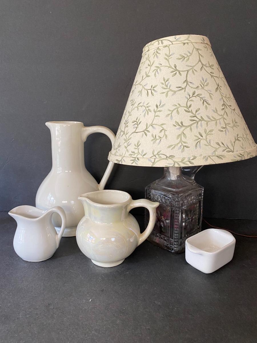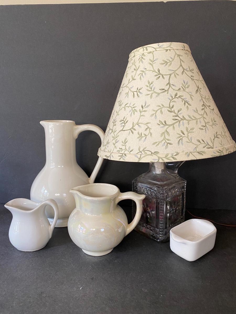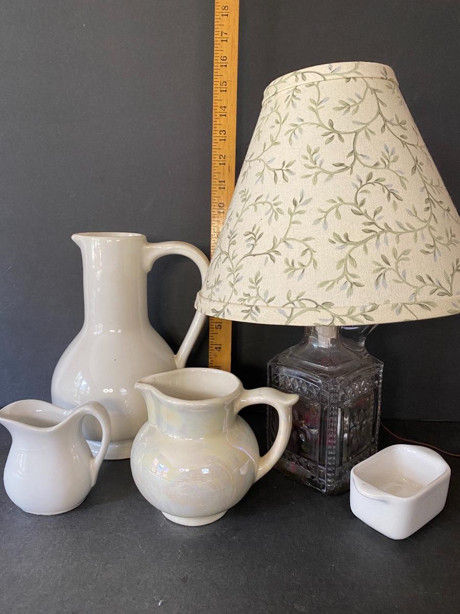 Lot 054: McCoy Pottery Pitcher/Vase and Creamer, Accent Lamp and more