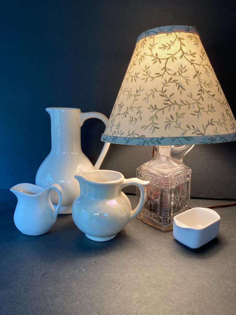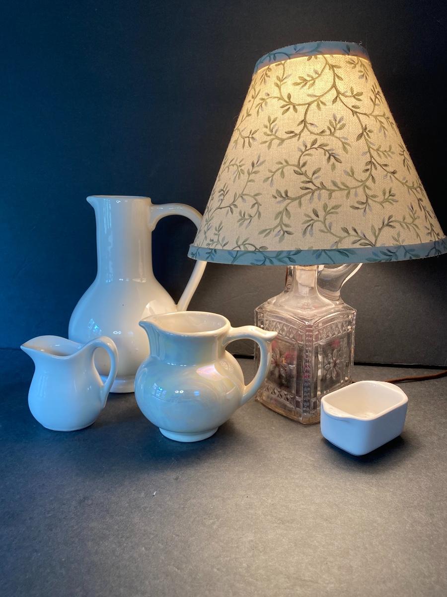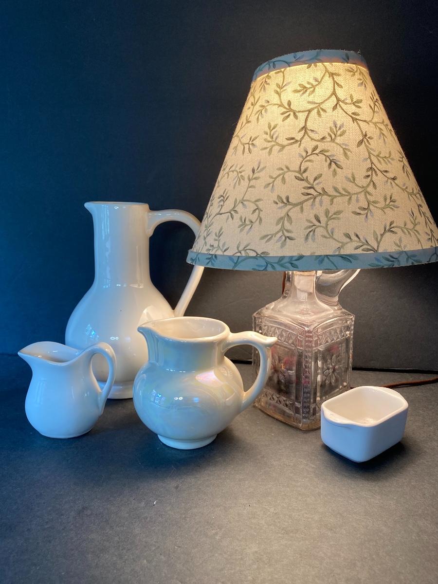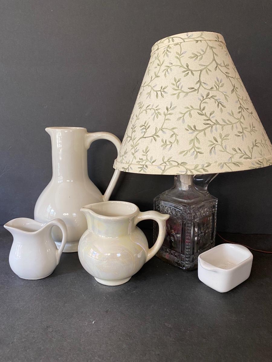 Lot 054: McCoy Pottery Pitcher/Vase and Creamer, Accent Lamp and more