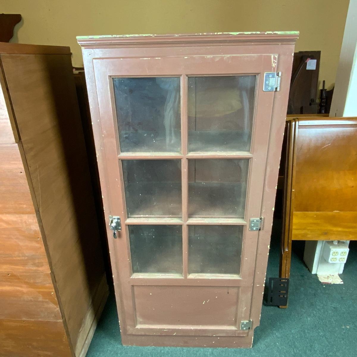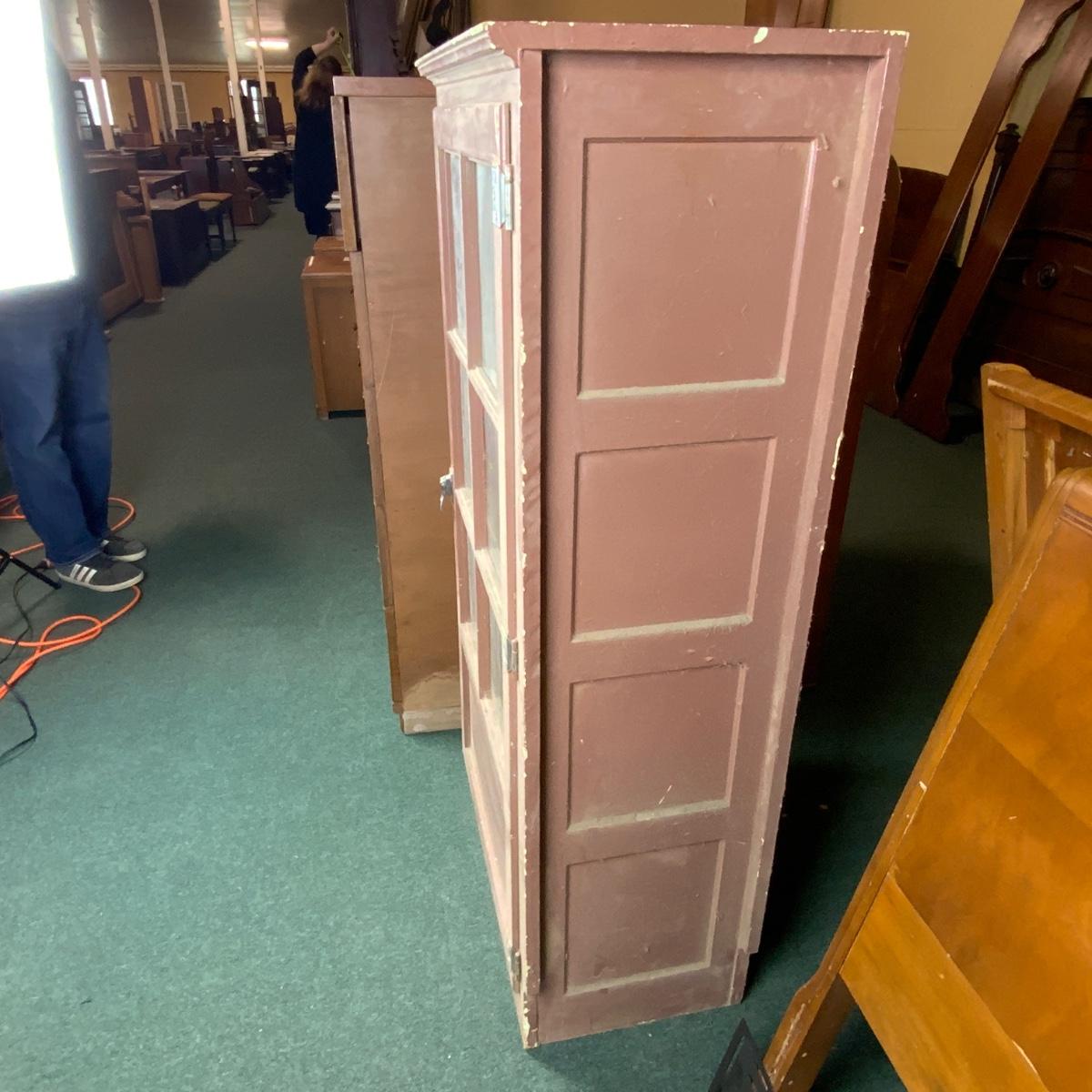 Small Chippy Paint Cabinet. Obviously loved over the years. Multiple layers of paint can be seen on the back panel. This piece will look great any color you want! //::\\ Please see photos for details and condition. No attempt has been made to hide any imperfections. All items listed in this auction are warehouse items, and need to be cleaned. A majority of the items need restoration as well. All items are sold AS IS and WITHOUT GUARANTEE. If you are uncertain about an item, DO NOT BID. Due to the nature of this online auction in-person inspection is HIGHLY recommended. All Sales are FINAL. Pick Up Times are FIRM. Please confirm with your own schedule that you can pick up in the scheduled times listed in the Terms and Conditions. Any questions please message the auctioneer. DO NOT Contact The Harp Gallery.