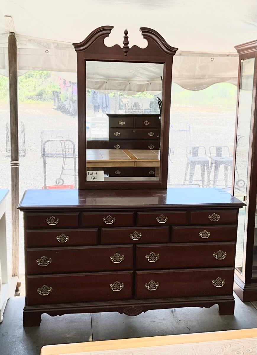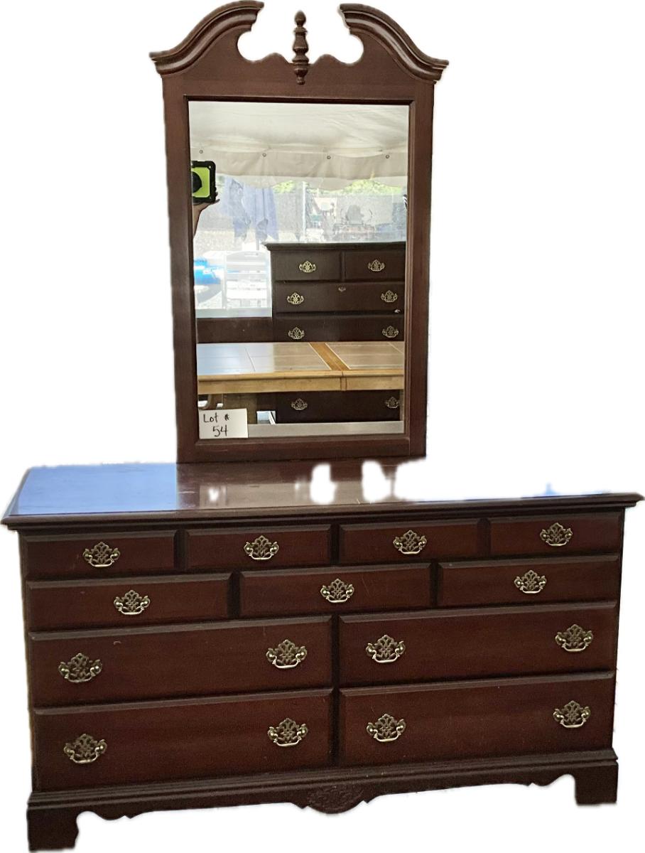 Lot# 054 Vintage Nine Drawer Dresser with Detachable Mirror