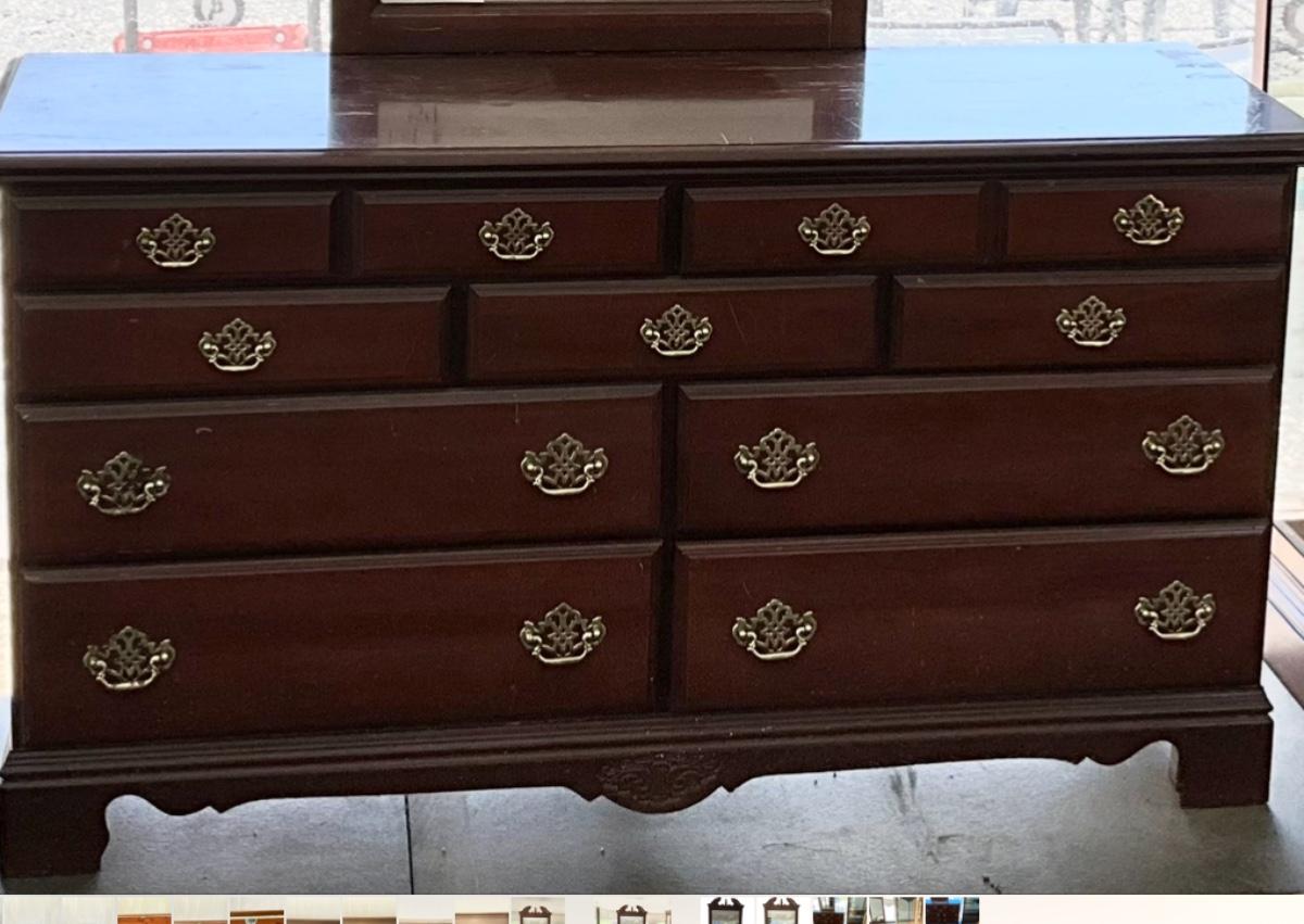 Vintage Nine Drawer Dresser with Detachable Mirror