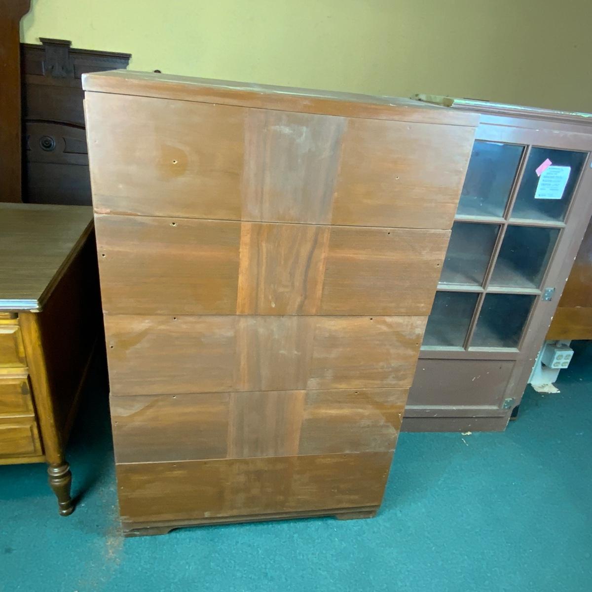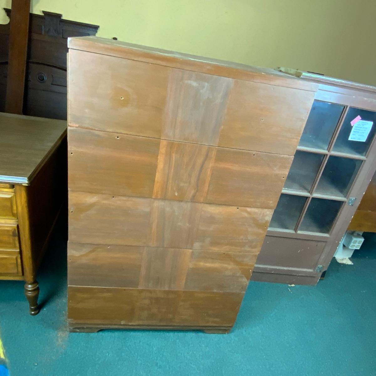Art Deco Walnut Highboy. Nice classic lines. //::\\ Please see photos for details and condition. No attempt has been made to hide any imperfections. All items listed in this auction are warehouse items, and need to be cleaned. A majority of the items need restoration as well. All items are sold AS IS and WITHOUT GUARANTEE. If you are uncertain about an item, DO NOT BID. Due to the nature of this online auction in-person inspection is HIGHLY recommended. All Sales are FINAL. Pick Up Times are FIRM. Please confirm with your own schedule that you can pick up in the scheduled times listed in the Terms and Conditions. Any questions please message the auctioneer. DO NOT Contact The Harp Gallery.
