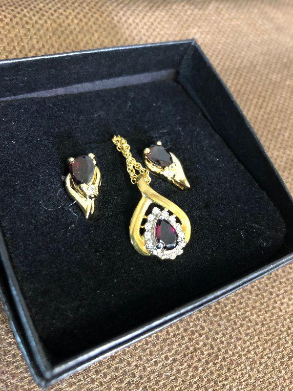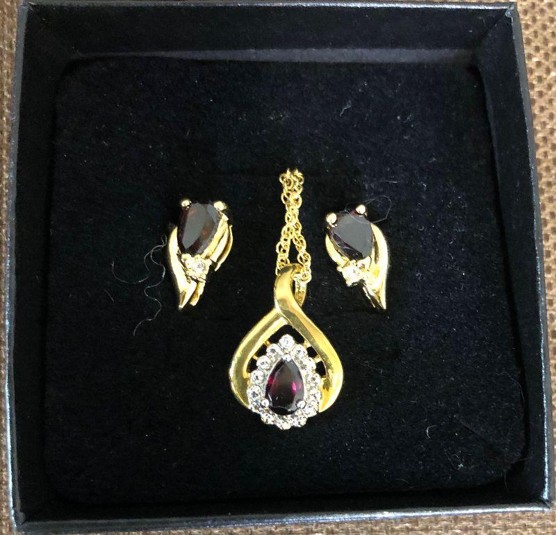 Lot #056 Gold Tone Earing And Pendant Set GARNETS