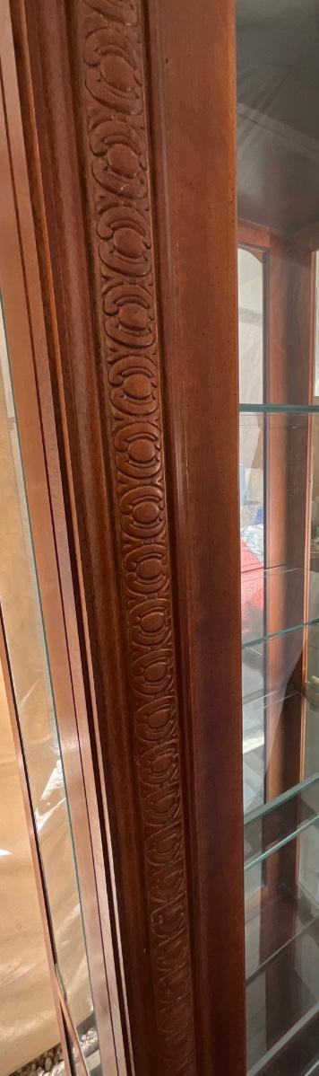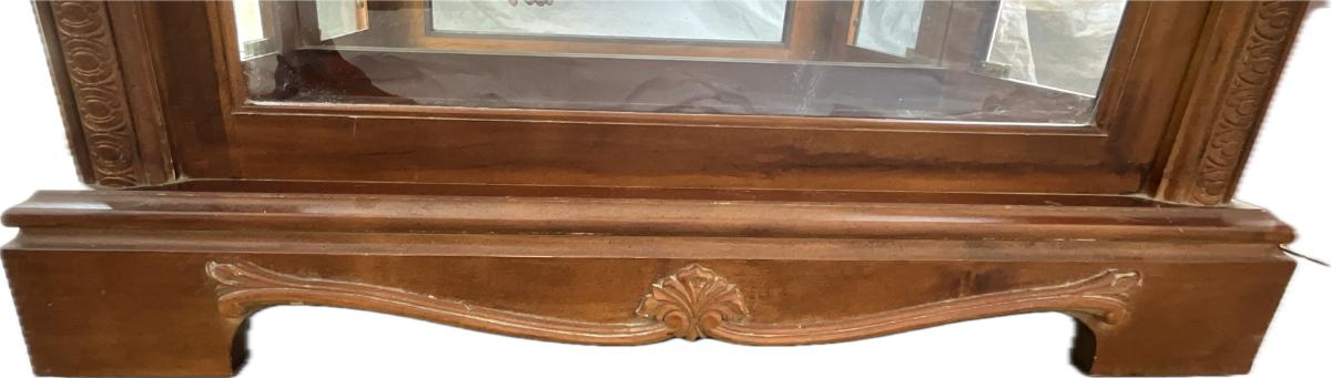 Vintage Engraved Curio Cabinet with Lights & Mirrored Back