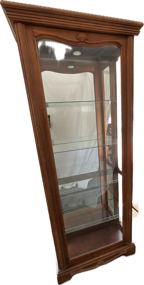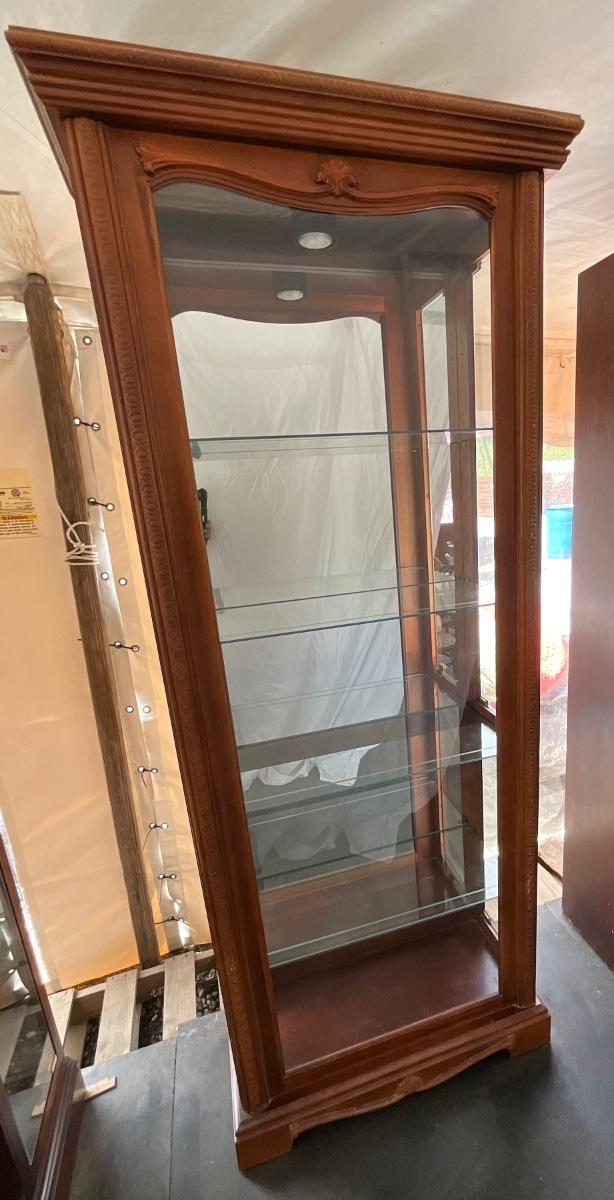 Lot# 056 Vintage Engraved Curio Cabinet with Lights & Mirrored Back