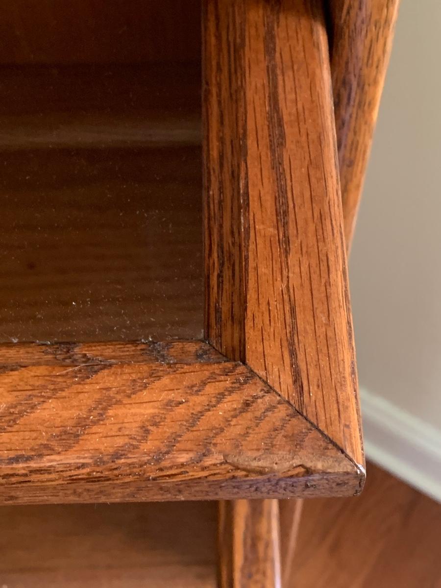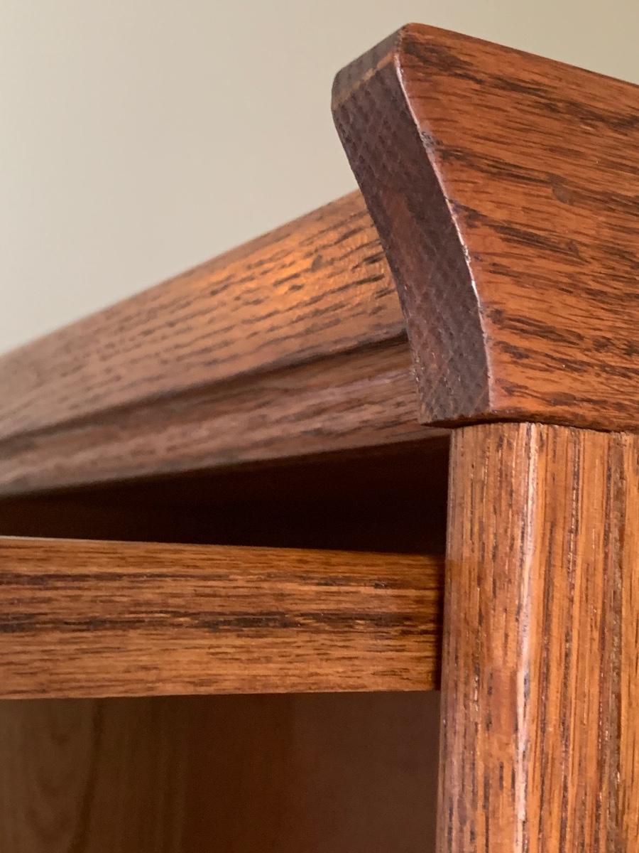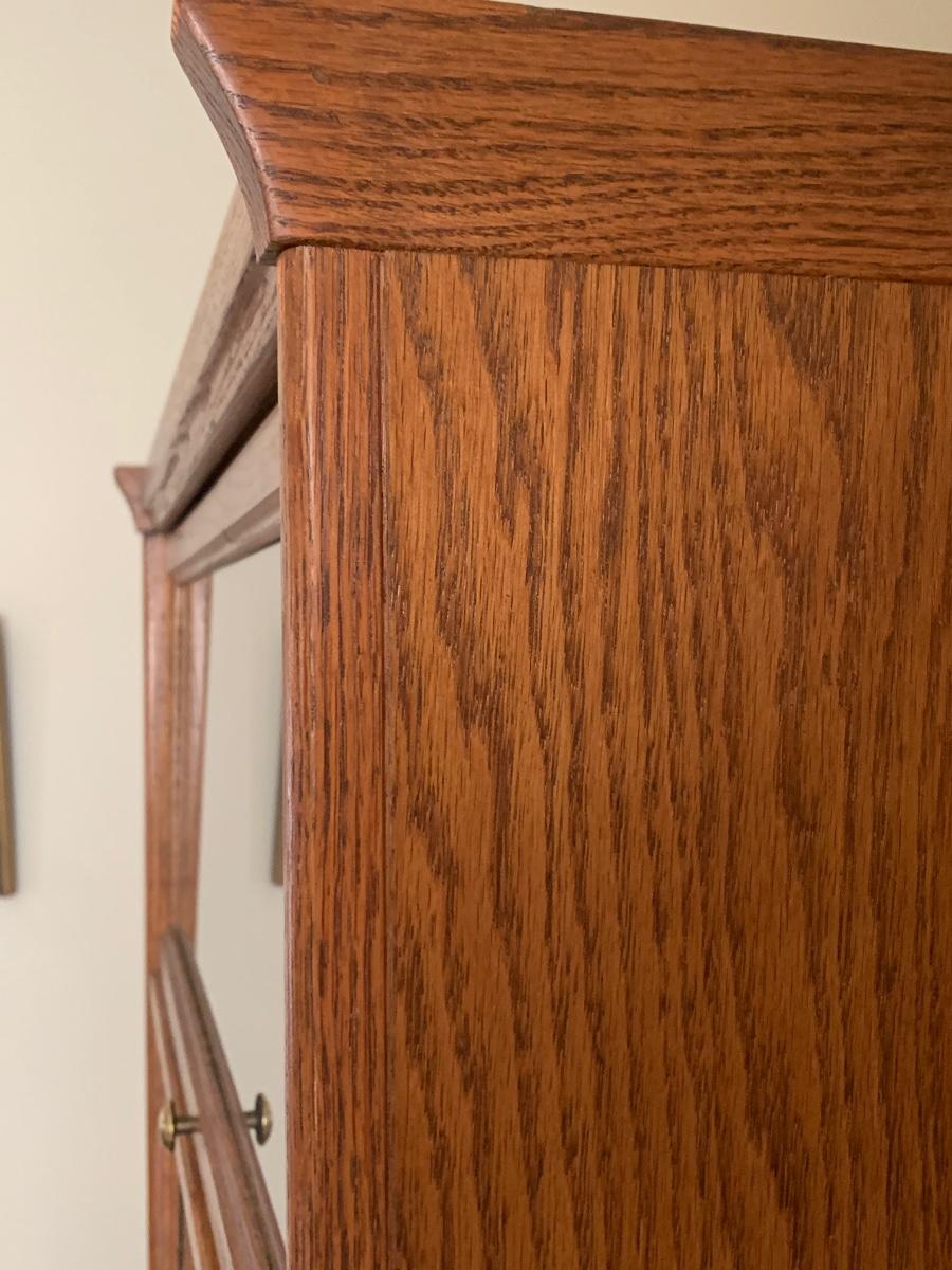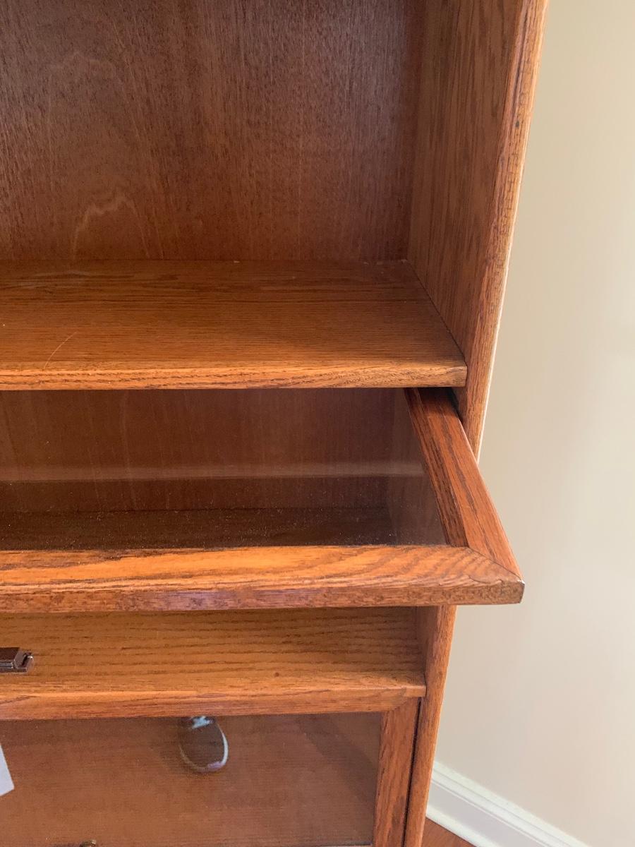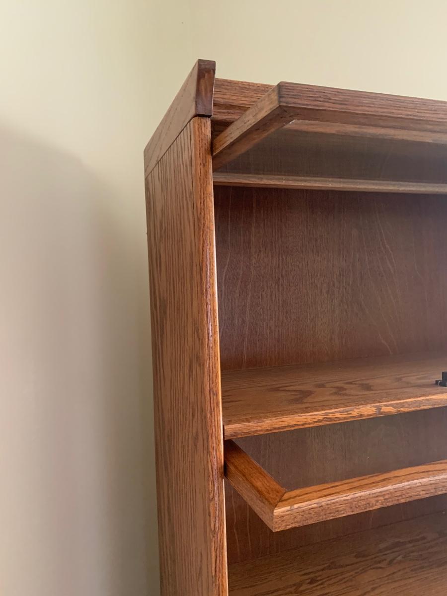 Oak finish Barrister bookcase 33 x 13 x 74. These is a mix of solid and pressed wood.