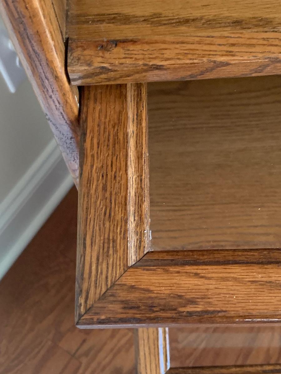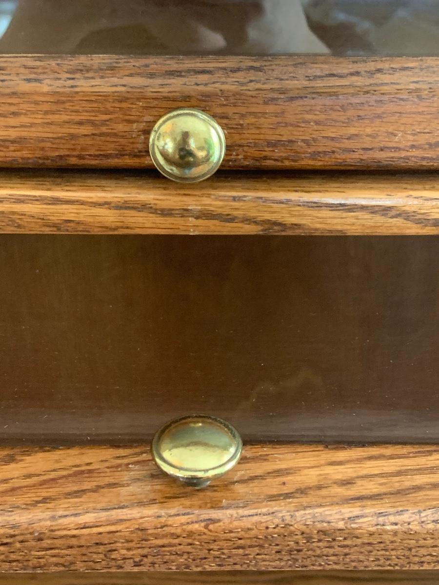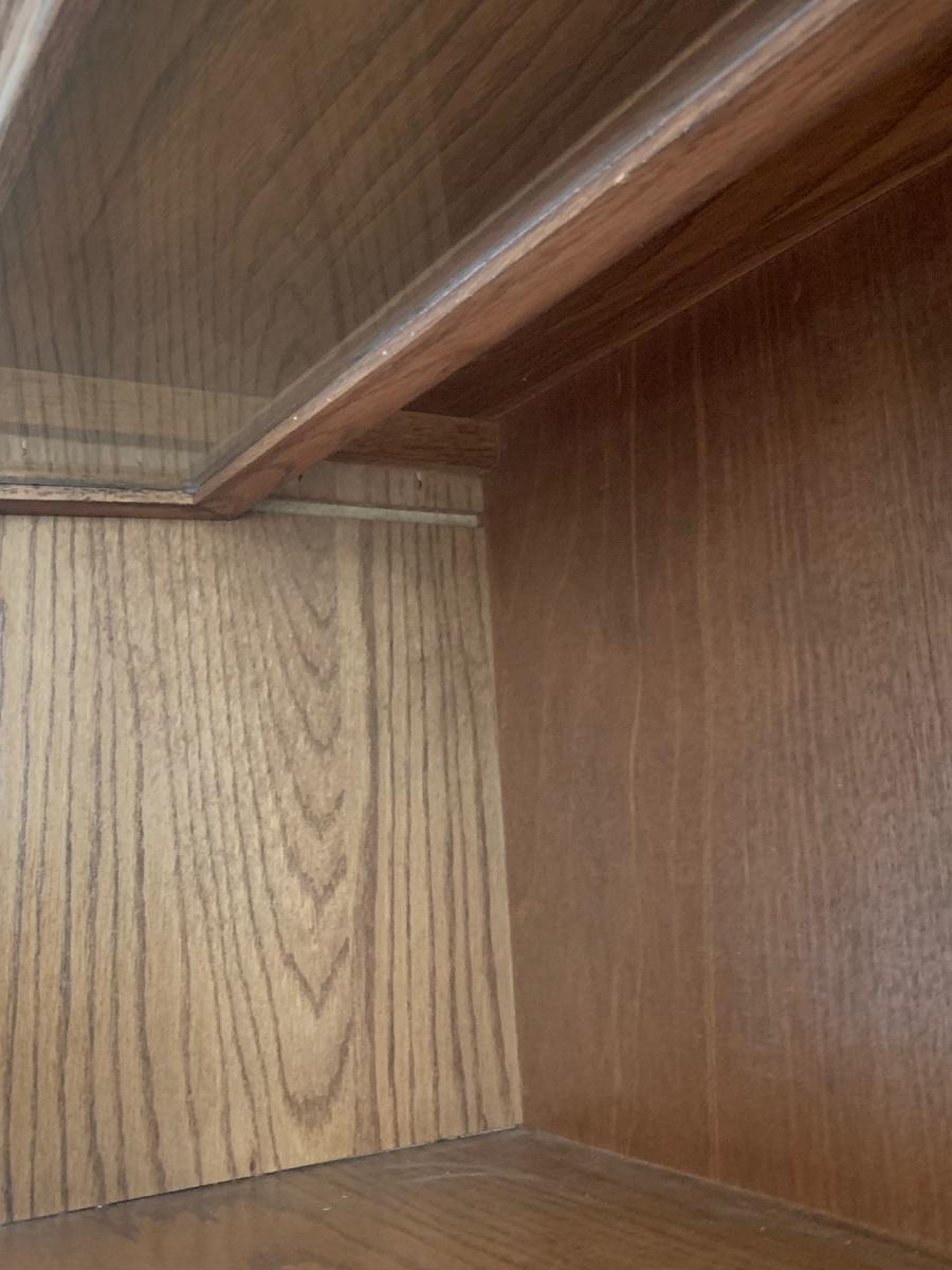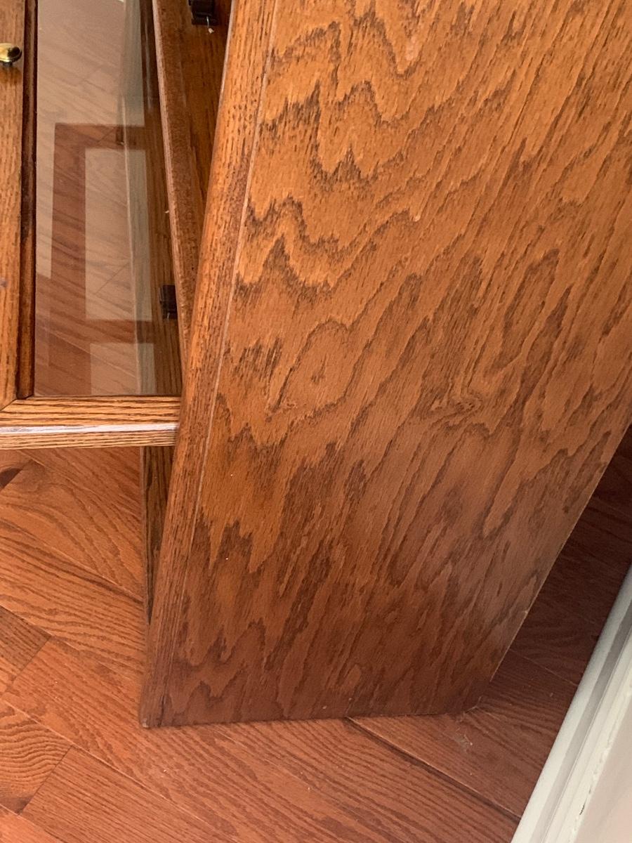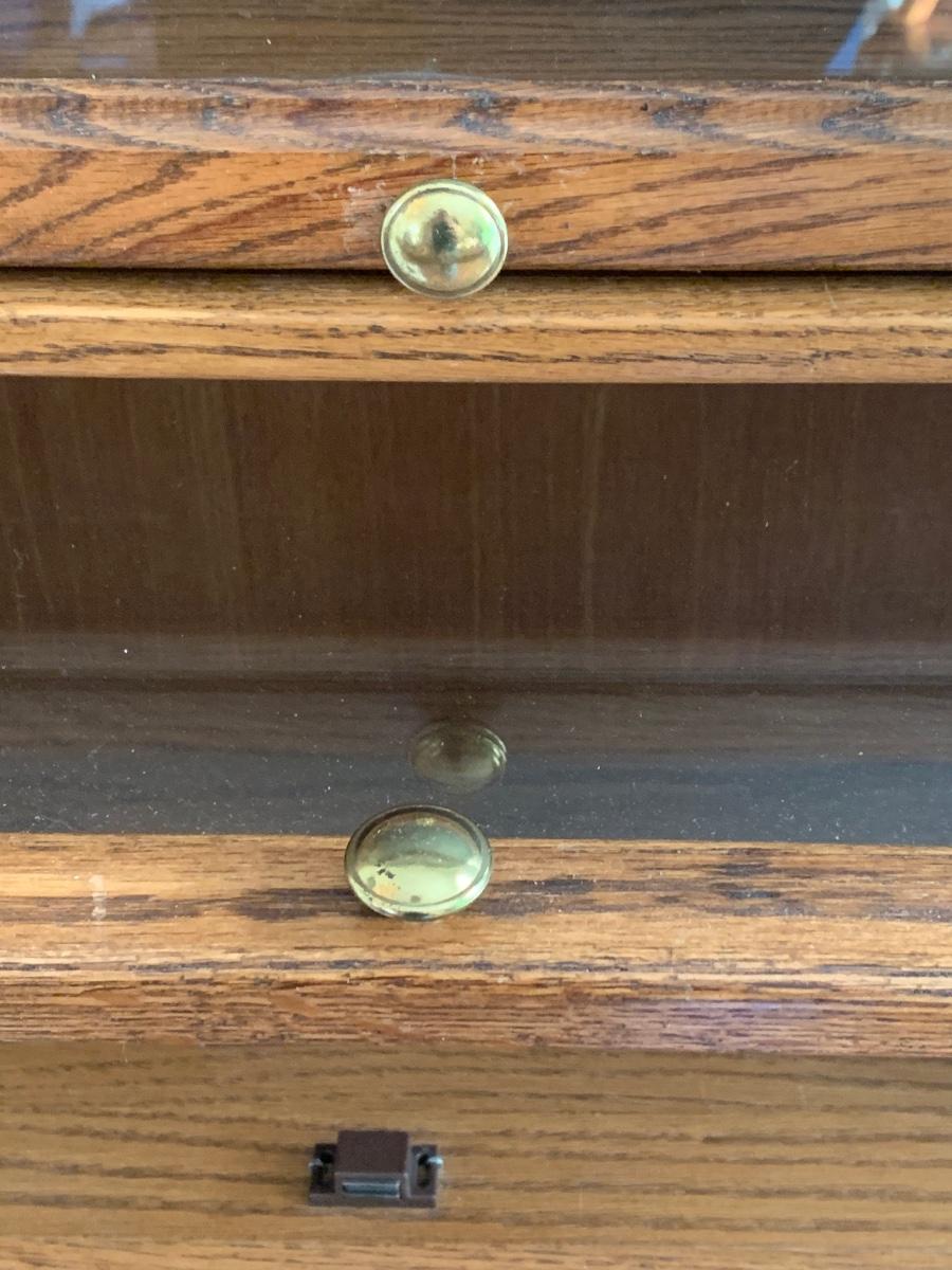 Oak finish Barrister bookcase 33 x 13 x 74. These is a mix of solid and pressed wood.
