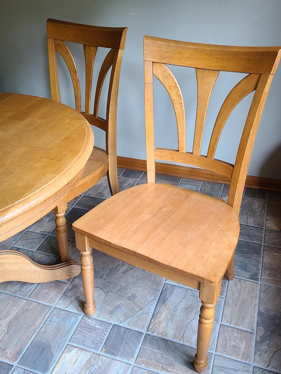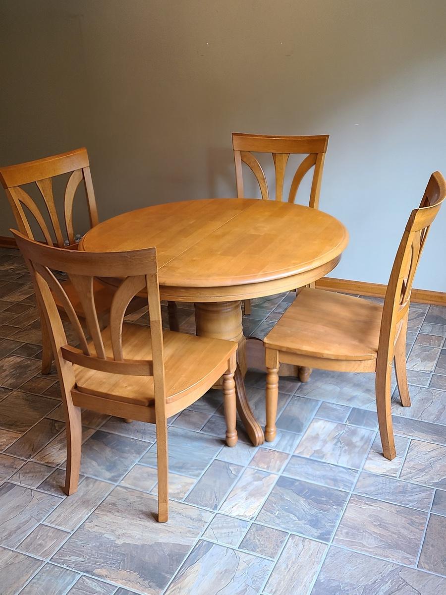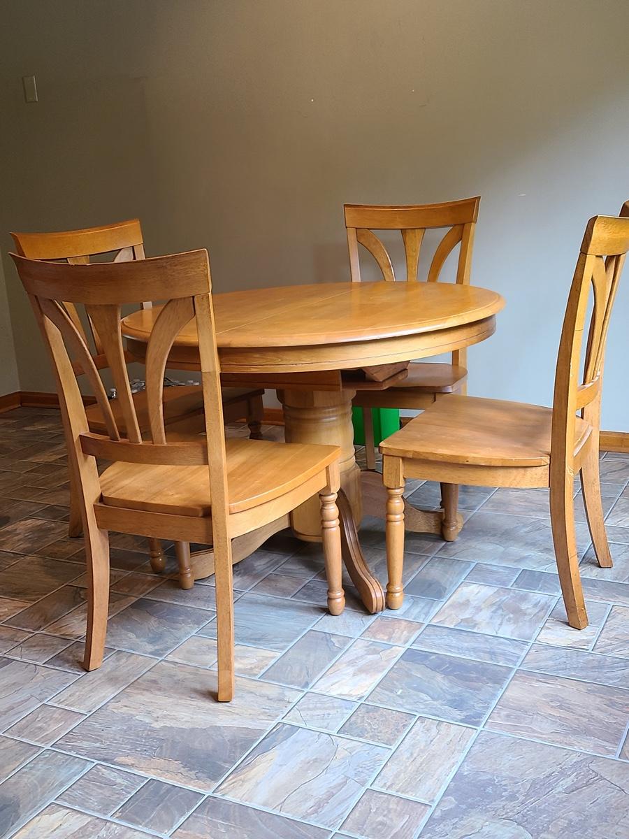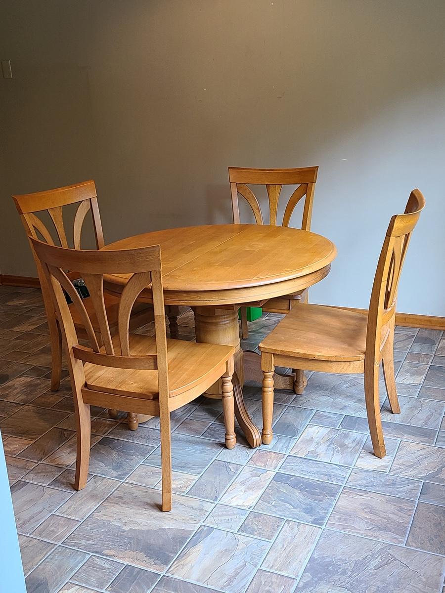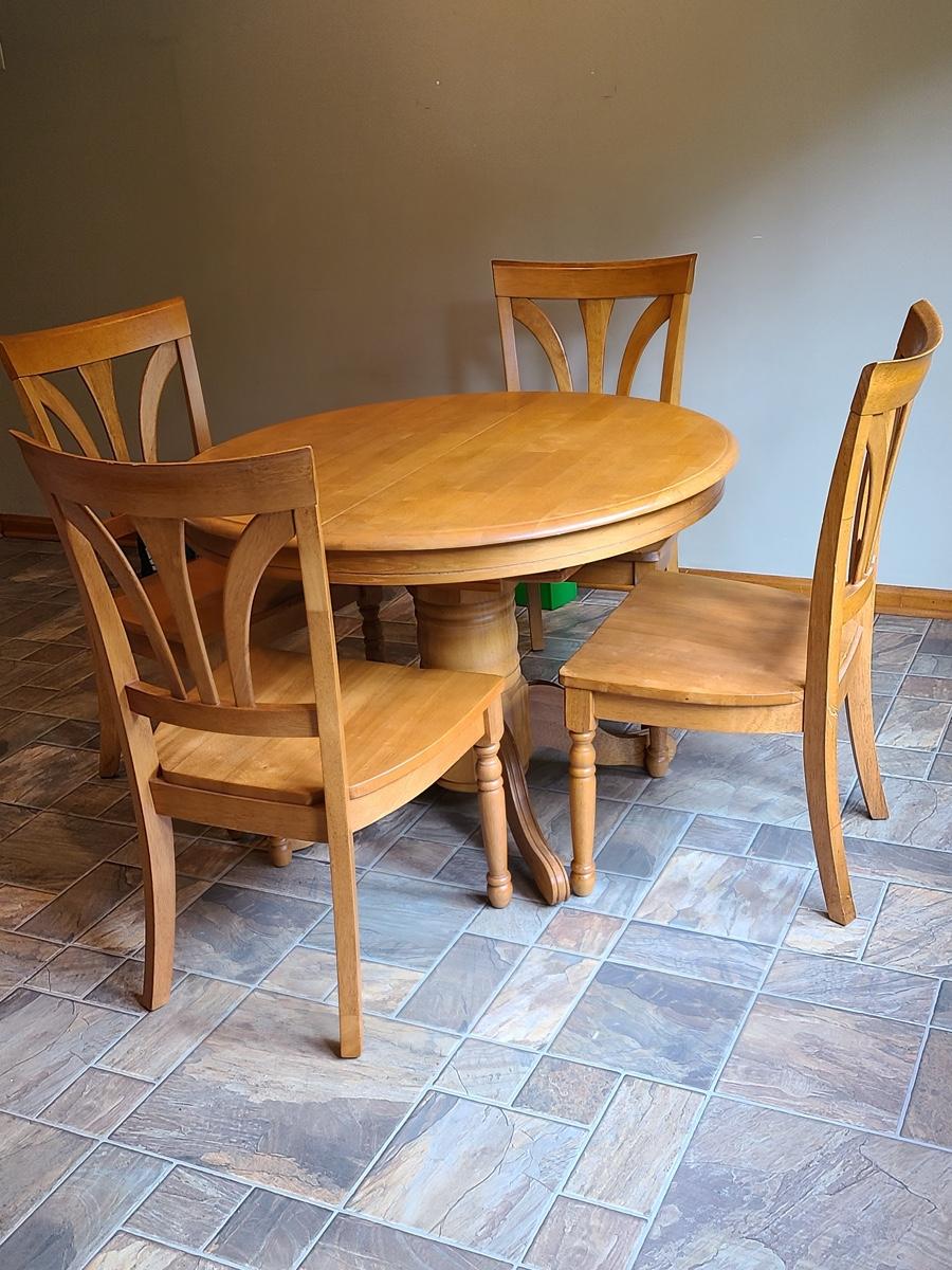 Lot 060: Solid Wood Extending Dining Table with Four Chairs