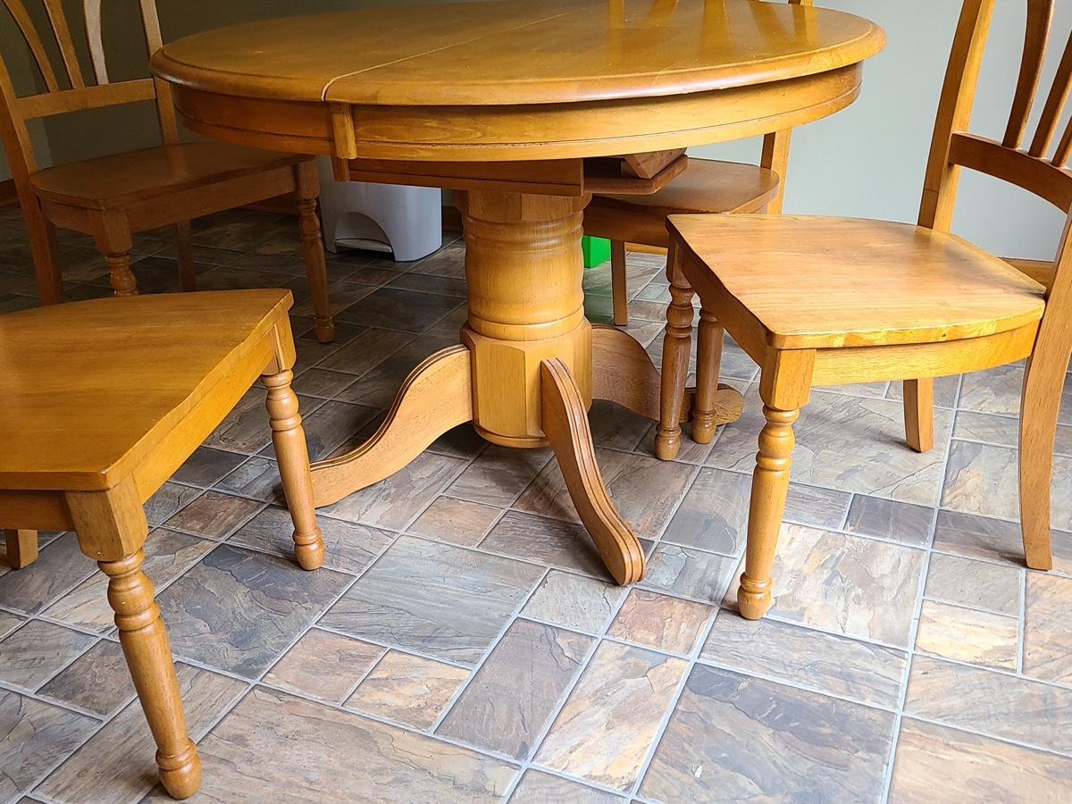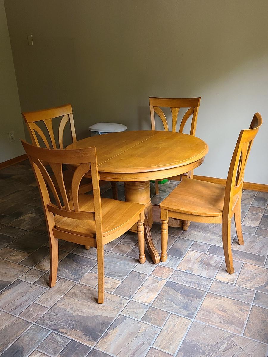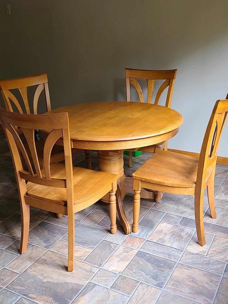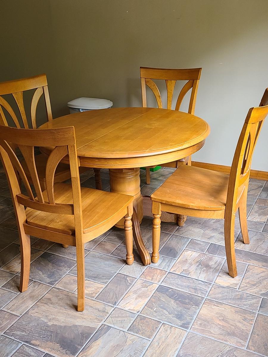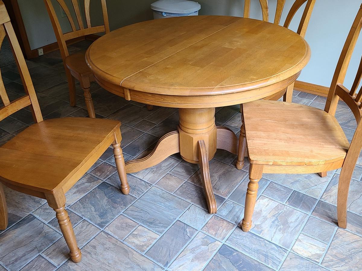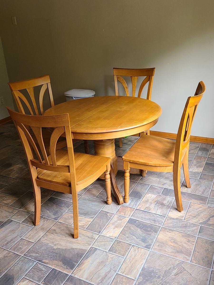 Lot 060: Solid Wood Extending Dining Table with Four Chairs