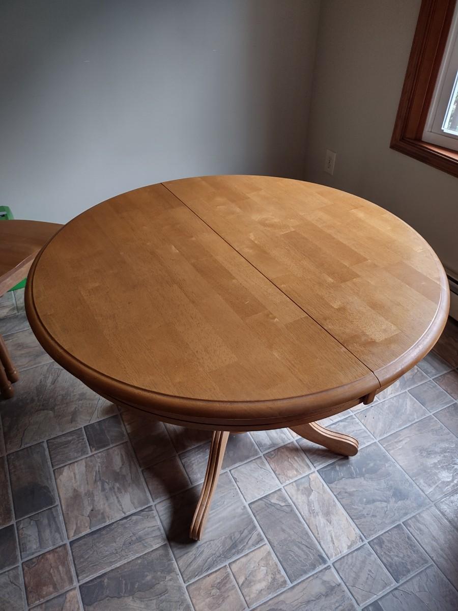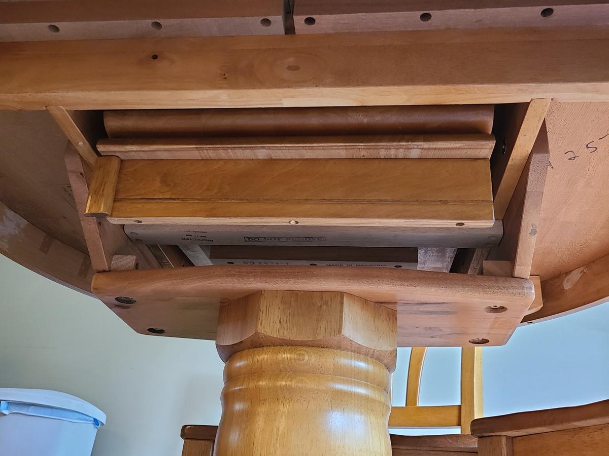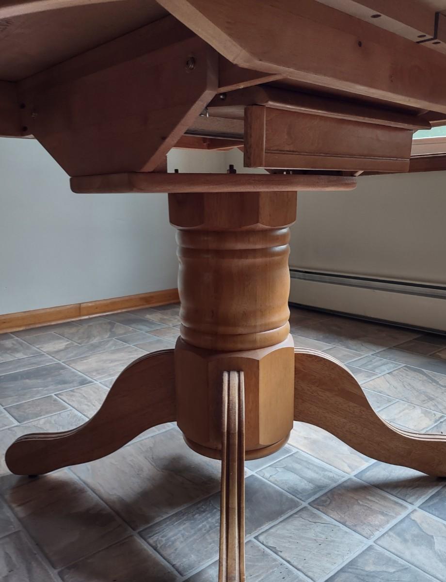 Extending dining table with internal leaf. Table With Leaf 56×29. Very nice! Please see all pictures as they are the best representation of the items. The pictures show condition, measurements if taken, and what is included in the lot. Due to the large amount that we photograph and the time frame, we are not always able to take measurements. All items unless noted, are pre-owned and have been used. If you purchased furniture, you must bring help. We do not allow one person to carry large furniture out on their own. Bring help, tools and a truck for the safety of our client’s homes, and your personal safety. Company policy. Thank you.