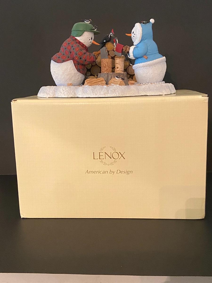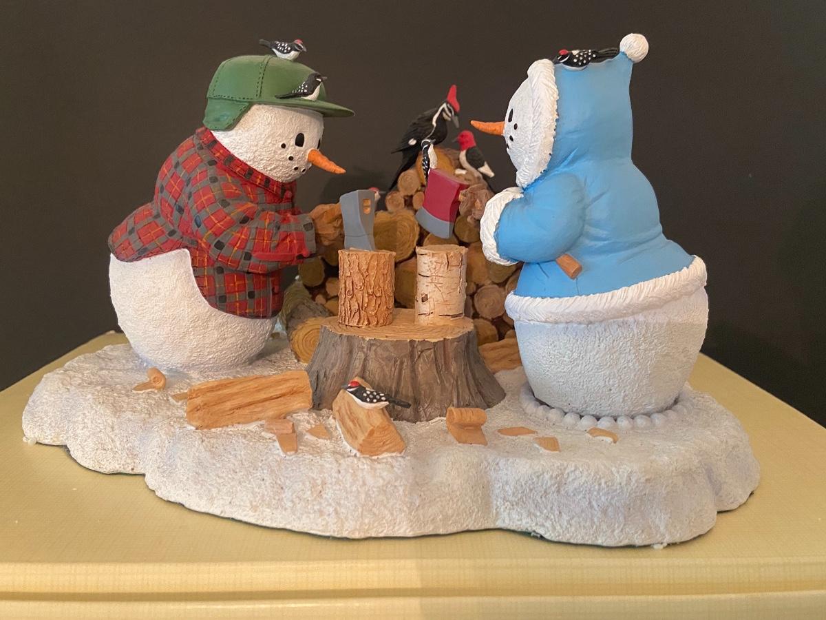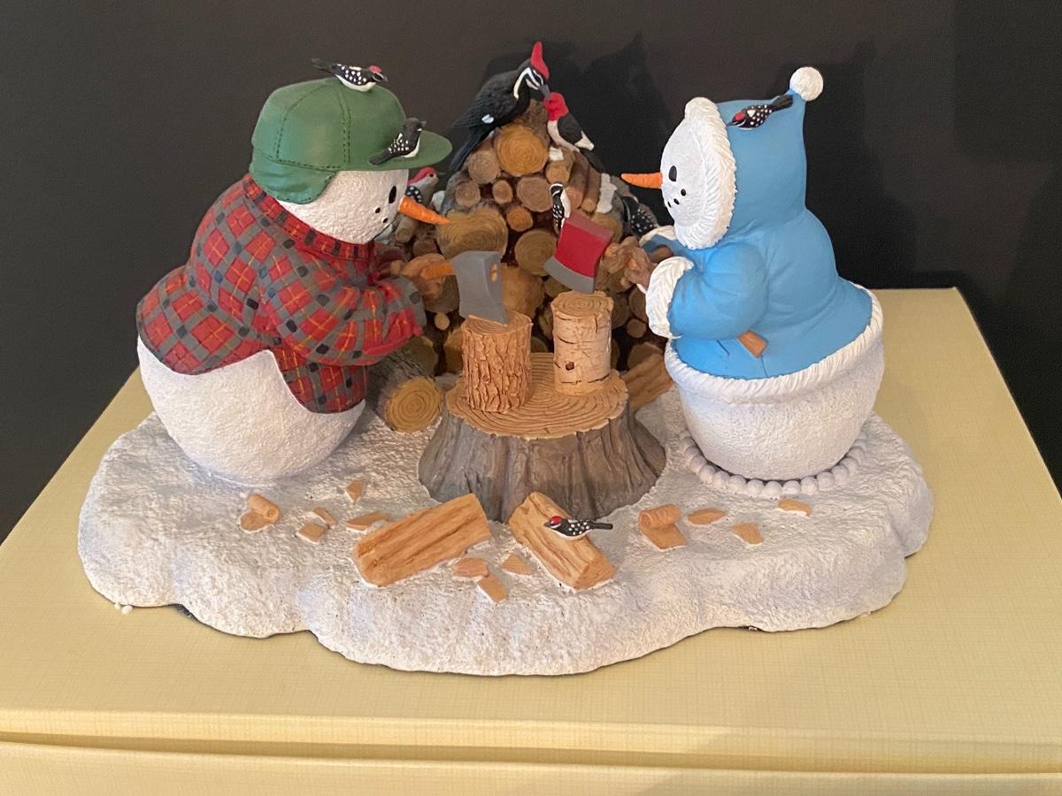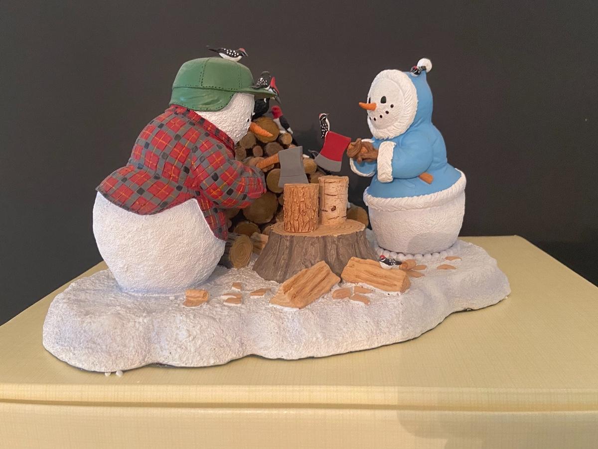 Lot 061: "Lumber Jack and Jill" Lenox Snowman Set