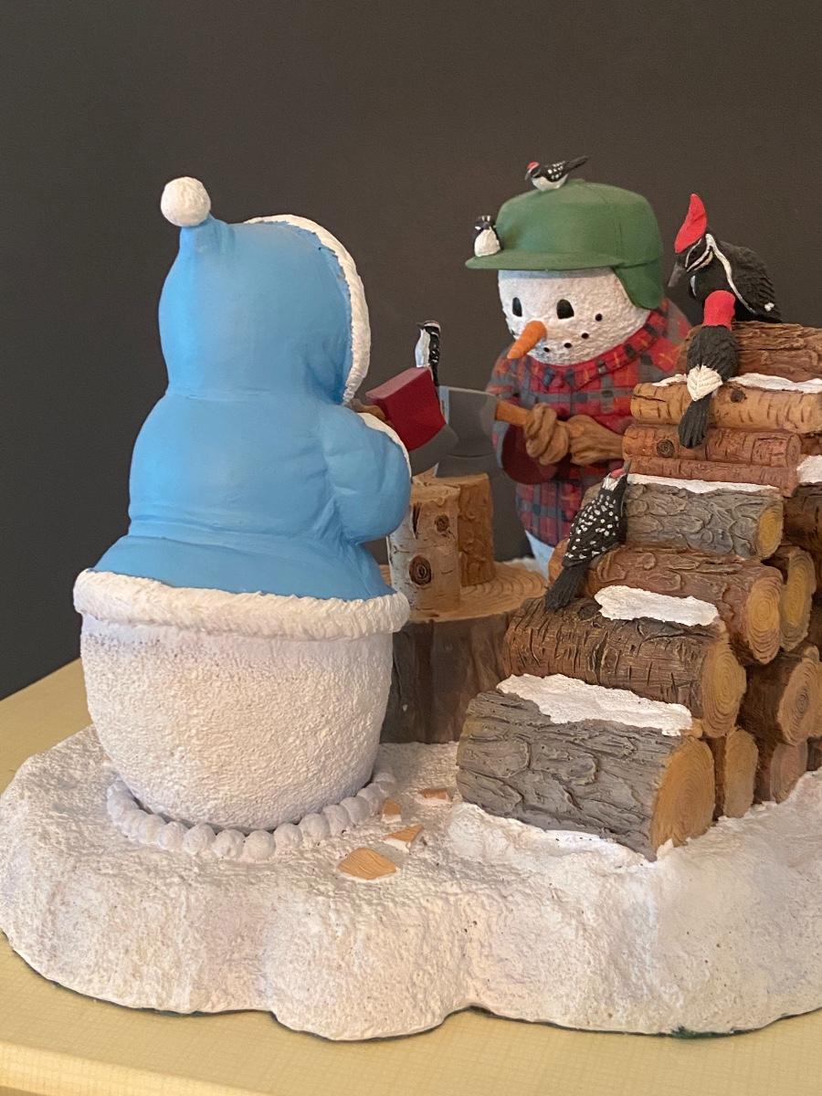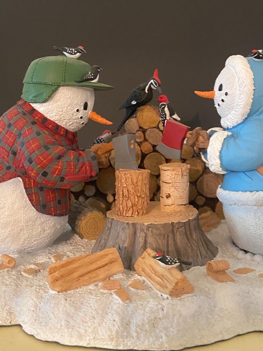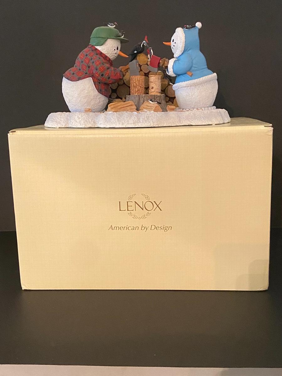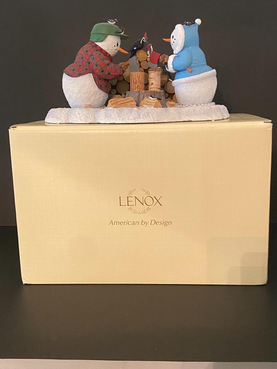 Lot 061: "Lumber Jack and Jill" Lenox Snowman Set