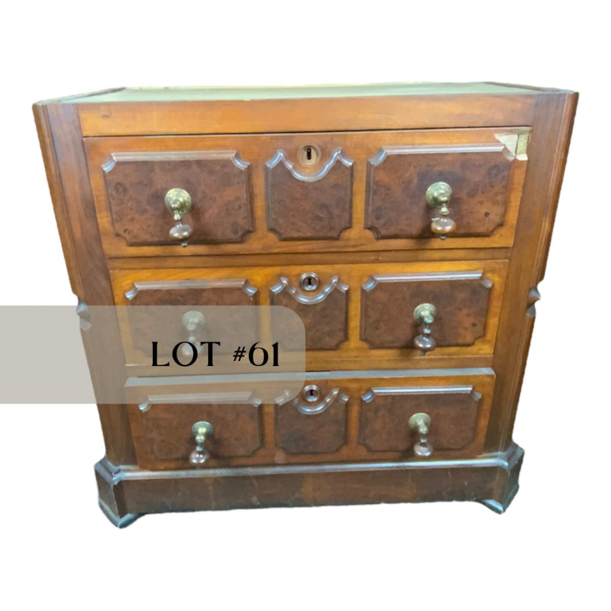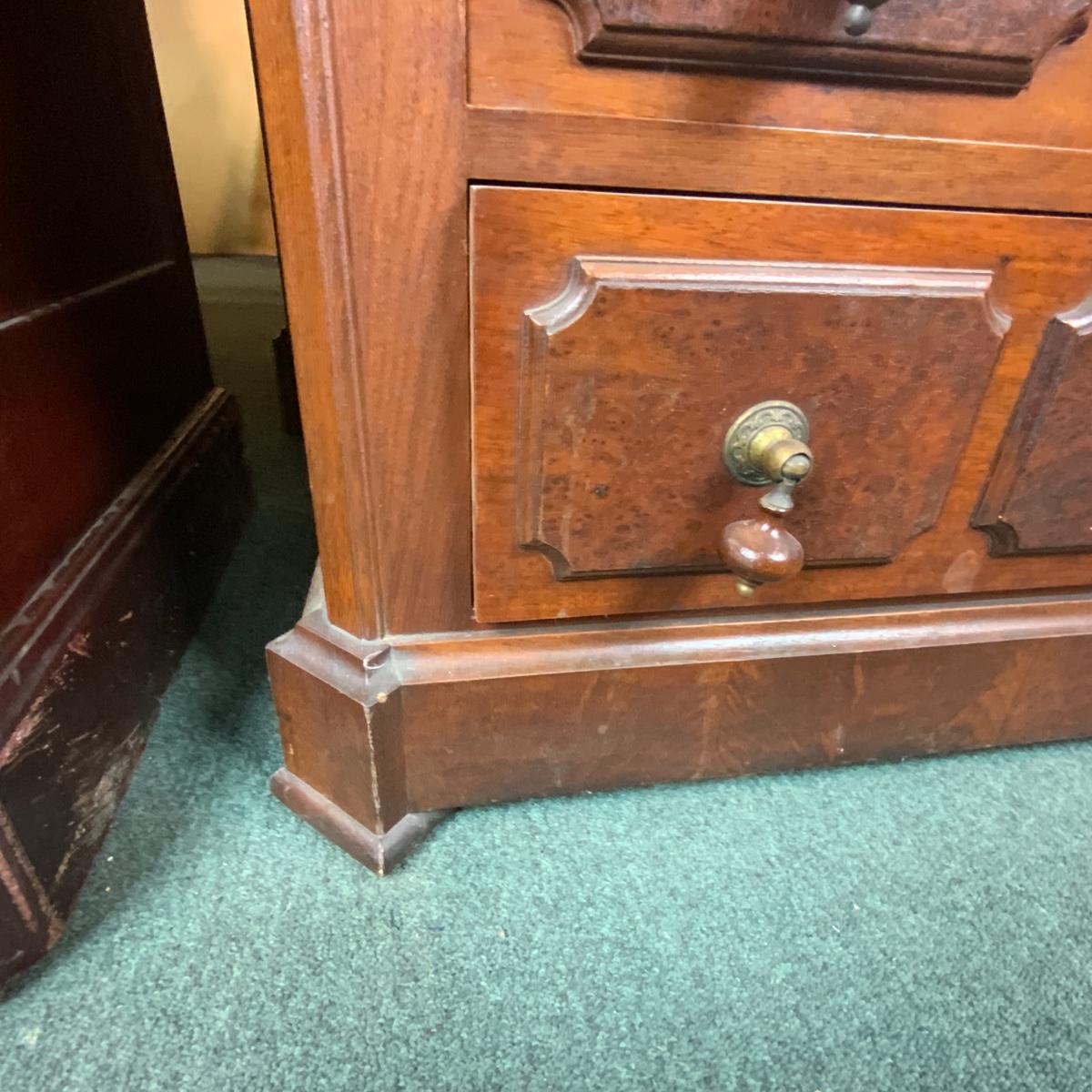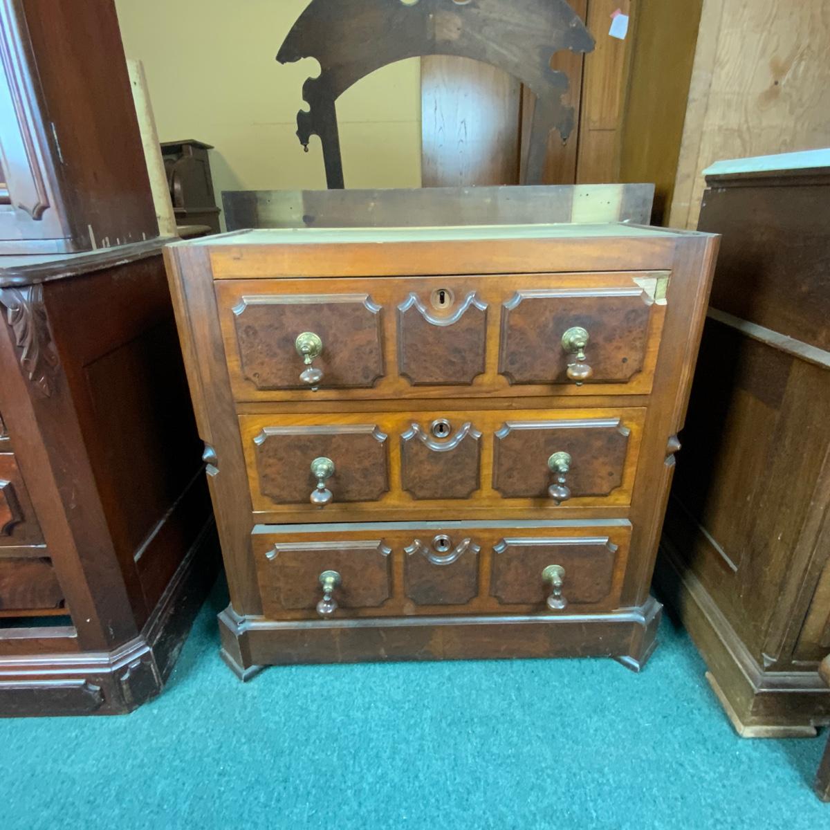 Small Victorian chest of drawers. All the pulls look to be original, and in great shape. You just need to find the right marble top for it. //::\\ Please see photos for details and condition. No attempt has been made to hide any imperfections. All items listed in this auction are warehouse items, and need to be cleaned. A majority of the items need restoration as well. All items are sold AS IS and WITHOUT GUARANTEE. If you are uncertain about an item, DO NOT BID. Due to the nature of this online auction in-person inspection is HIGHLY recommended. All Sales are FINAL. Pick Up Times are FIRM. Please confirm with your own schedule that you can pick up in the scheduled times listed in the Terms and Conditions. Any questions please message the auctioneer. DO NOT Contact The Harp Gallery.