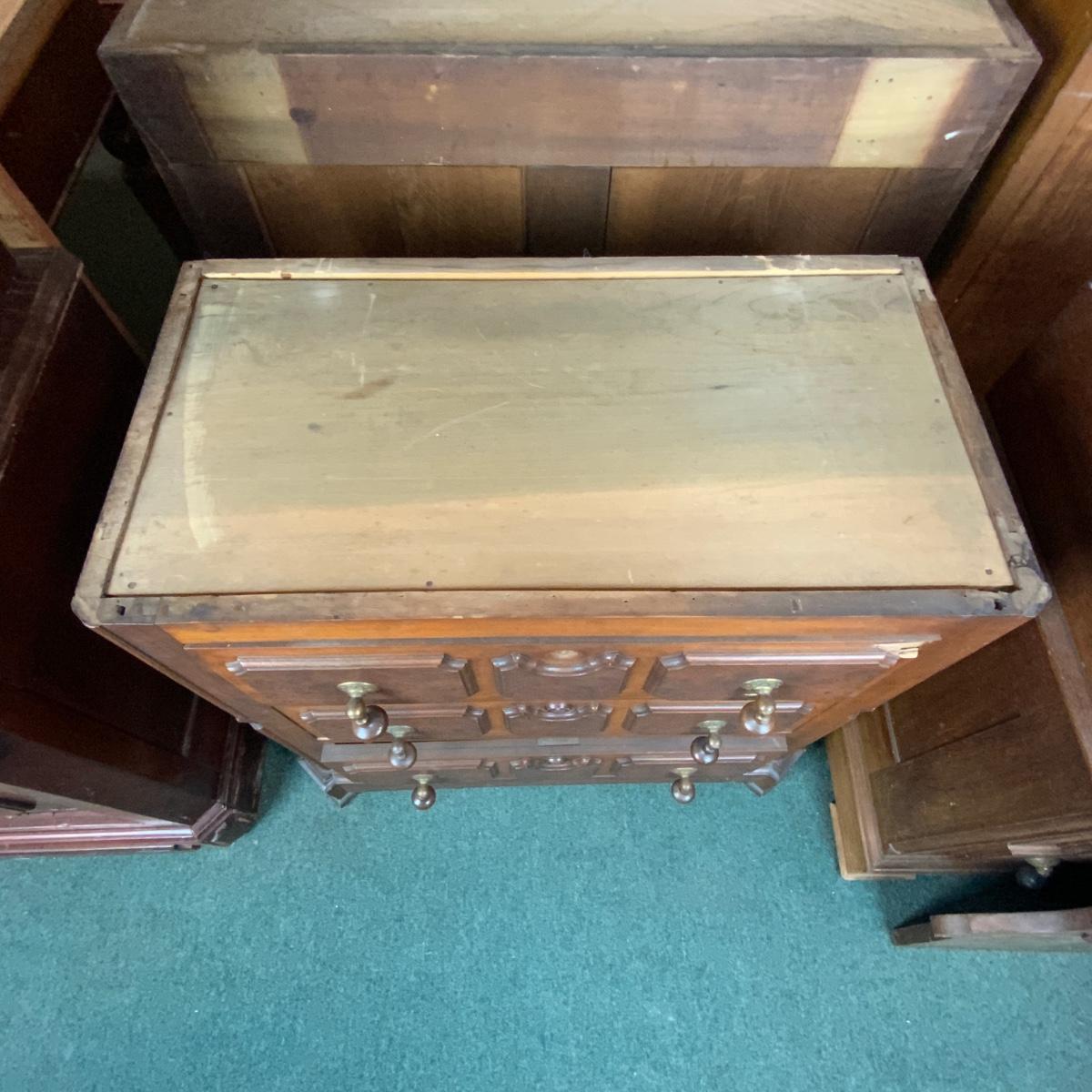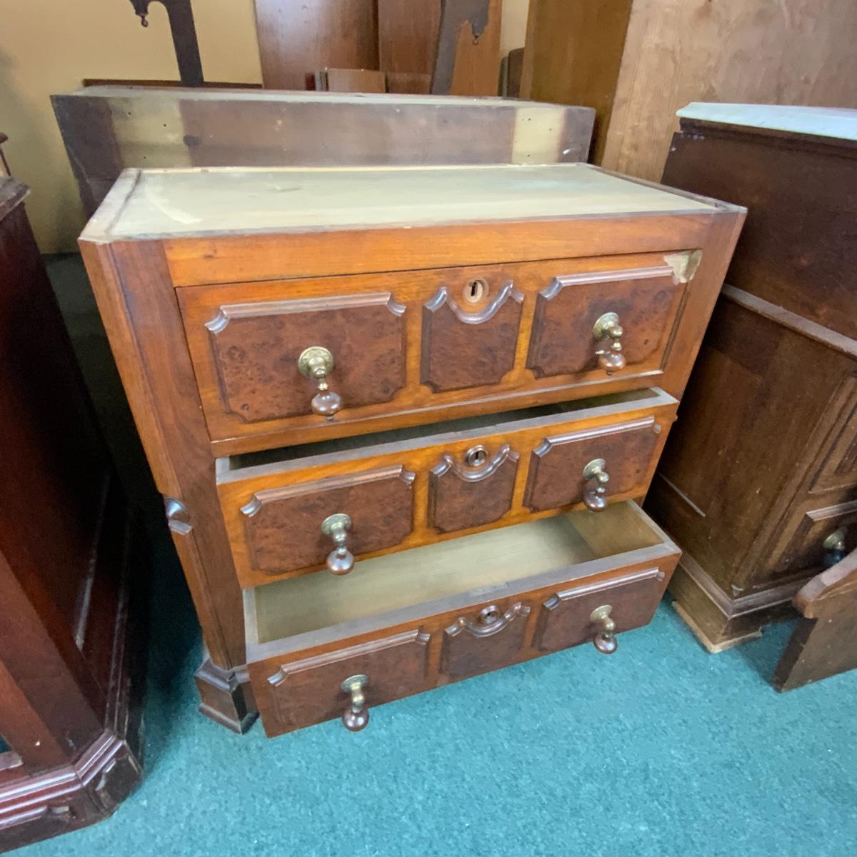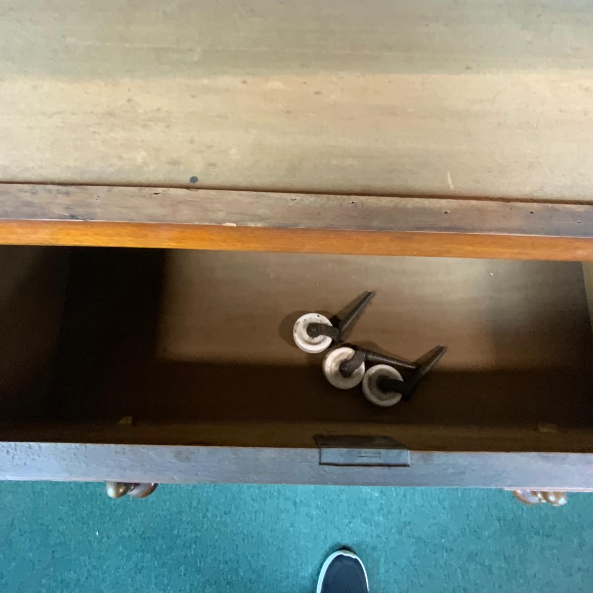 Small Victorian chest of drawers. All the pulls look to be original, and in great shape. You just need to find the right marble top for it. //::\\ Please see photos for details and condition. No attempt has been made to hide any imperfections. All items listed in this auction are warehouse items, and need to be cleaned. A majority of the items need restoration as well. All items are sold AS IS and WITHOUT GUARANTEE. If you are uncertain about an item, DO NOT BID. Due to the nature of this online auction in-person inspection is HIGHLY recommended. All Sales are FINAL. Pick Up Times are FIRM. Please confirm with your own schedule that you can pick up in the scheduled times listed in the Terms and Conditions. Any questions please message the auctioneer. DO NOT Contact The Harp Gallery.