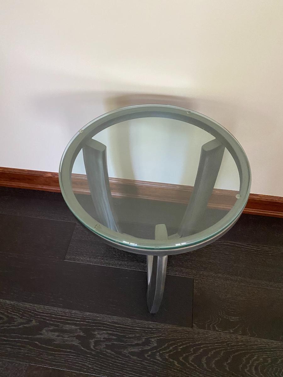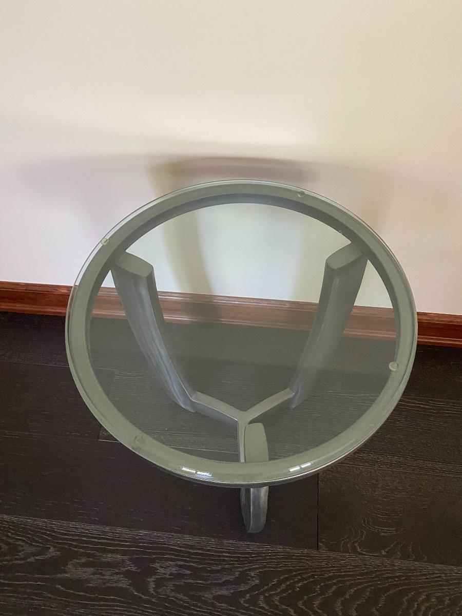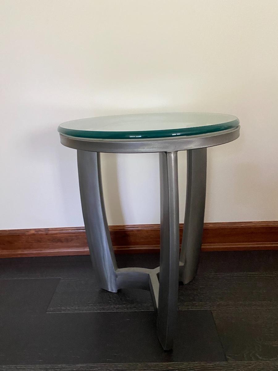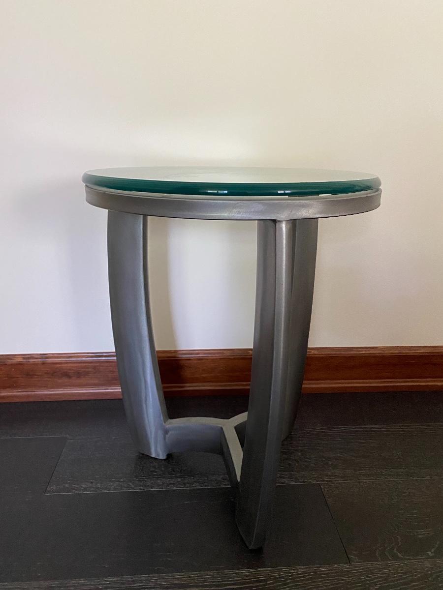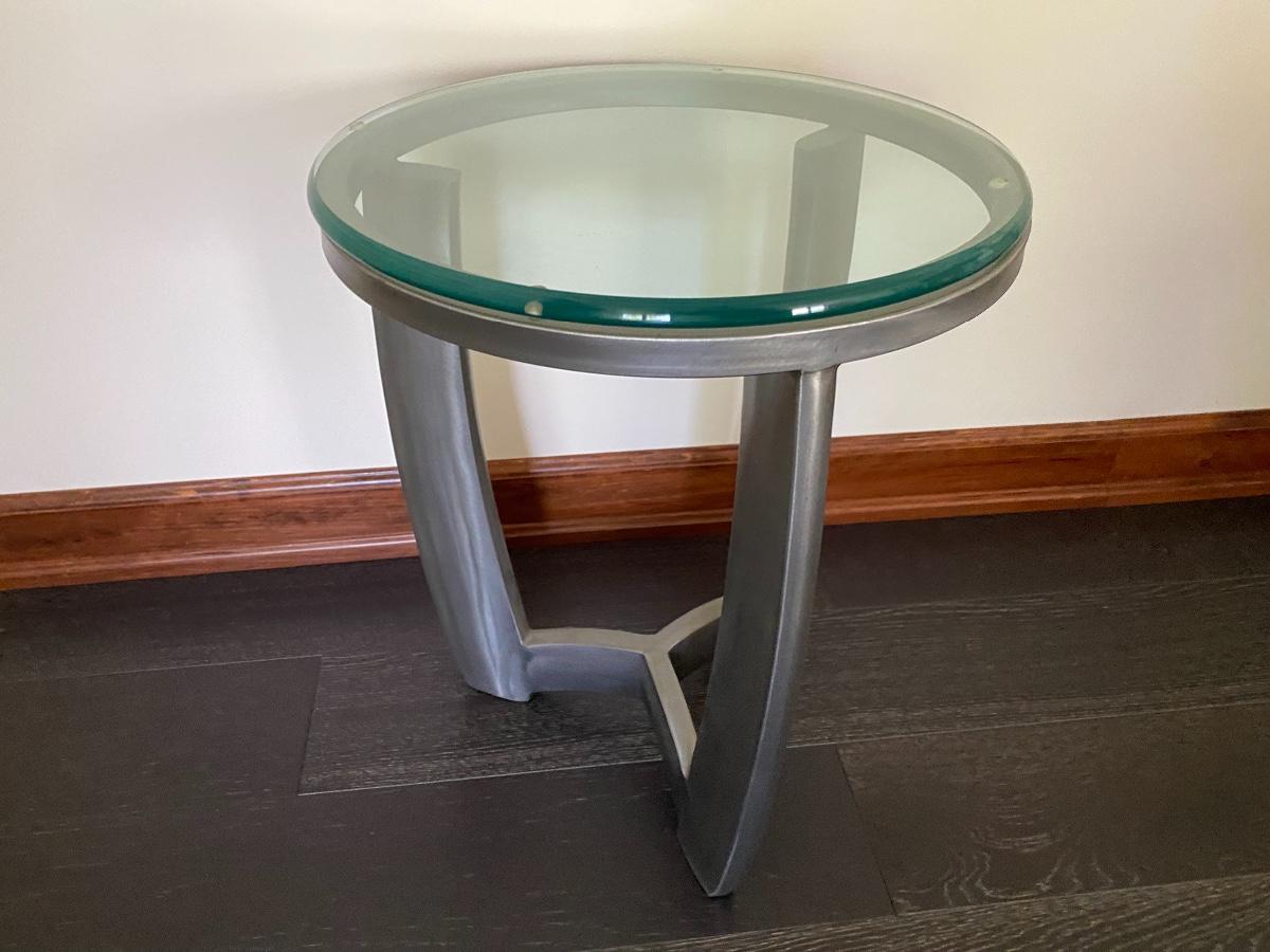 Lot 063: Industrial Designed Metal, Glass Top Accent End- Table
