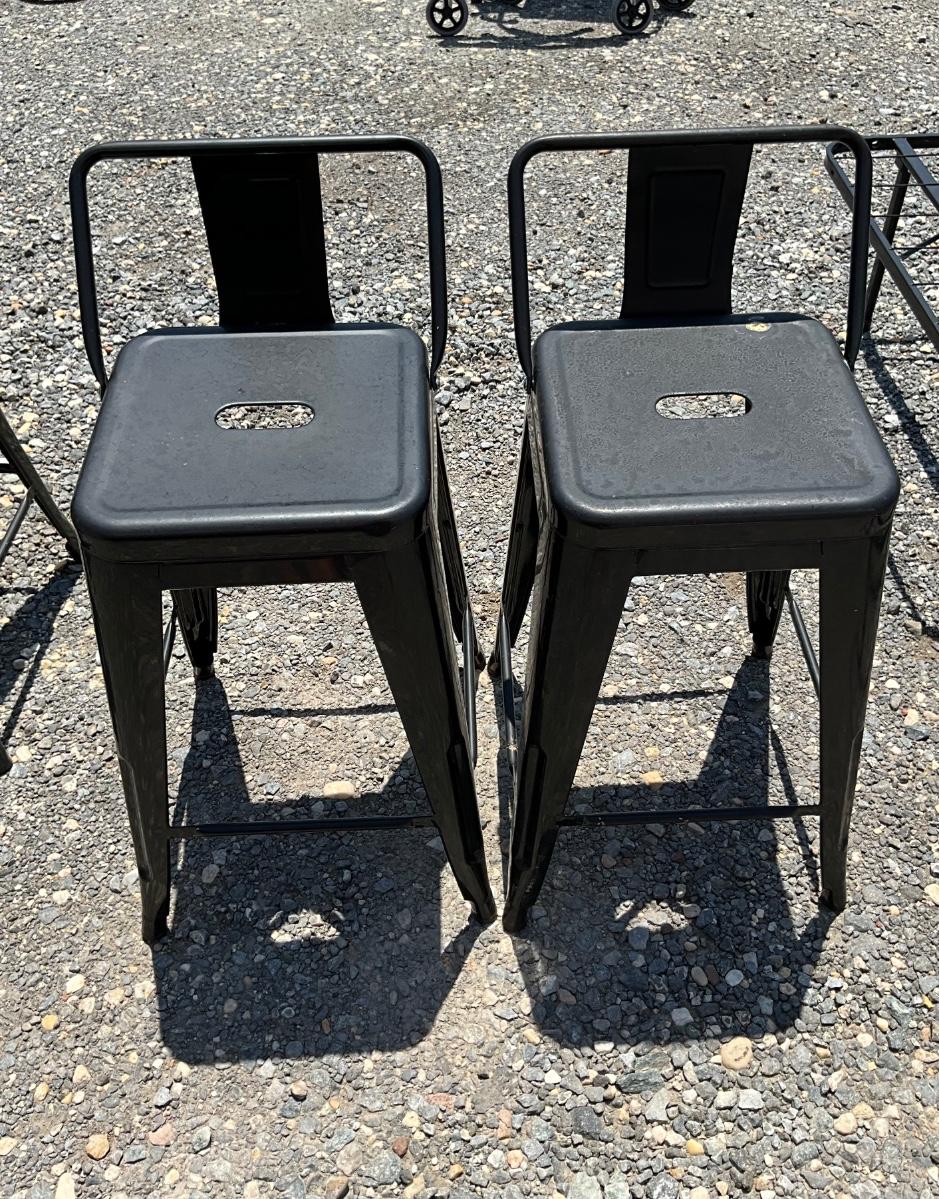 Pair of MatteBlack, Mid-Back Counter Stools With Metal Seat,