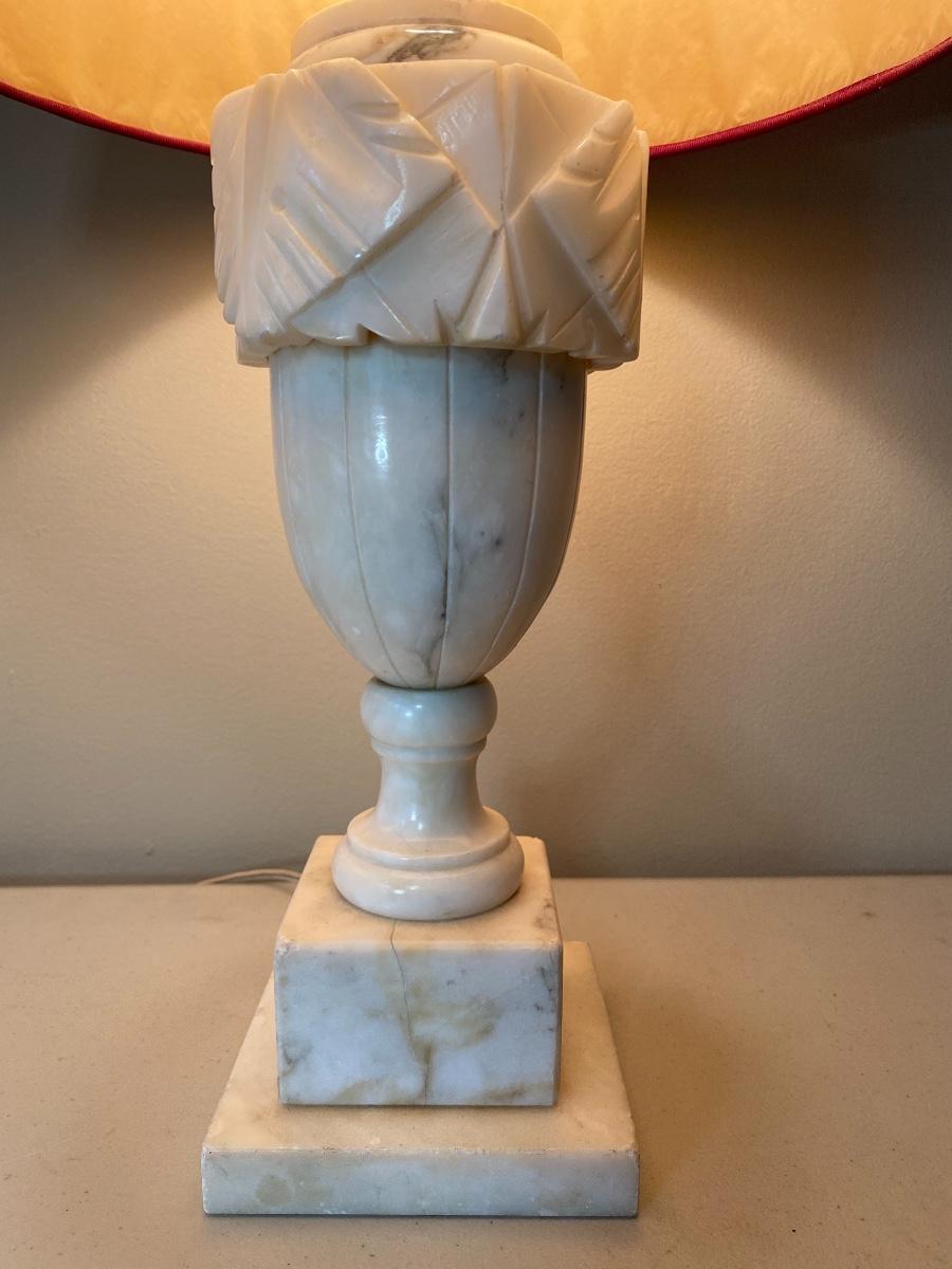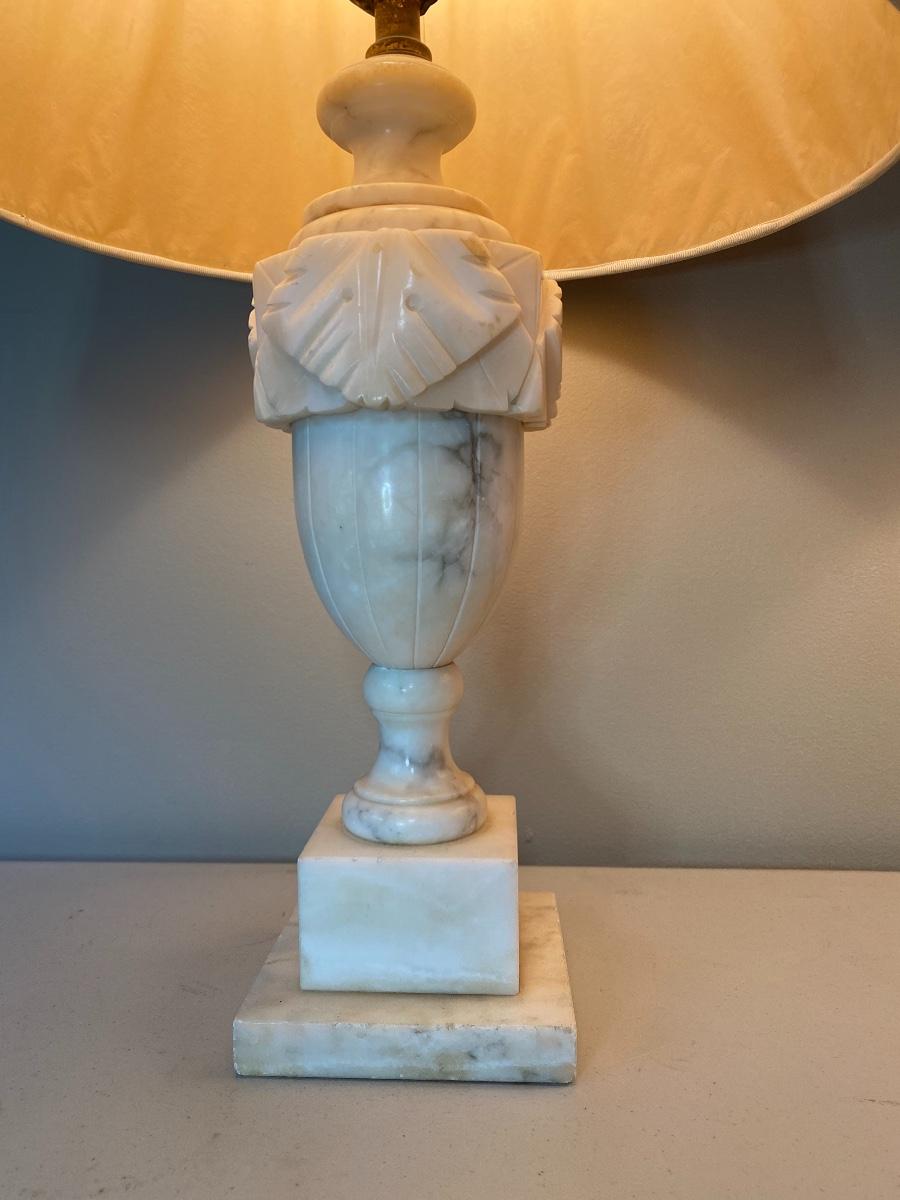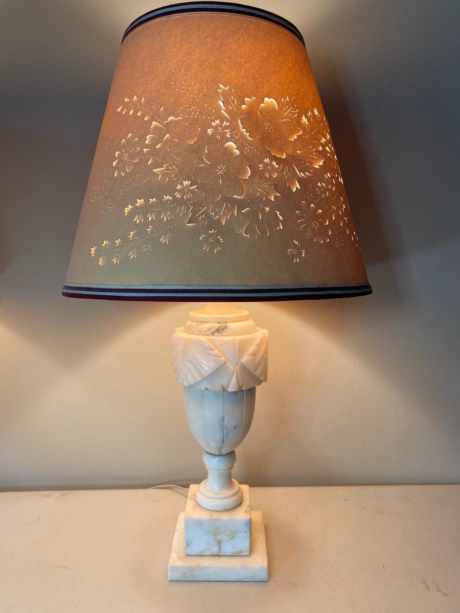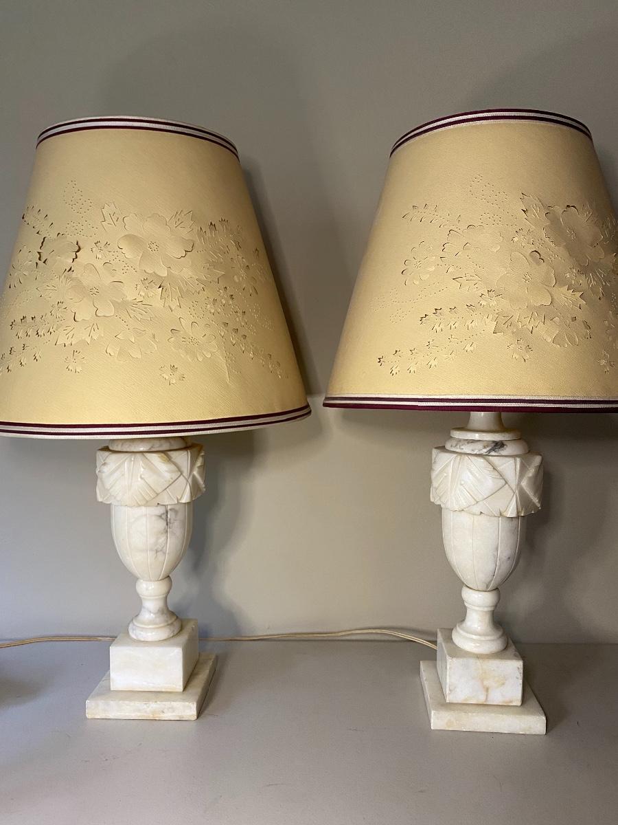Classy pair of marble lamps with punched shades that are beige in color, and give a soft glow when lit. Please see all pictures as they are the best representation of the items. The pictures show condition, measurements if taken, and what is included in the lot. Due to the large amount that we photograph and the time frame, we are not always able to take measurements. All items unless noted, are pre-owned and have been used. If you purchased furniture, you must bring help. We do not allow one person to carry large furniture out on their own. Bring help, tools and a truck for the safety of our client’s homes, and your personal safety. Company policy. Thank you.
