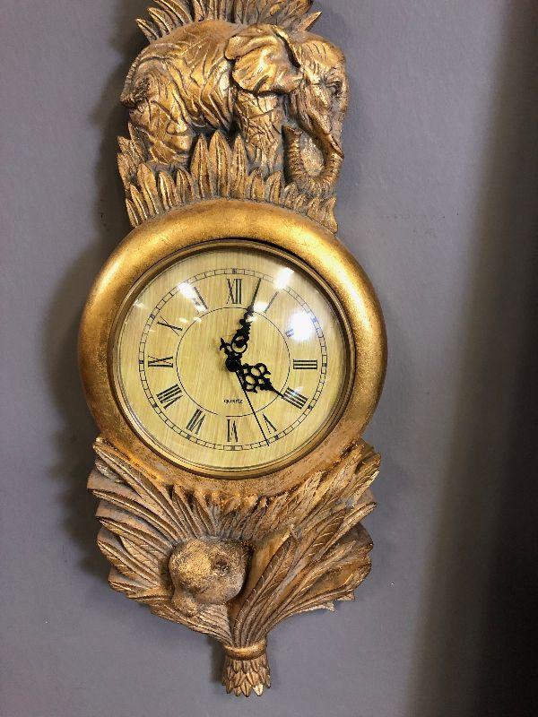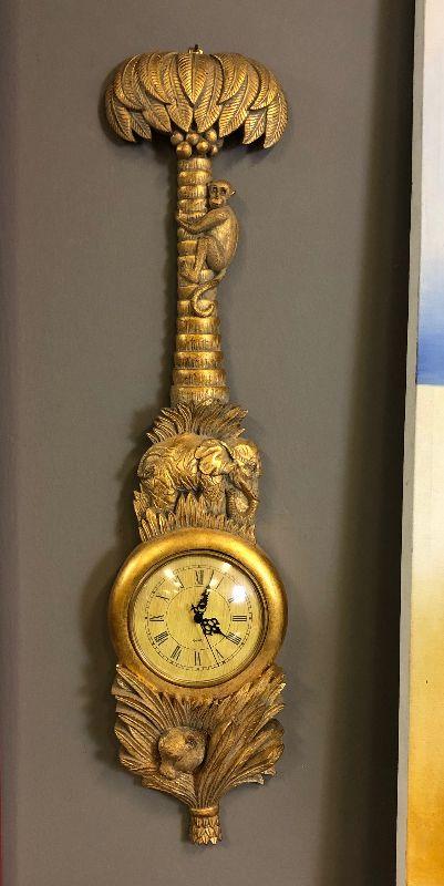 Lot #07 Golden Jungle King clock Monkey, Lion, Tiger