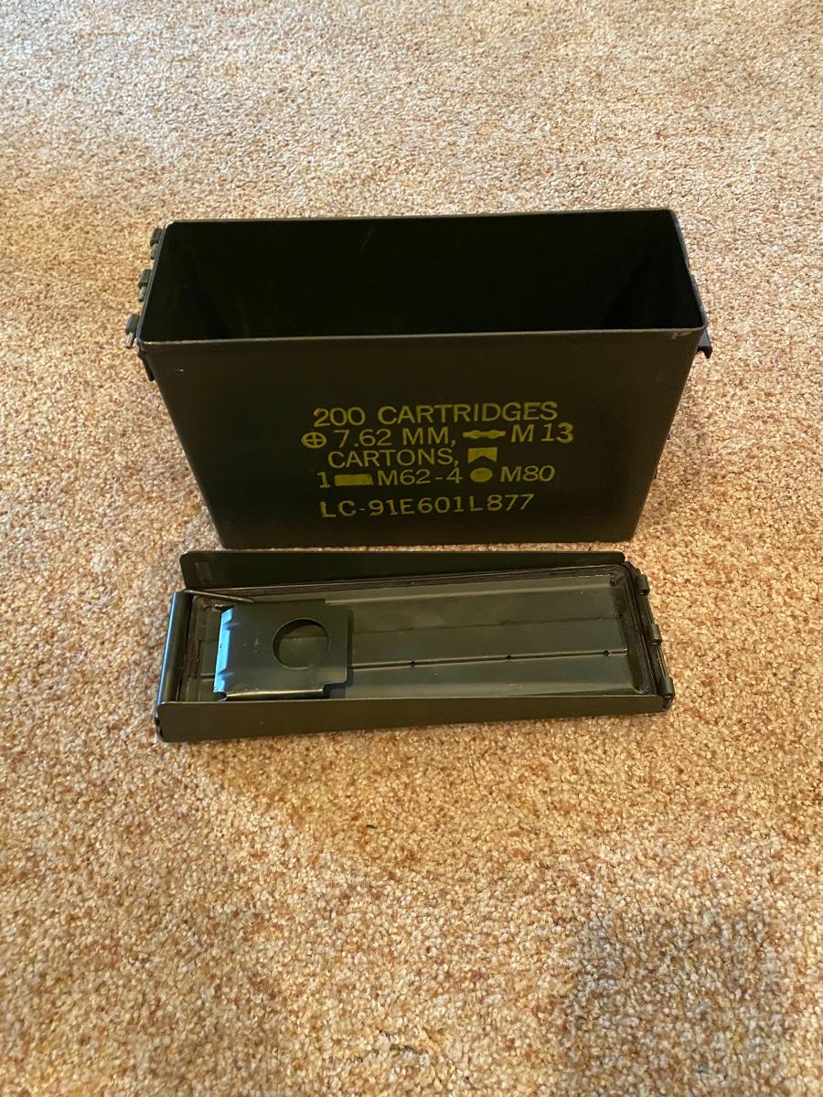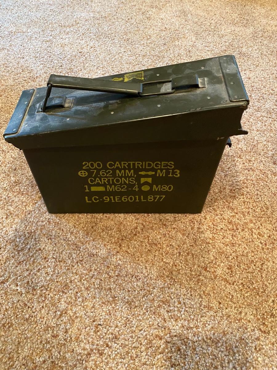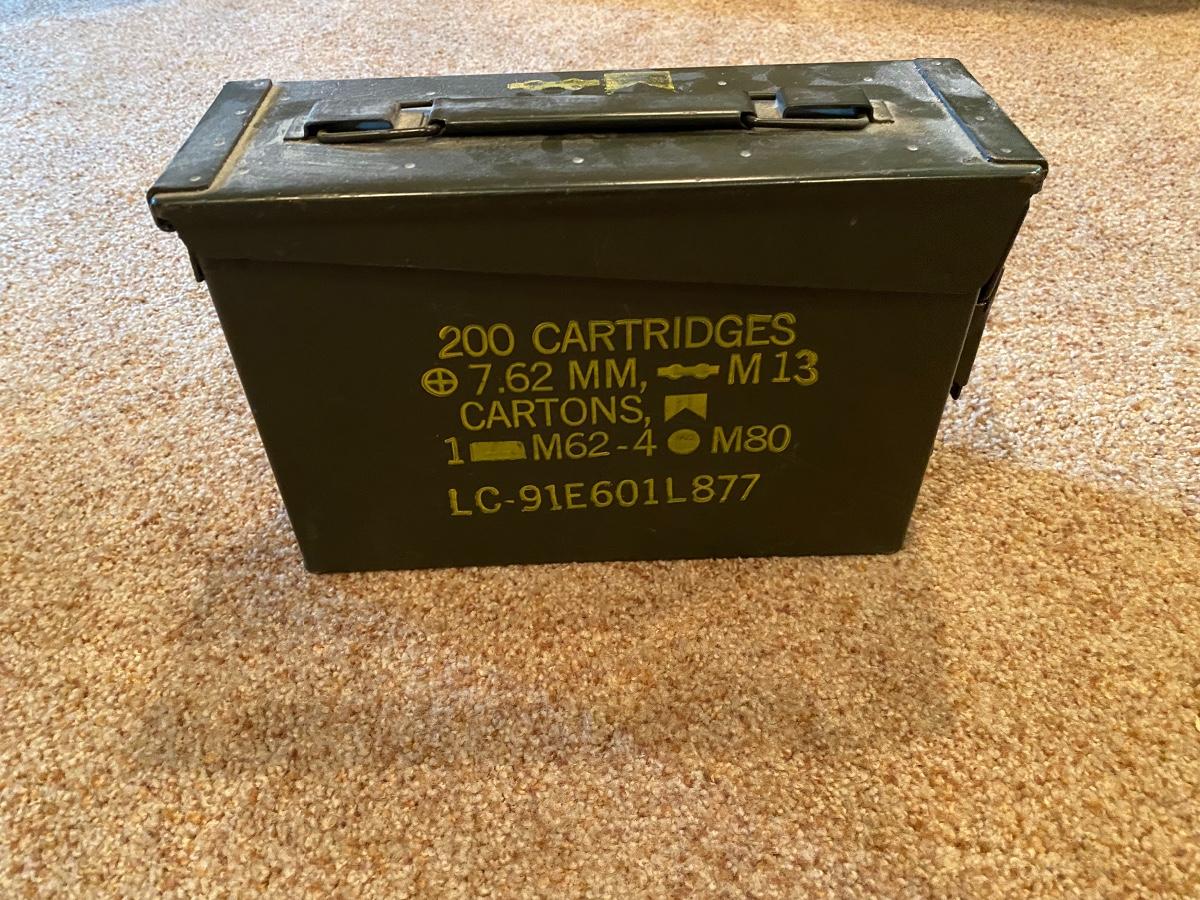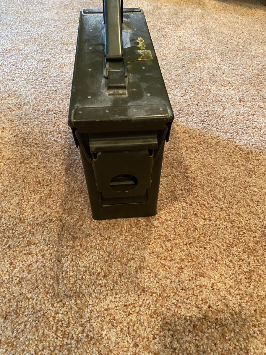 Vintage Ammo box, and a Bolen Holster that the client said was unused during Vietnam. Also included is a scope (Model 21017) and camo gun case.