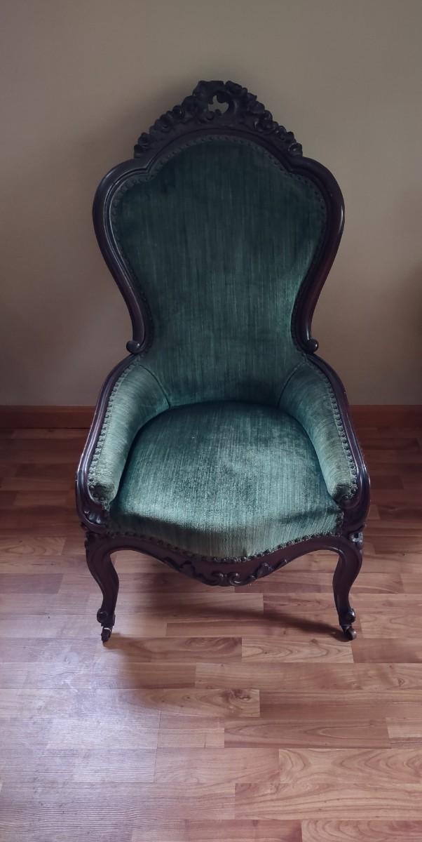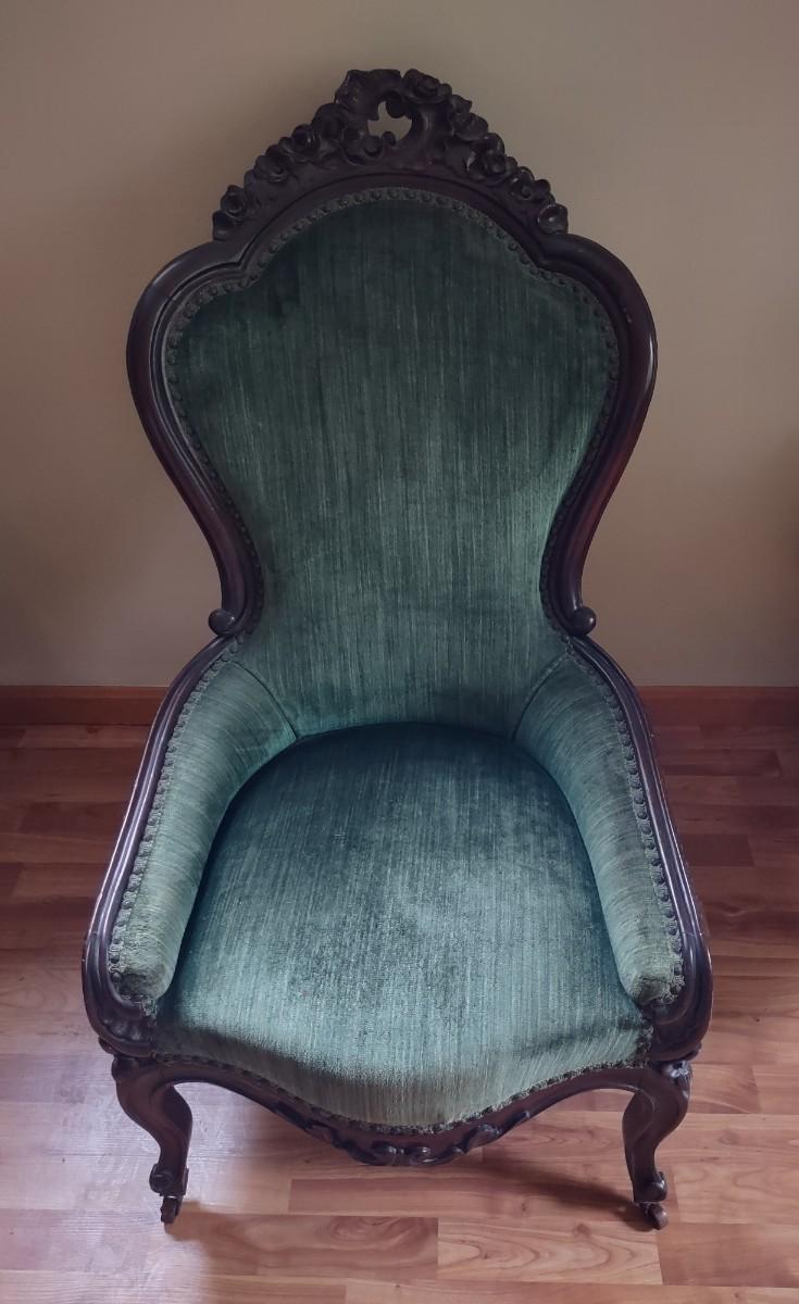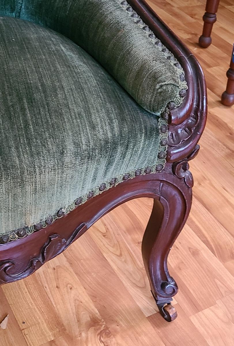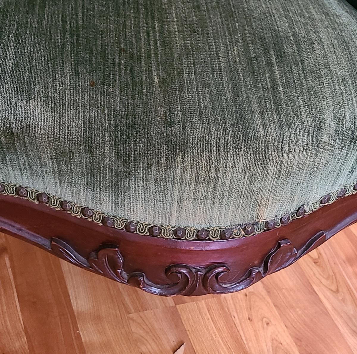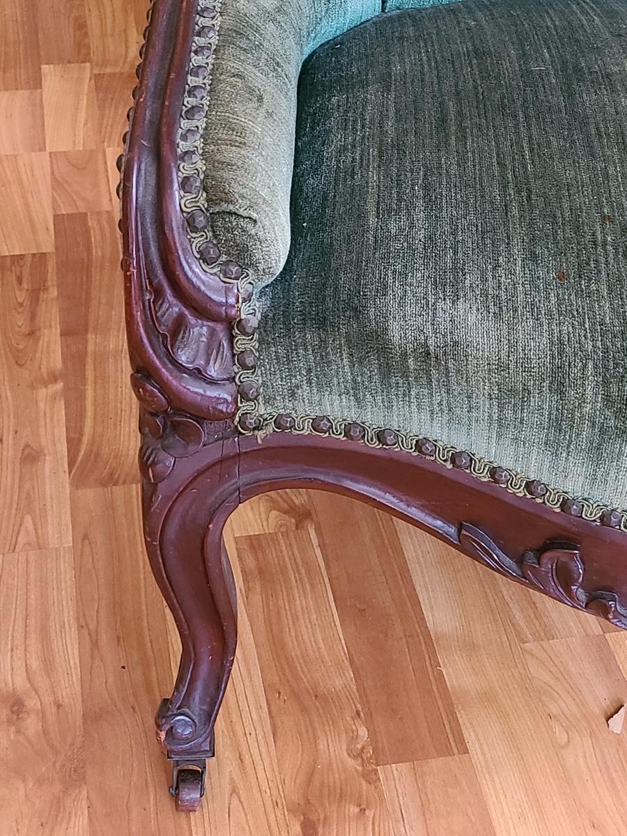 This chair is gorgeous and still looks new with minor wear to the deep green velvet/velour. Wood carved frame with studded accents all around! 39" Please see all pictures as they are the best representation of the items. The pictures show condition, measurements if taken, and what is included in the lot. Due to the large amount that we photograph and the time frame, we are not always able to take measurements. All items unless noted, are pre-owned and have been used. If you purchased furniture, you must bring help. We do not allow one person to carry large furniture out on their own. Bring help, tools and a truck for the safety of our client’s homes, and your personal safety. Company policy. Thank you.