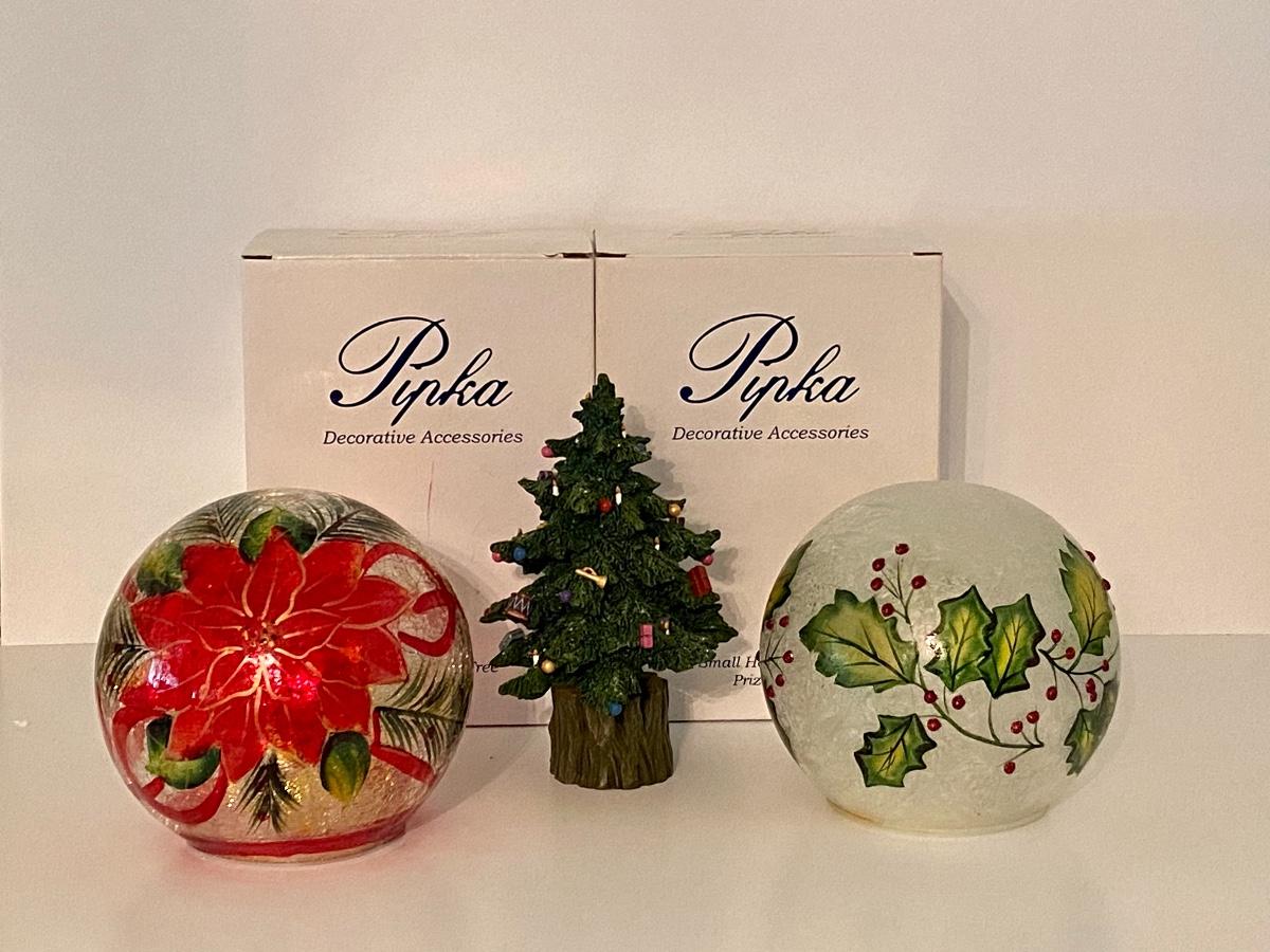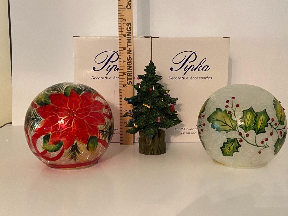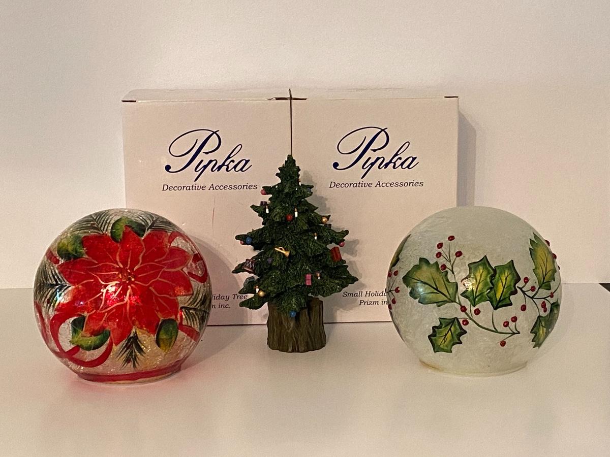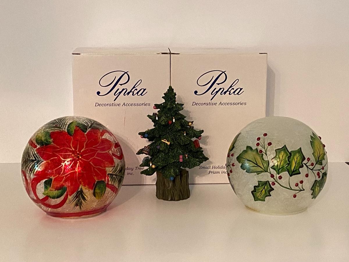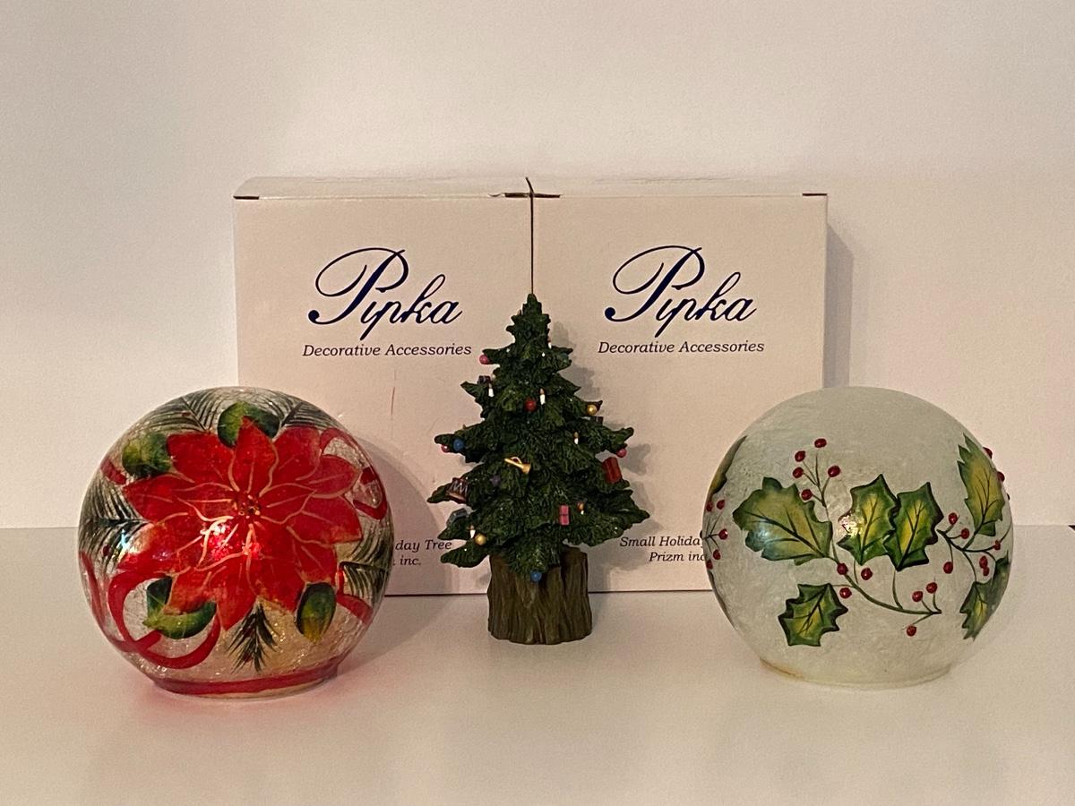 Lot 077: Pipka Christmas Trees and Lighted Christmas Balls