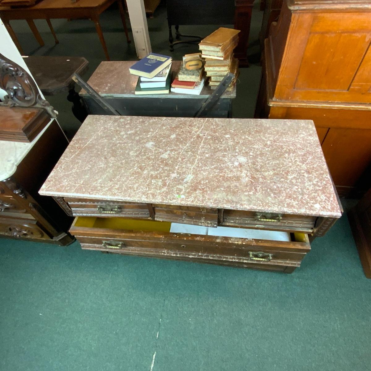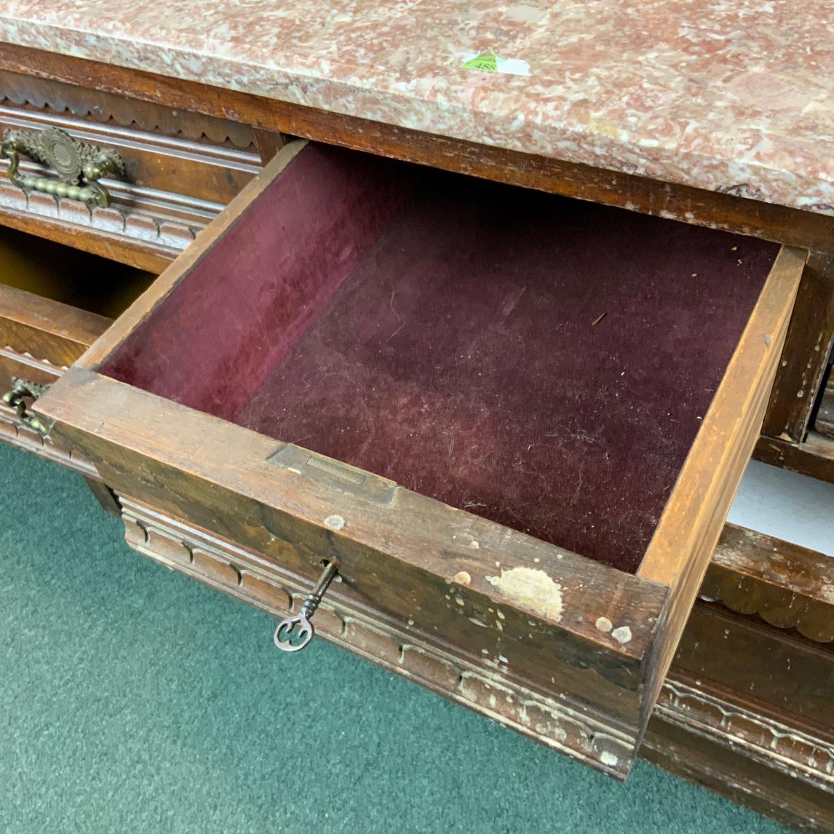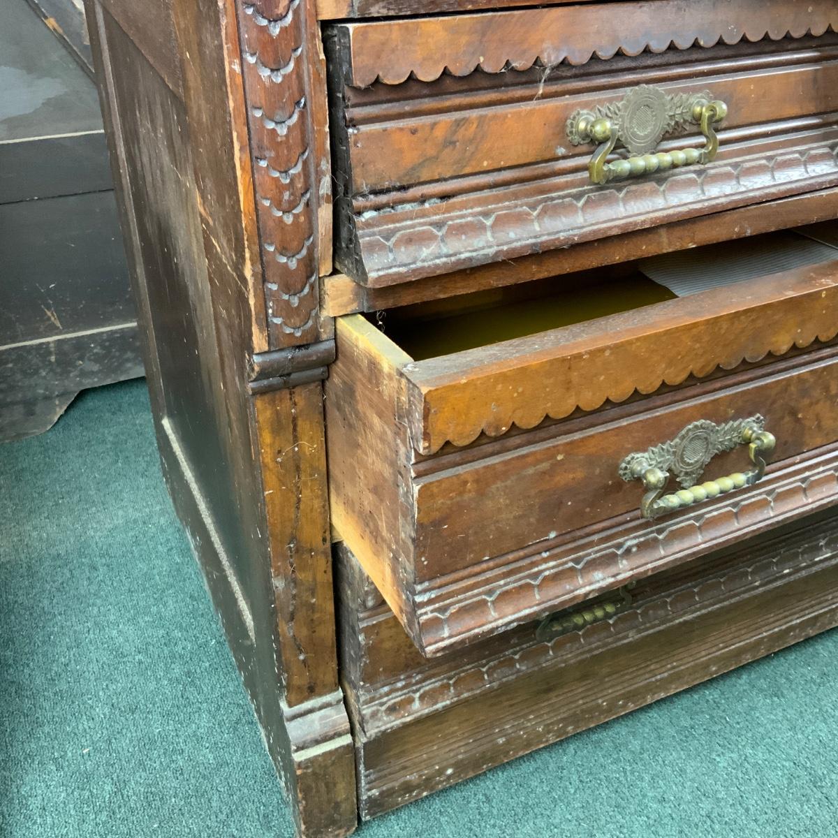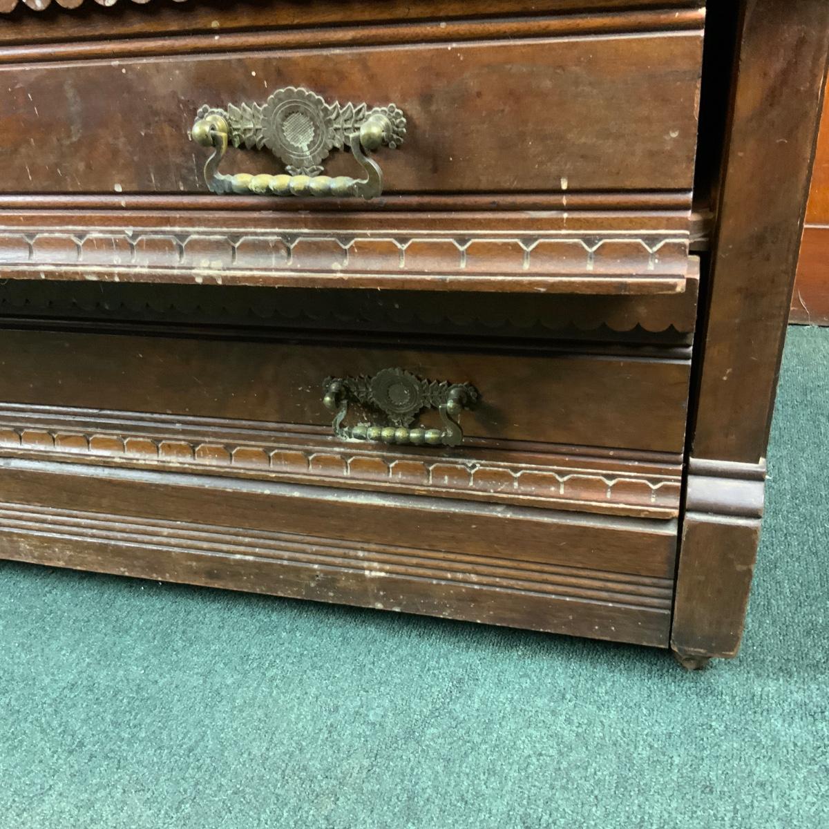 Victorian marble top dresser. Needs work to bring it back to its original glory. Has great bones. //::\\ Please see photos for details and condition. No attempt has been made to hide any imperfections. All items listed in this auction are warehouse items, and need to be cleaned. A majority of the items need restoration as well. All items are sold AS IS and WITHOUT GUARANTEE. If you are uncertain about an item, DO NOT BID. Due to the nature of this online auction in-person inspection is HIGHLY recommended. All Sales are FINAL. Pick Up Times are FIRM. Please confirm with your own schedule that you can pick up in the scheduled times listed in the Terms and Conditions. Any questions please message the auctioneer. DO NOT Contact The Harp Gallery.