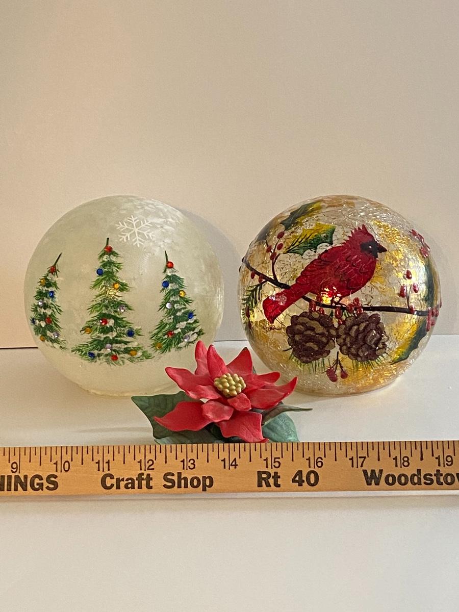 Lenox Red Poinsettia flower and 2 lighted(untested, needs batteries) Christmas Balls. Please see all pictures as they are the best representation of the items. The pictures show condition, measurements if taken, and what is included in the lot. Due to the large amount that we photograph and the time frame, we are not always able to take measurements. All items unless noted, are pre-owned and have been used. If you purchased furniture, you must bring help. We do not allow one person to carry large furniture out on their own. Bring help, tools and a truck for the safety of our client’s homes, and your personal safety. Company policy. Thank you.