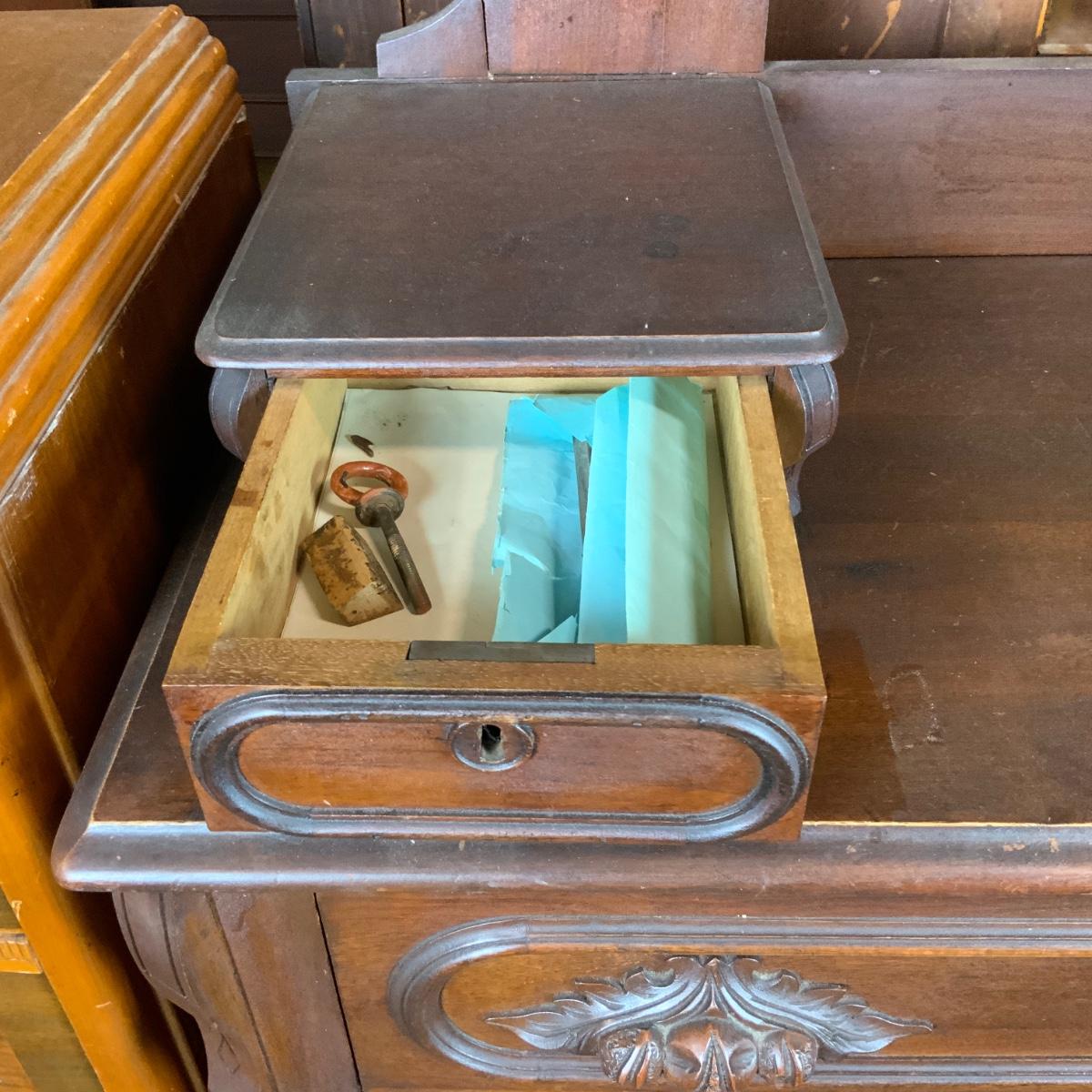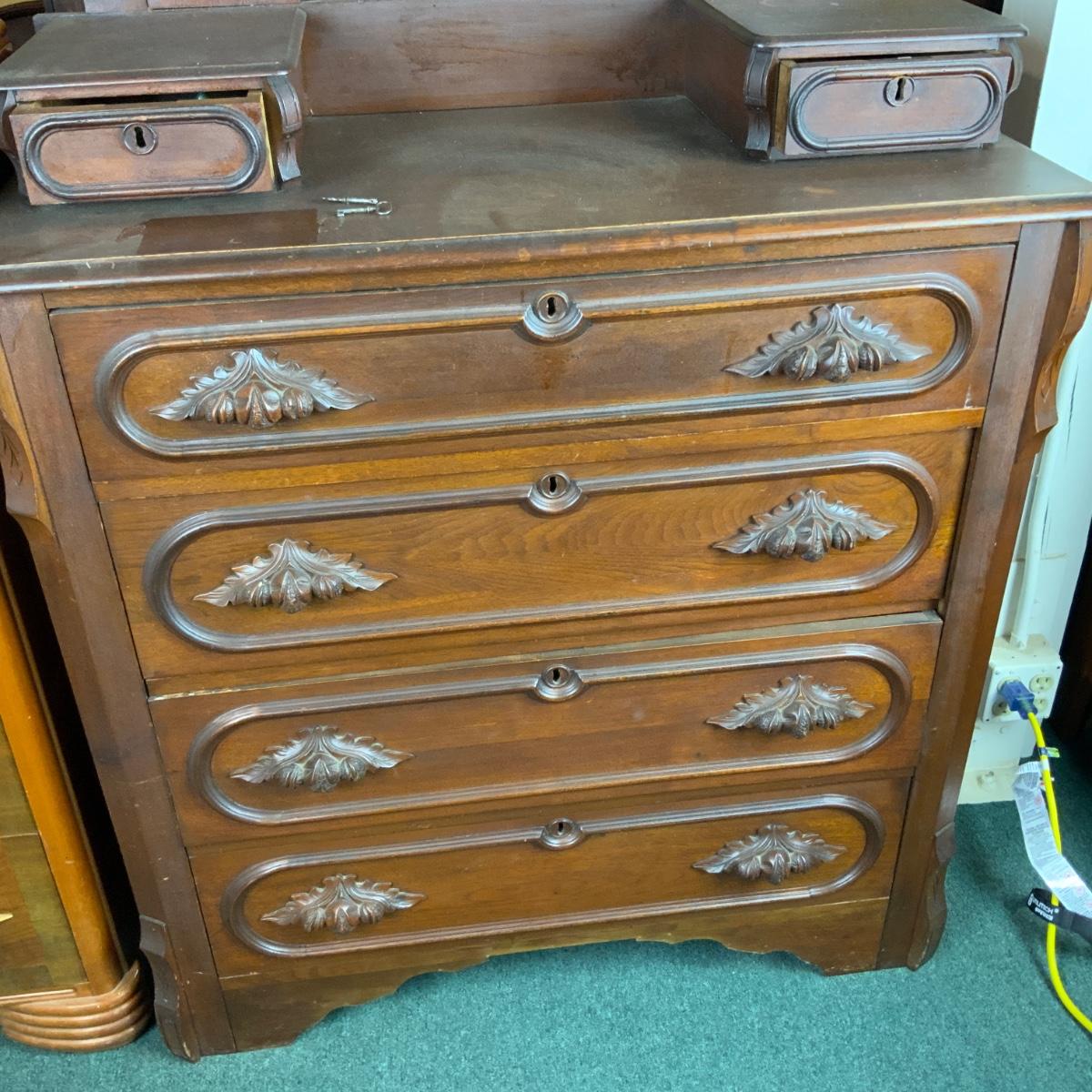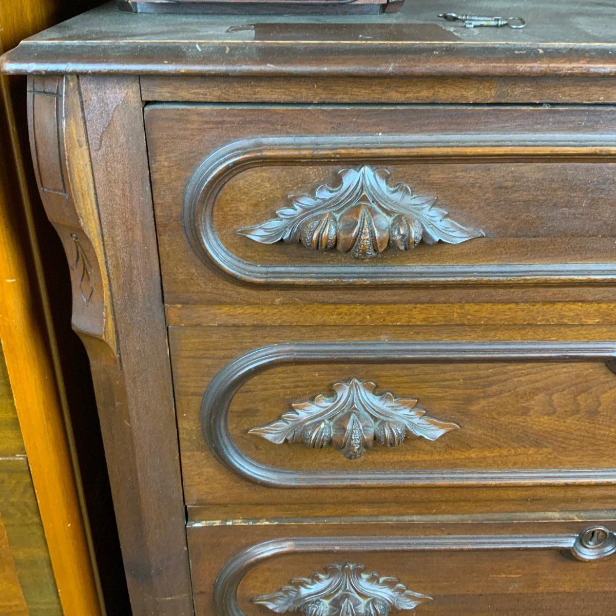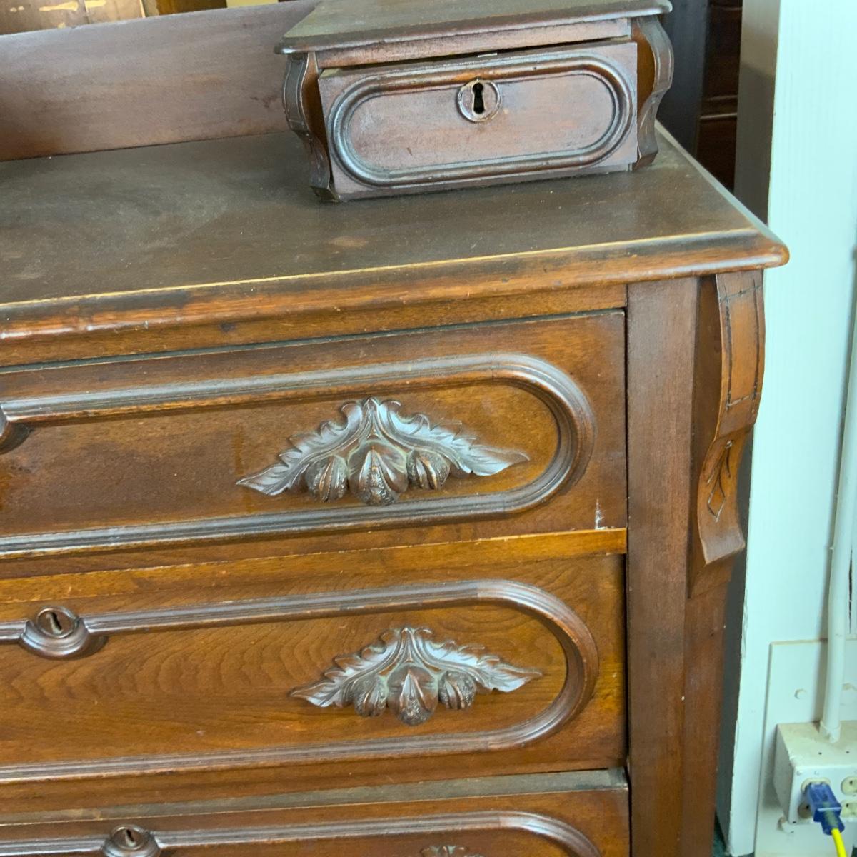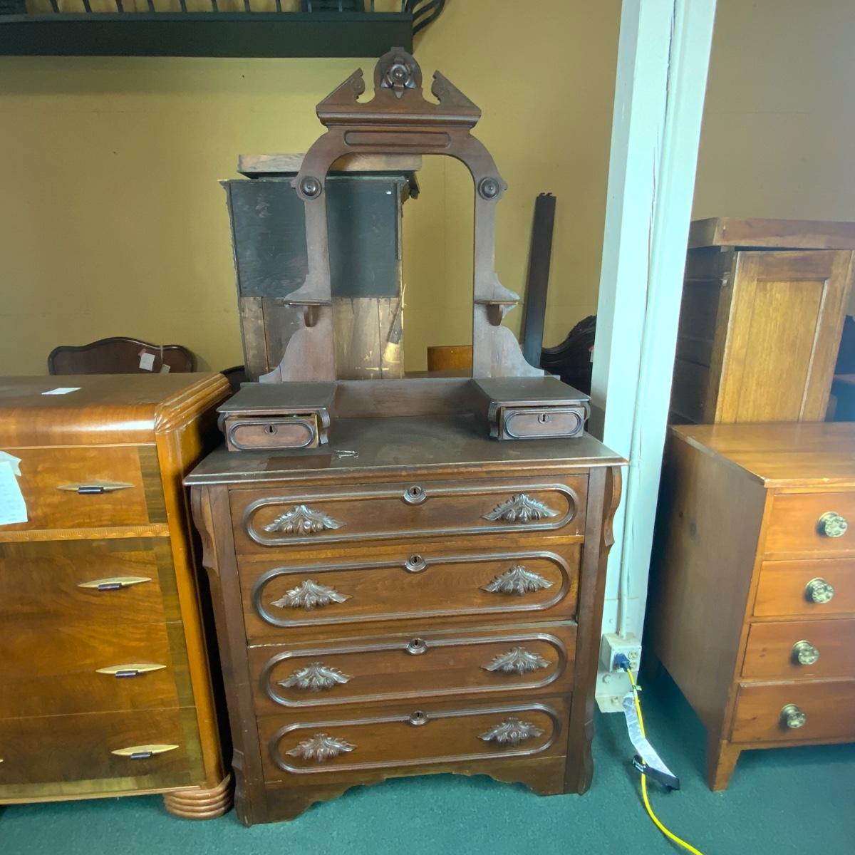 Victorian walnut dresser. Needs new mirror. Spectacular details and hand carved drawer pulls. //::\\ Please see photos for details and condition. No attempt has been made to hide any imperfections. All items listed in this auction are warehouse items, and need to be cleaned. A majority of the items need restoration as well. All items are sold AS IS and WITHOUT GUARANTEE. If you are uncertain about an item, DO NOT BID. Due to the nature of this online auction in-person inspection is HIGHLY recommended. All Sales are FINAL. Pick Up Times are FIRM. Please confirm with your own schedule that you can pick up in the scheduled times listed in the Terms and Conditions. Any questions please message the auctioneer. DO NOT Contact The Harp Gallery.