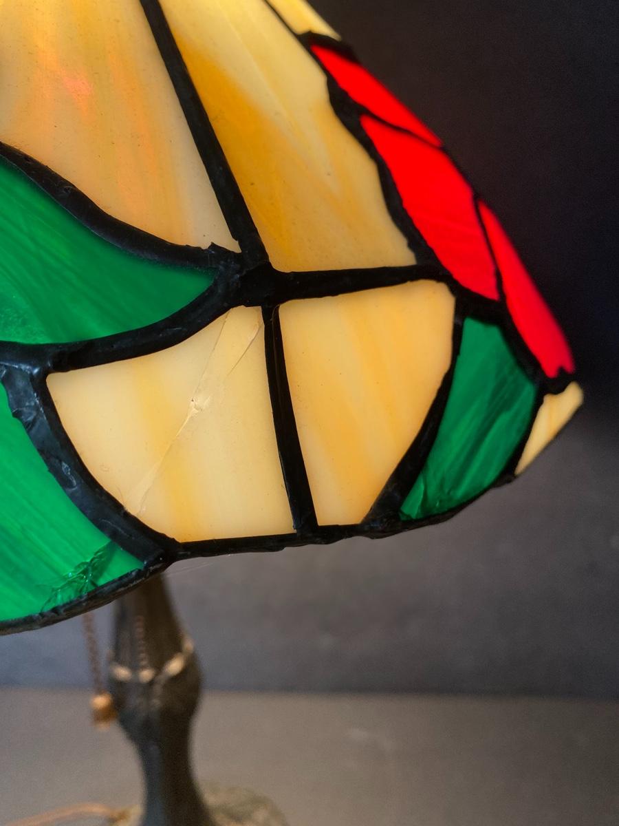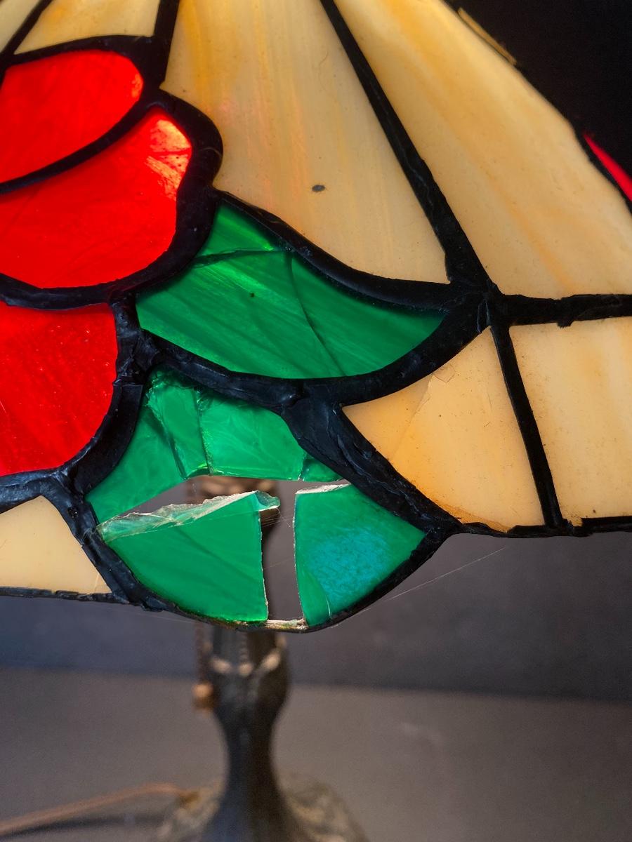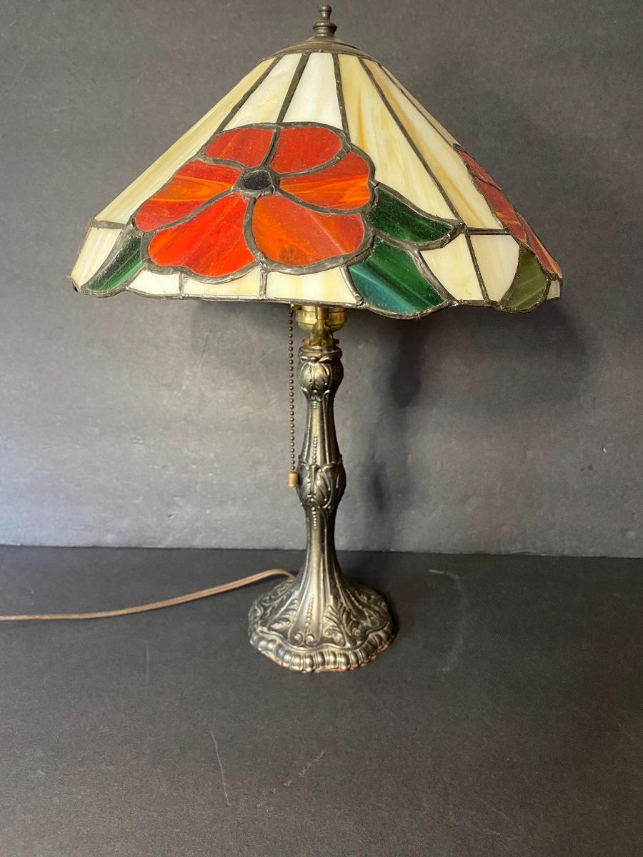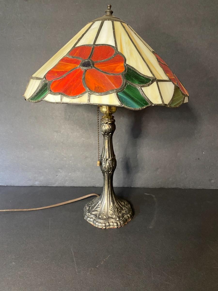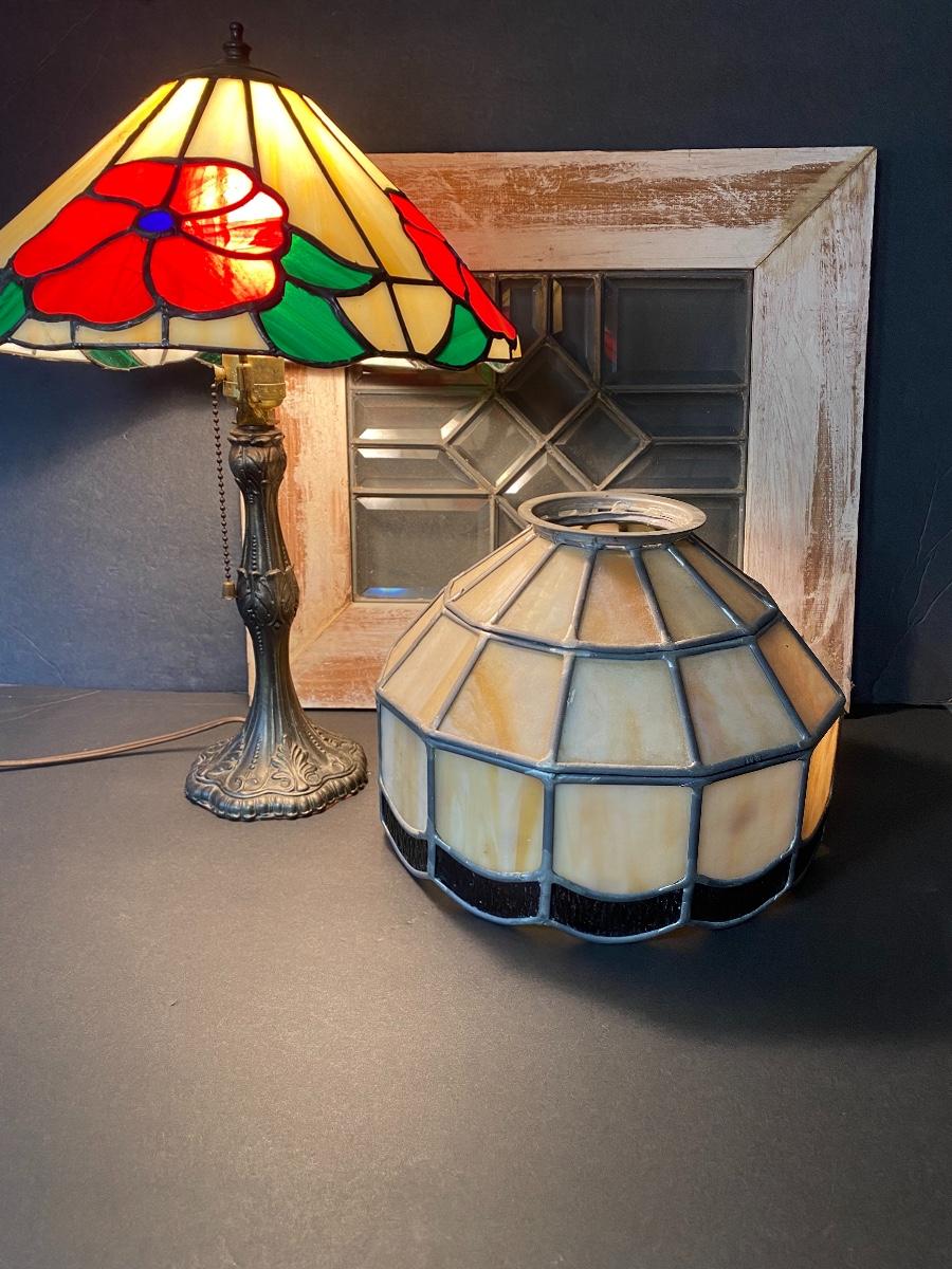 Antique leaded glass window panel that has been framed. Gorgeous! Also included is a stained glass lamp with vibrant colors but unfortunately has damage to the glass, and an extra shade. Please see all pictures as they are the best representation of the items. The pictures show condition, measurements if taken, and what is included in the lot. Due to the large amount that we photograph and the time frame, we are not always able to take measurements. All items unless noted, are pre-owned and have been used. If you purchased furniture, you must bring help. We do not allow one person to carry large furniture out on their own. Bring help, tools and a truck for the safety of our client’s homes, and your personal safety. Company policy. Thank you.
