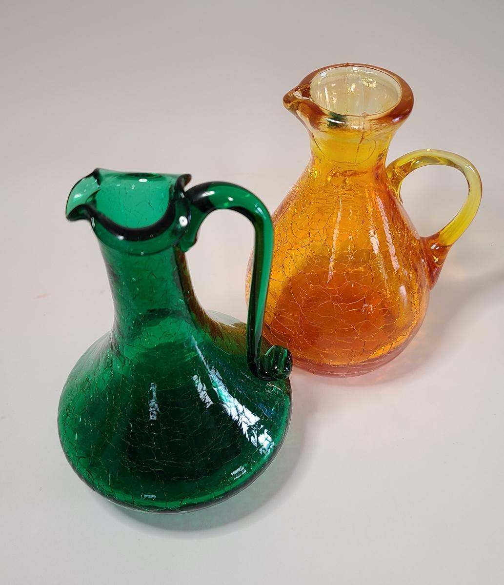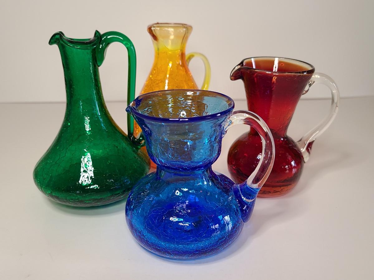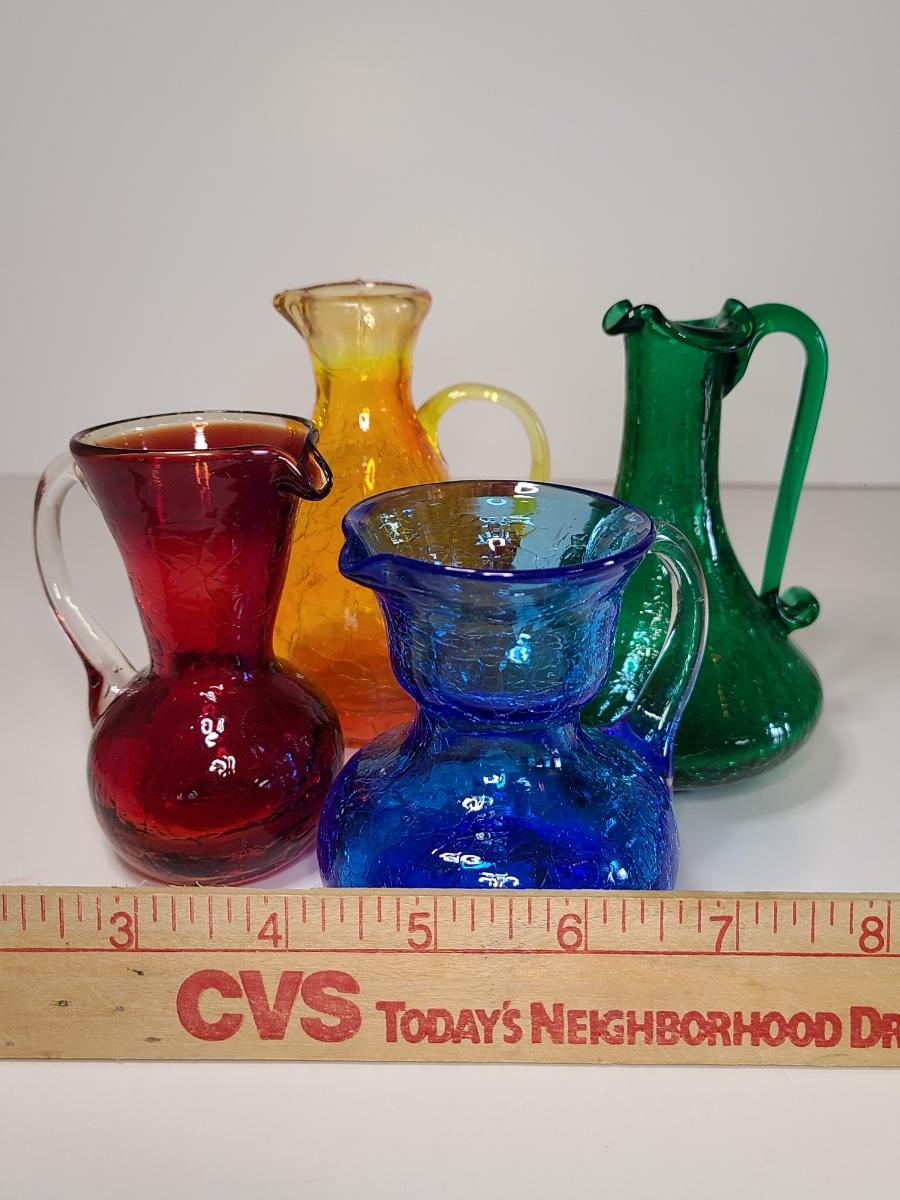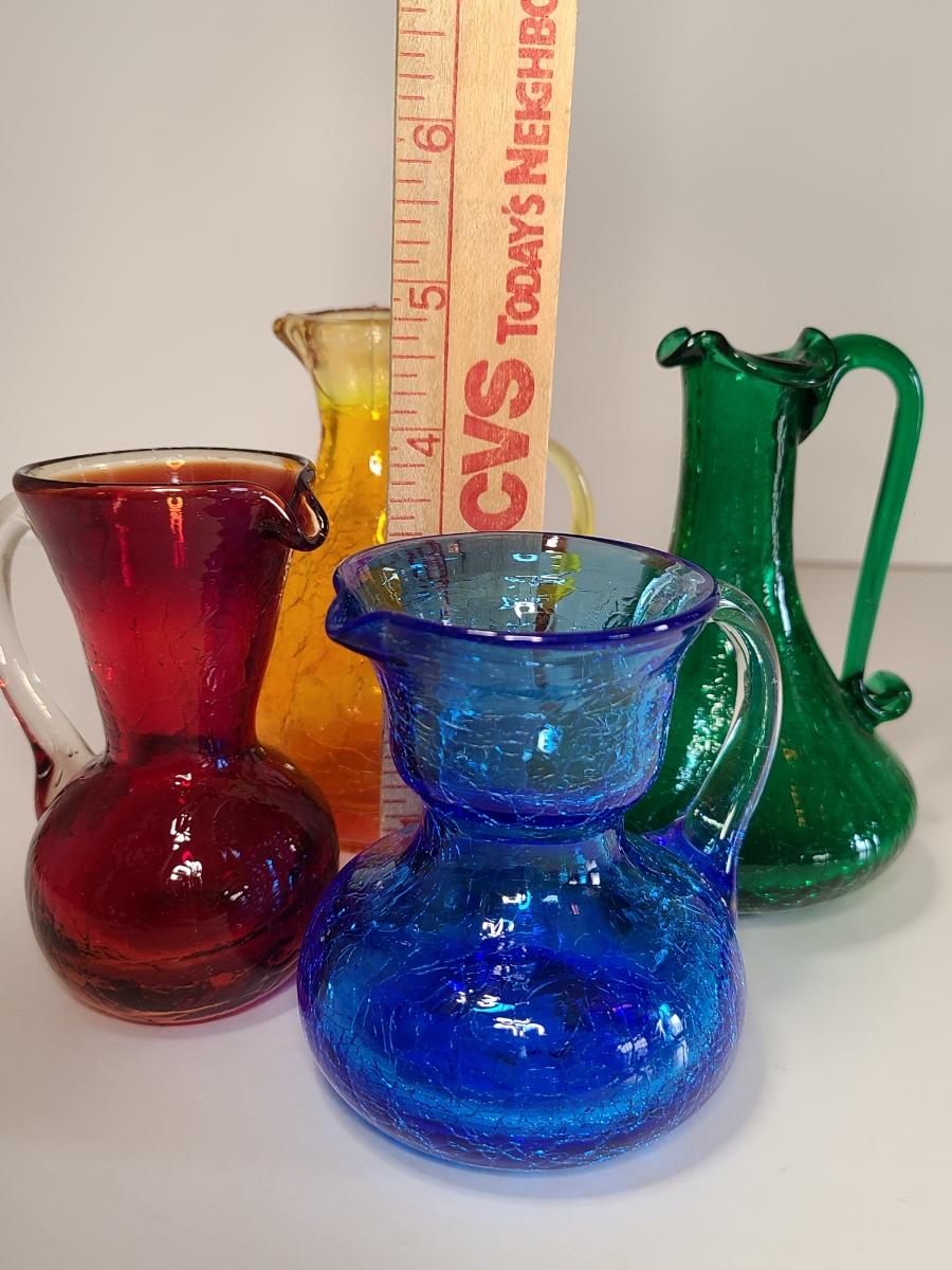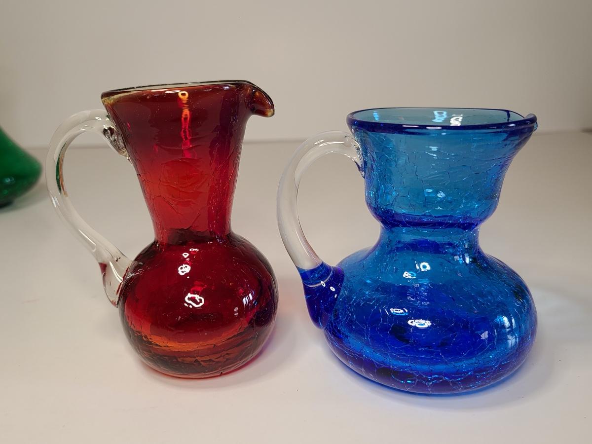 Lot 080: MCM Vintage Colorful Small Crackle Glass Pitchers