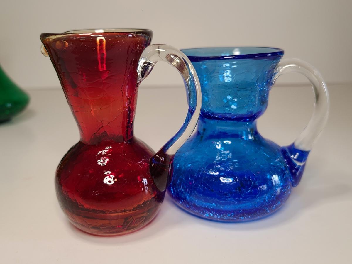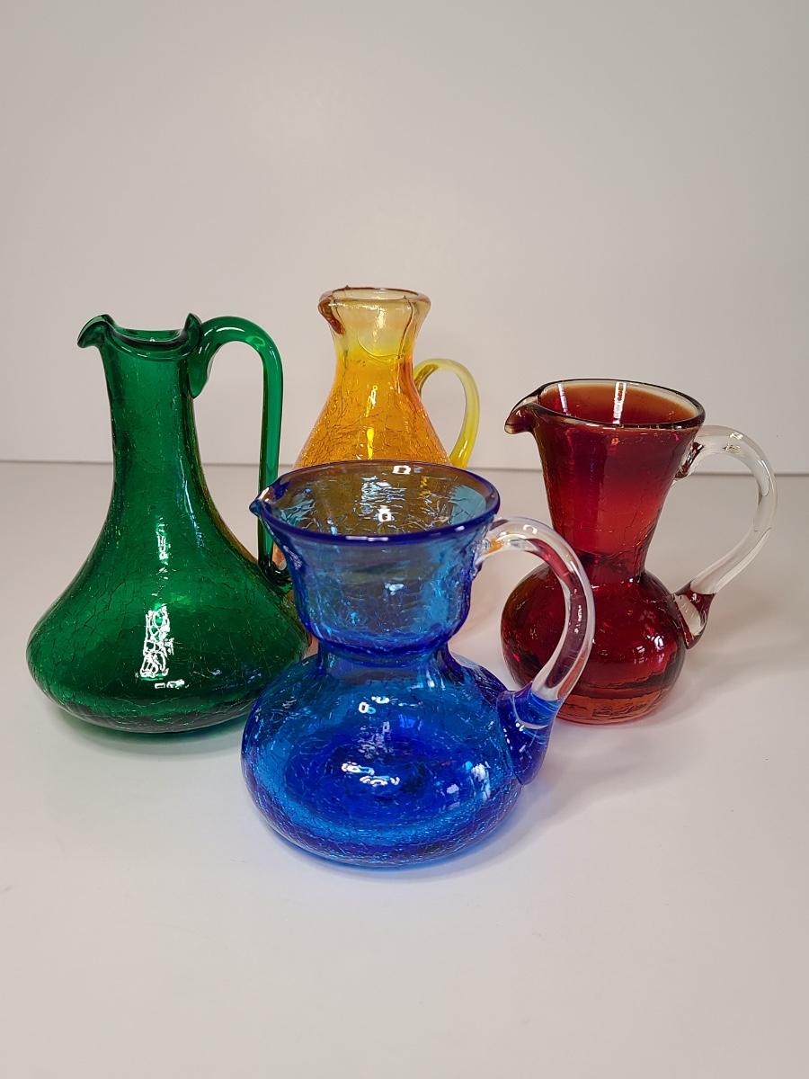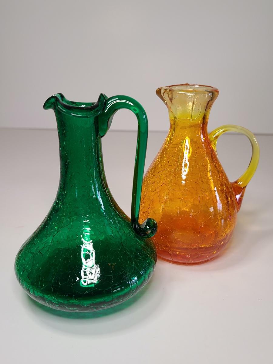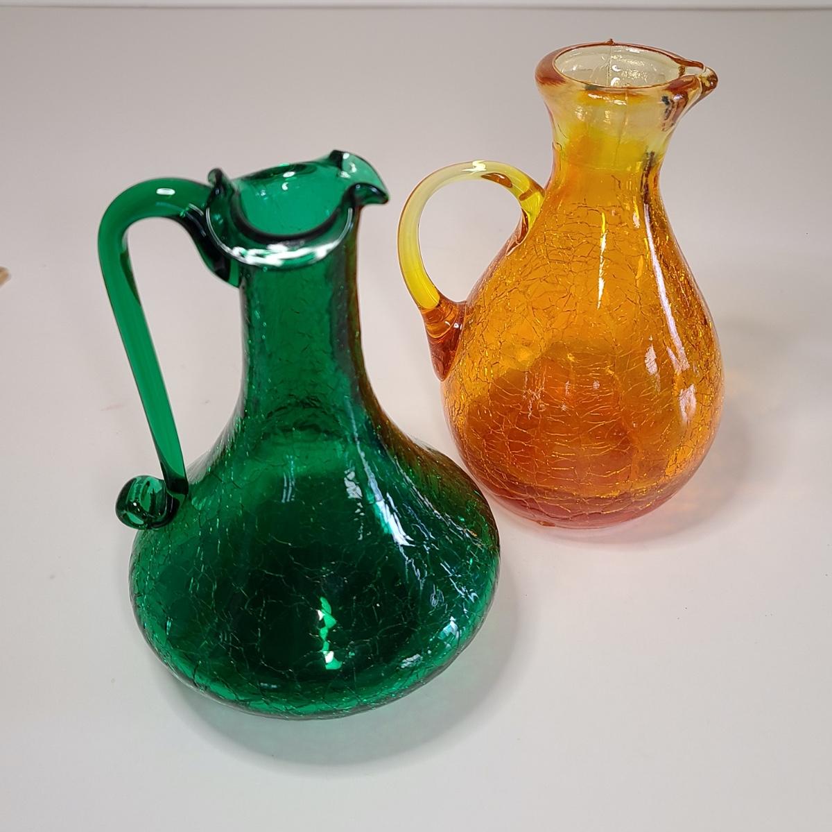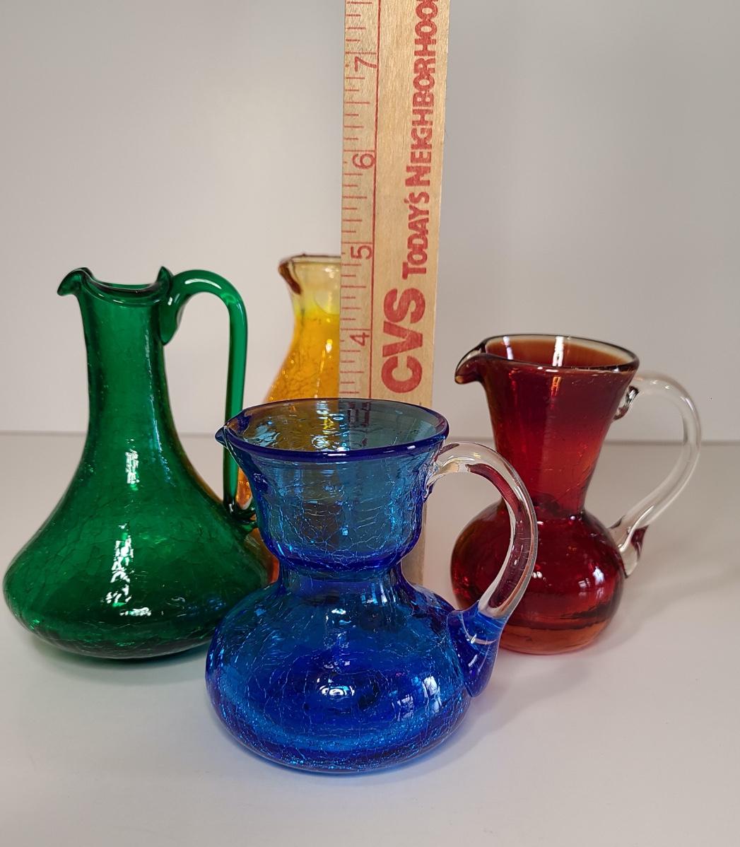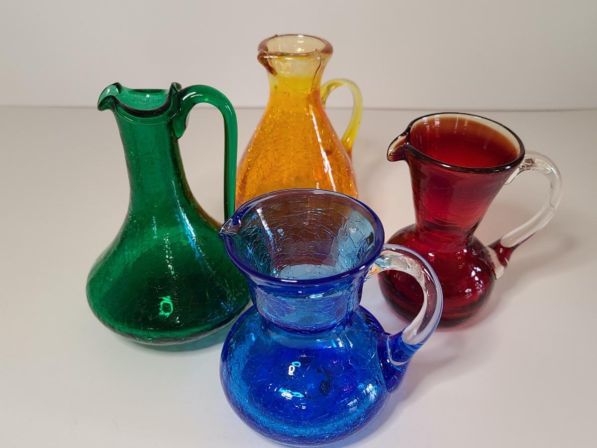 Lot 080: MCM Vintage Colorful Small Crackle Glass Pitchers
