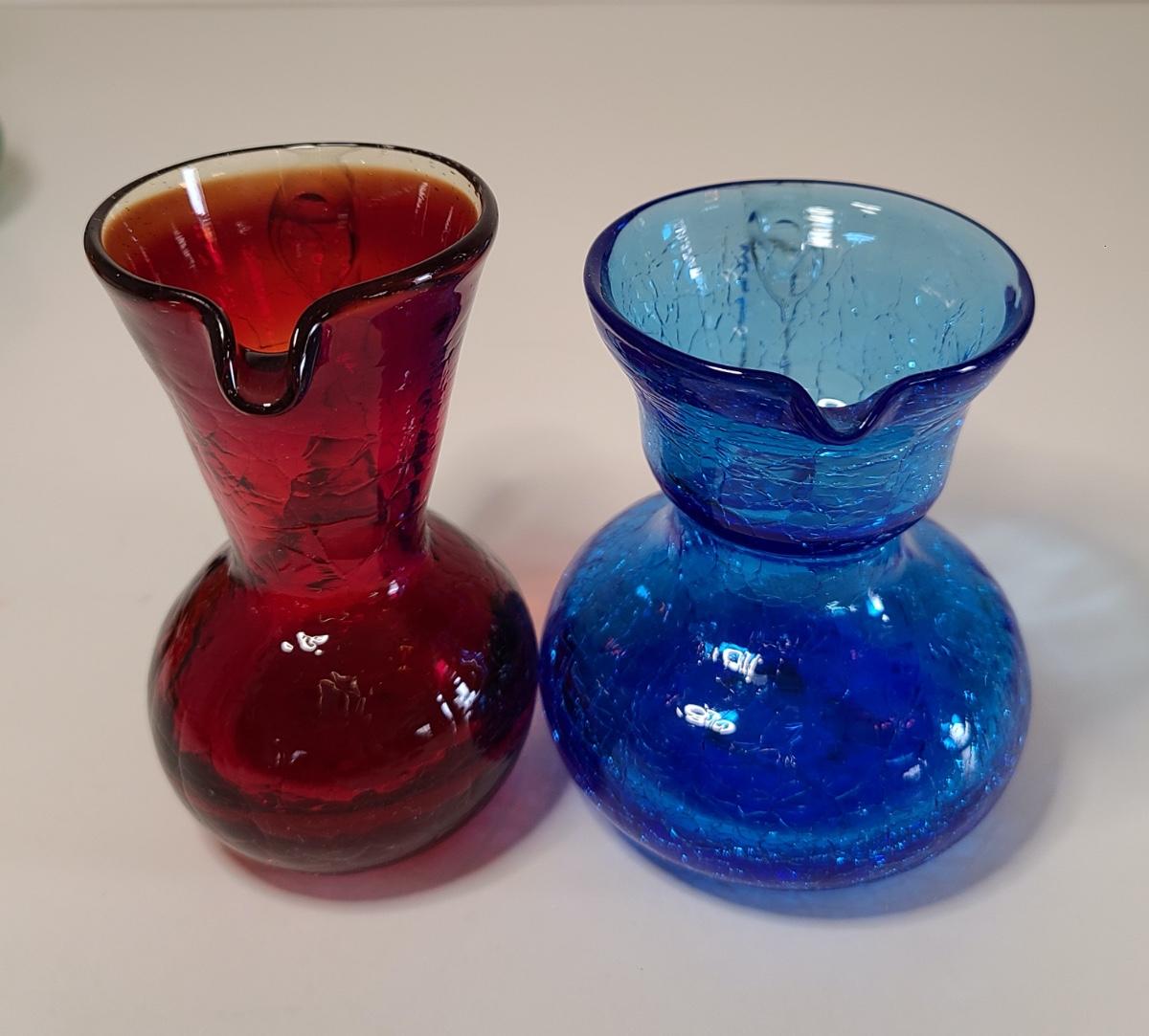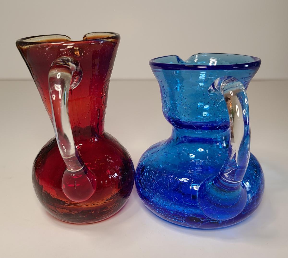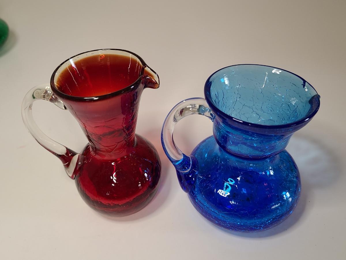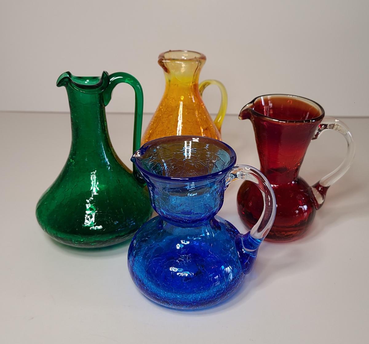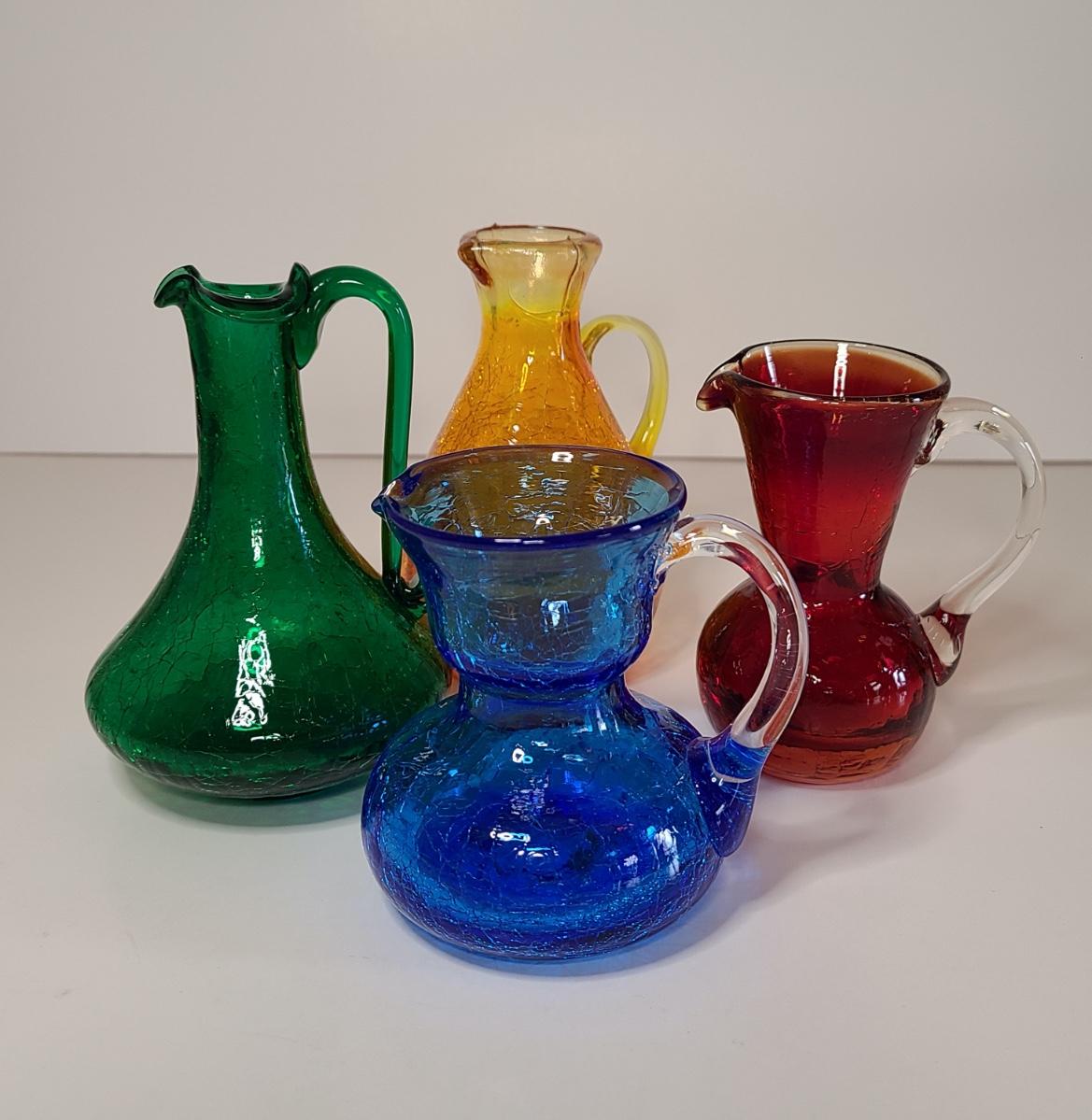 Lot 080: MCM Vintage Colorful Small Crackle Glass Pitchers