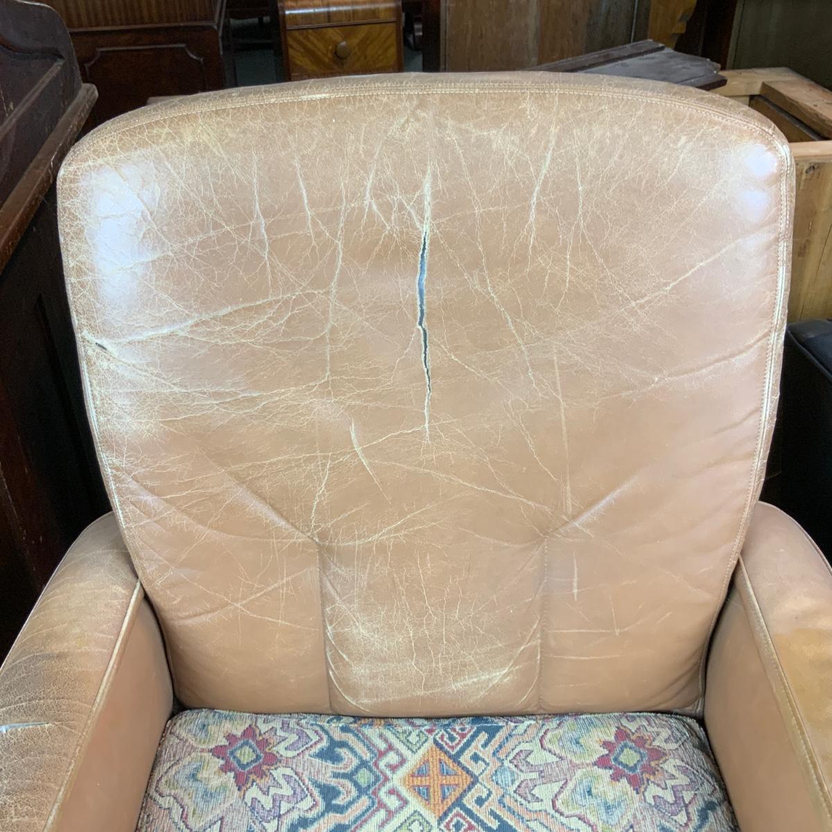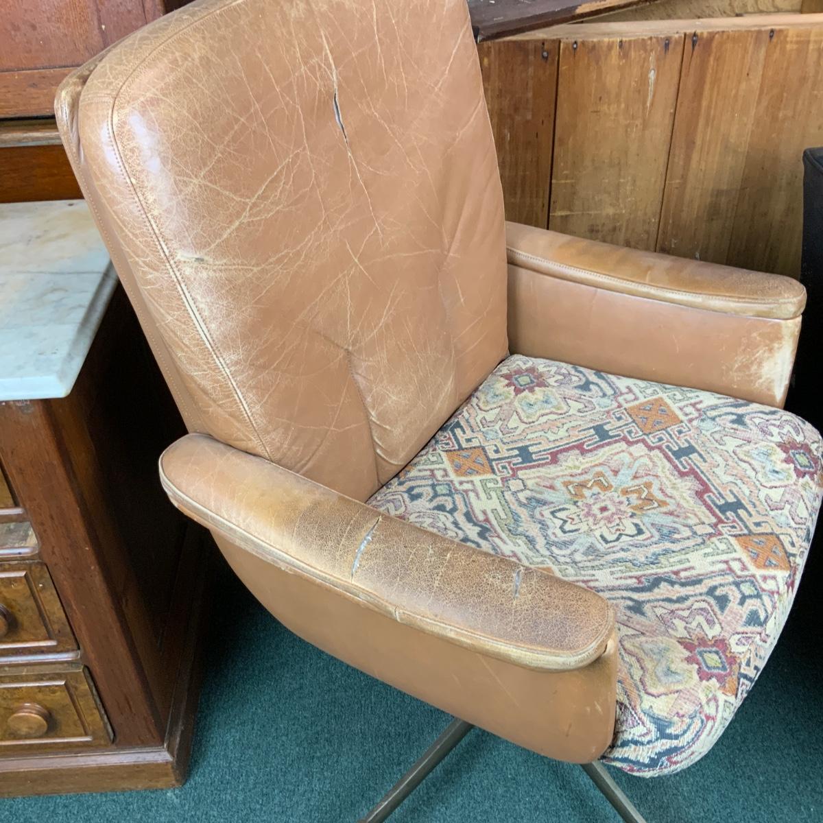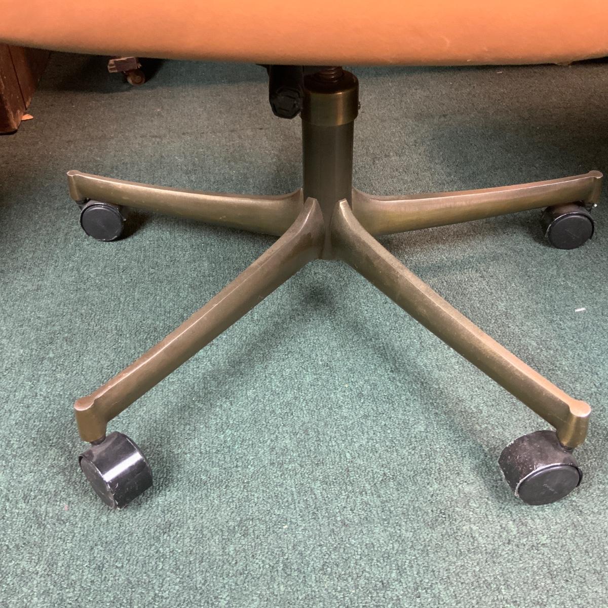 Vintage office chair with heavy metal base. Wheels work well you can zoom around the office in no time. Does need reupholstering. //::\\ Please see photos for details and condition. No attempt has been made to hide any imperfections. All items listed in this auction are warehouse items, and need to be cleaned. A majority of the items need restoration as well. All items are sold AS IS and WITHOUT GUARANTEE. If you are uncertain about an item, DO NOT BID. Due to the nature of this online auction in-person inspection is HIGHLY recommended. All Sales are FINAL. Pick Up Times are FIRM. Please confirm with your own schedule that you can pick up in the scheduled times listed in the Terms and Conditions. Any questions please message the auctioneer. DO NOT Contact The Harp Gallery.