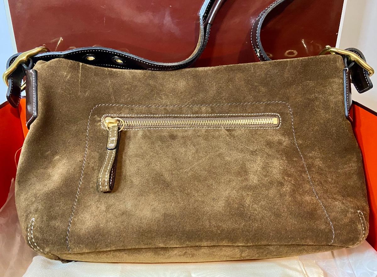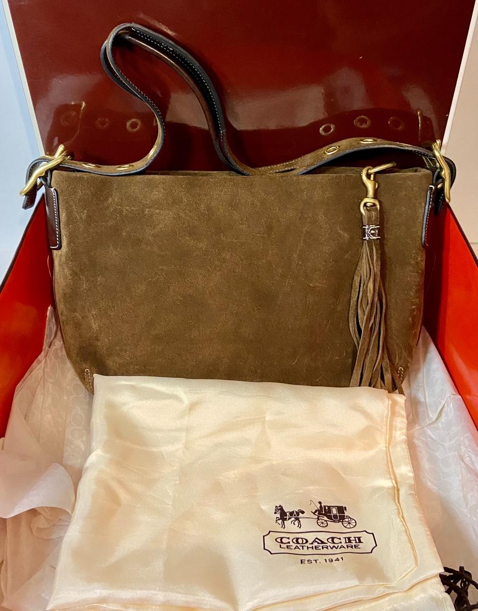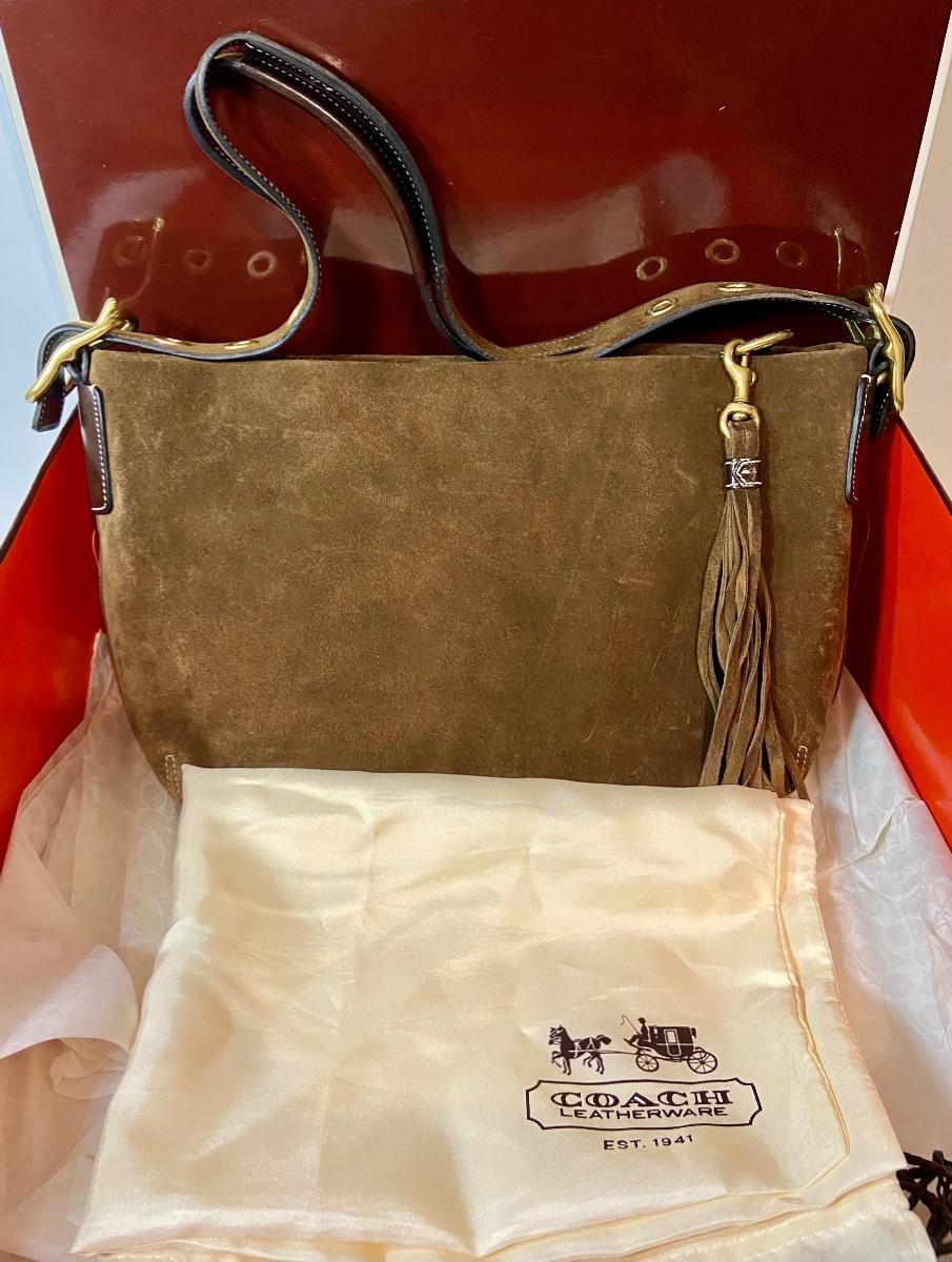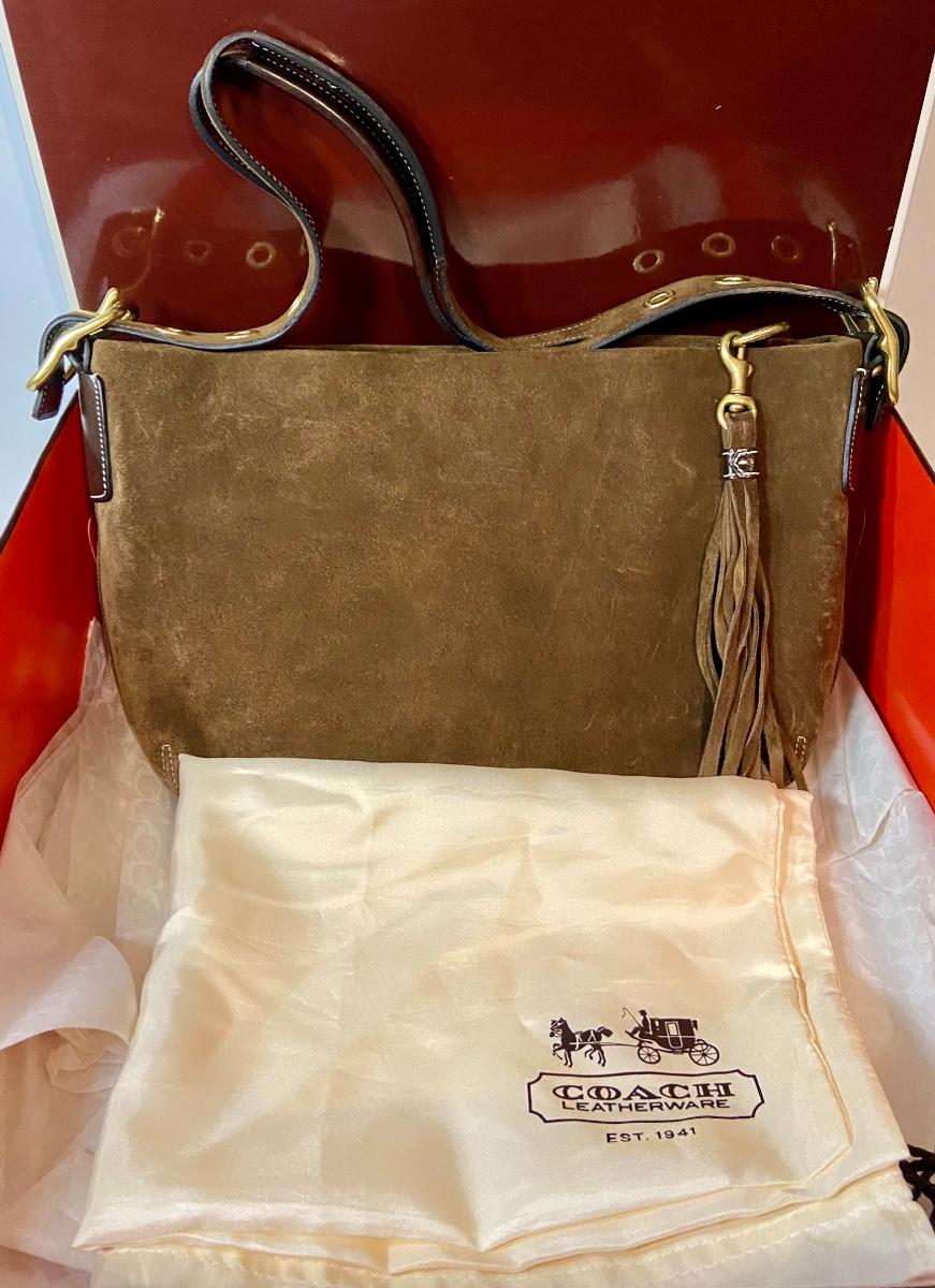 Lot 087: Suede Coach Handbag (With box/tags/dustbag)