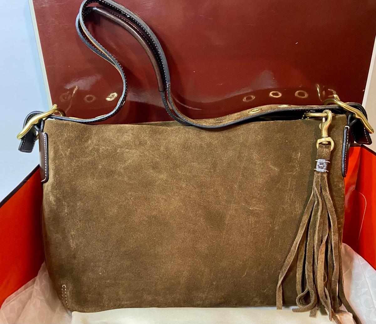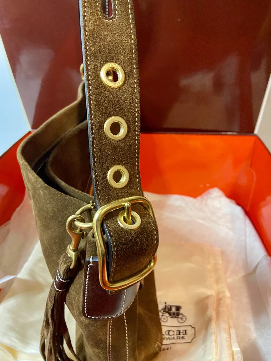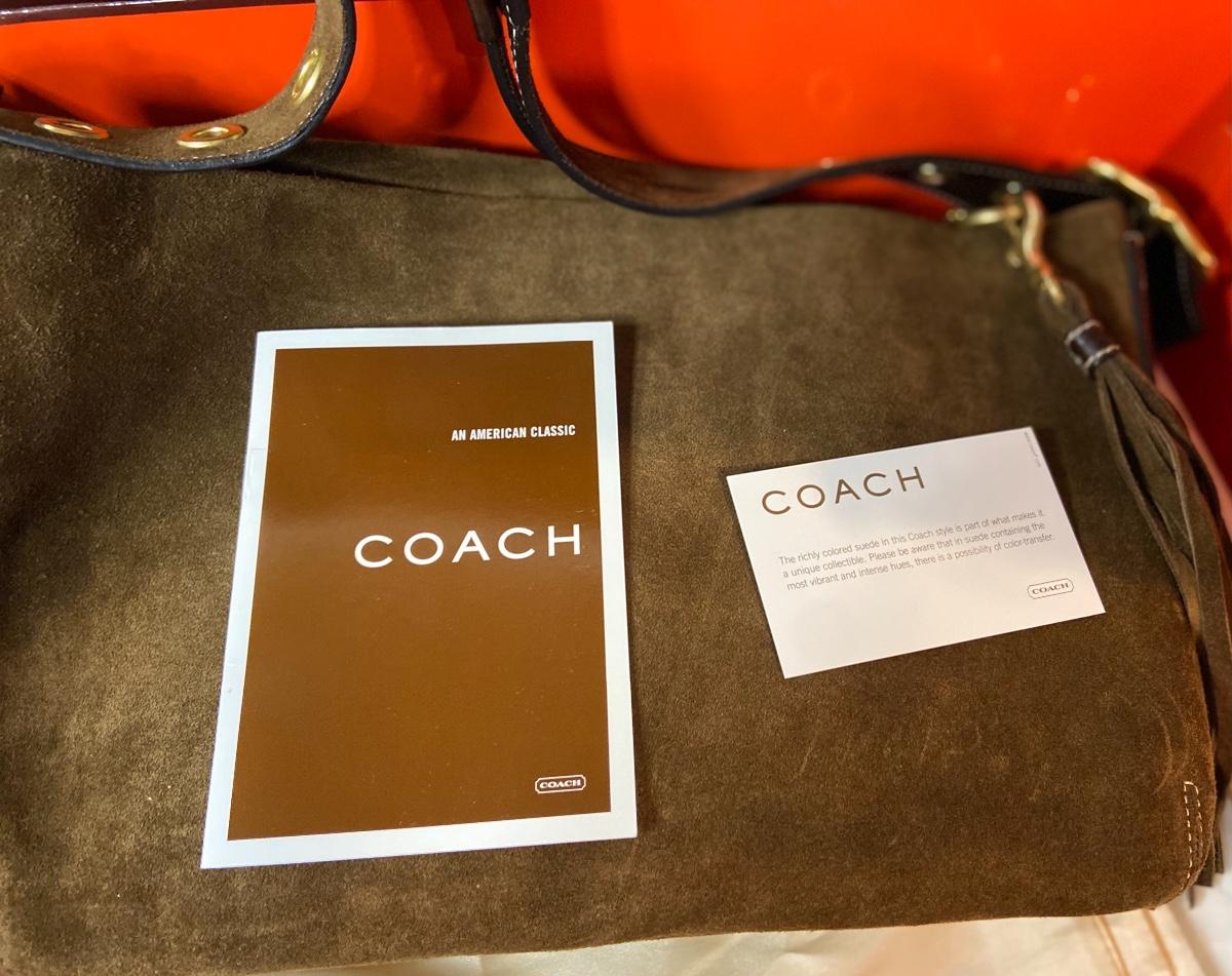 Lot 087: Suede Coach Handbag (With box/tags/dustbag)