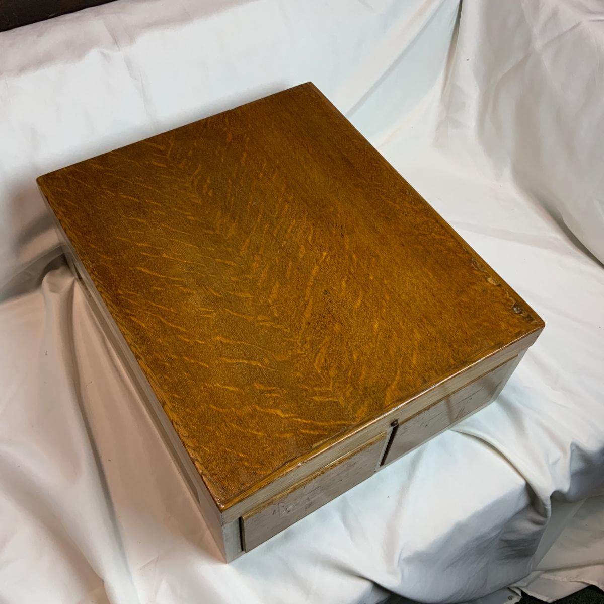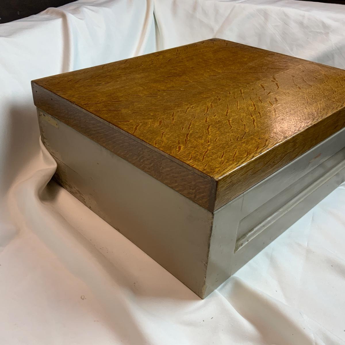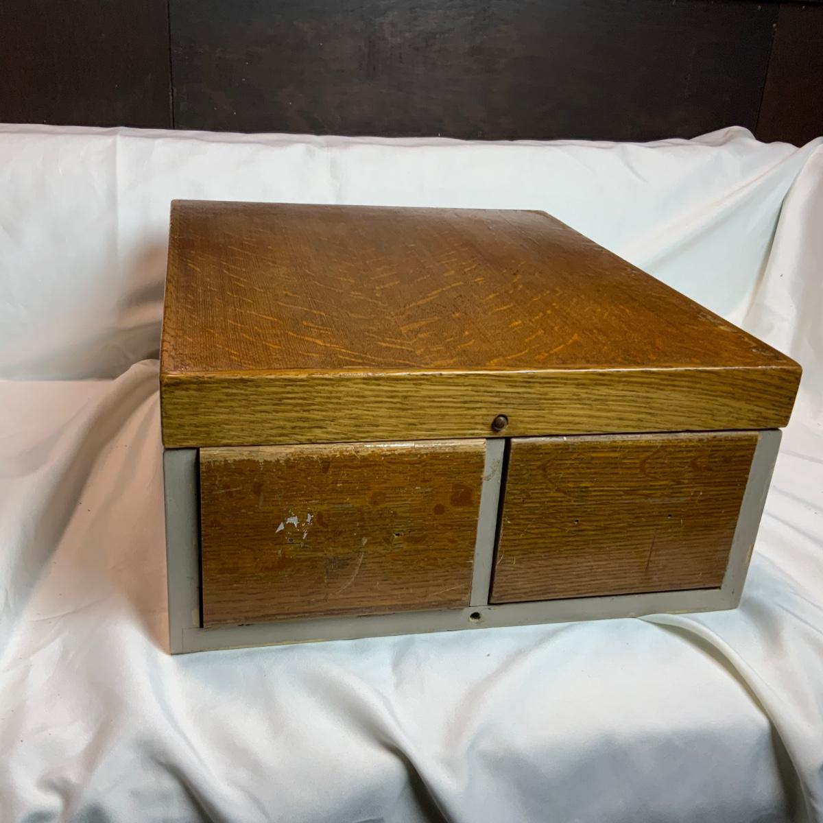 Small Metal and Wood Filing Cabinet. Small organization tool perfect for any office. There was a note on this piece indicating there is lead paint on it. Please refrain from nibbling on the paint. //::\\ Please see photos for details and condition. No attempt has been made to hide any imperfections. All items listed in this auction are warehouse items, and need to be cleaned. A majority of the items need restoration as well. All items are sold AS IS and WITHOUT GUARANTEE. If you are uncertain about an item, DO NOT BID. Due to the nature of this online auction in-person inspection is HIGHLY recommended. All Sales are FINAL. Pick Up Times are FIRM. Please confirm with your own schedule that you can pick up in the scheduled times listed in the Terms and Conditions. Any questions please message the auctioneer. DO NOT Contact The Harp Gallery.