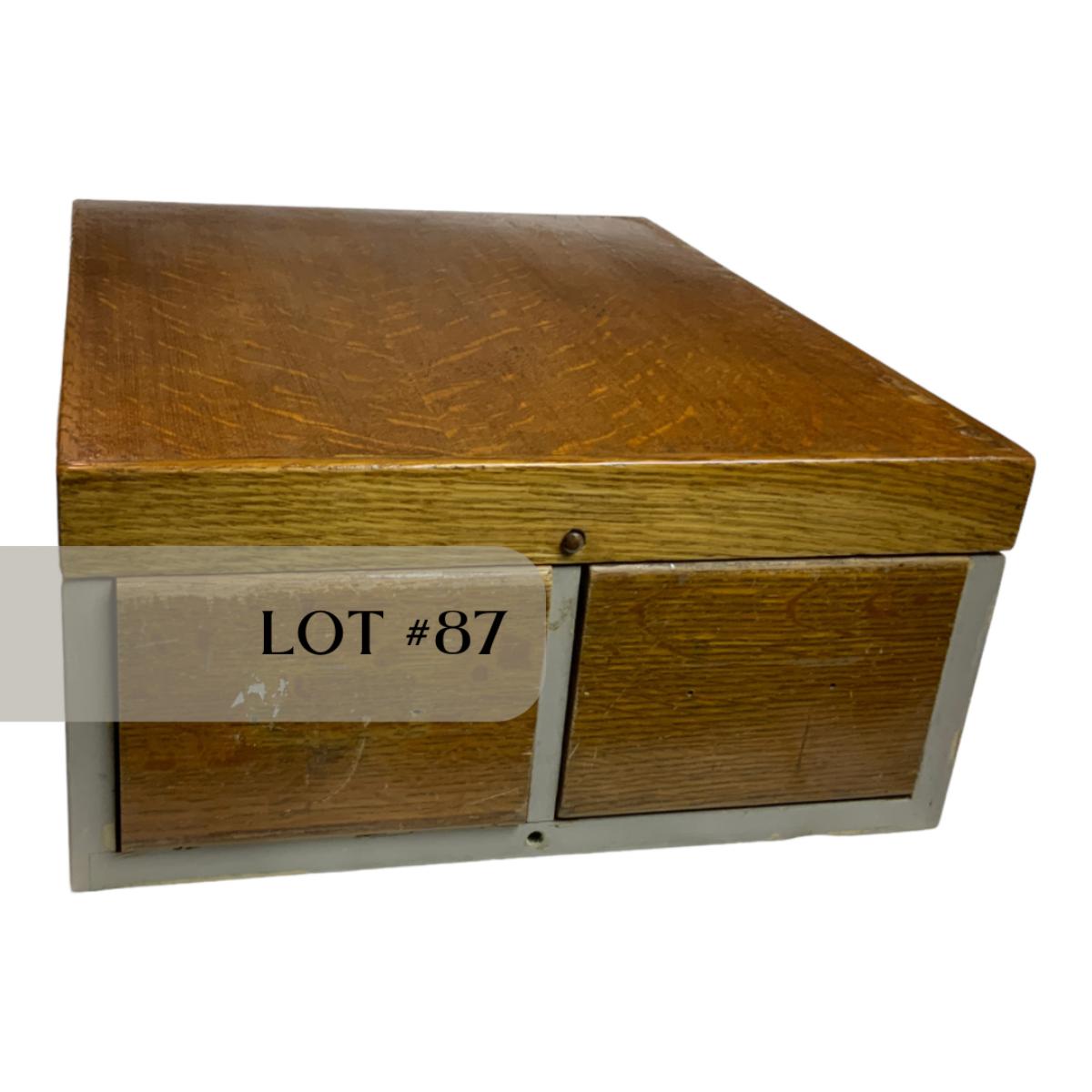 Lot 087 | Small Metal and Wood Filing Cabinet