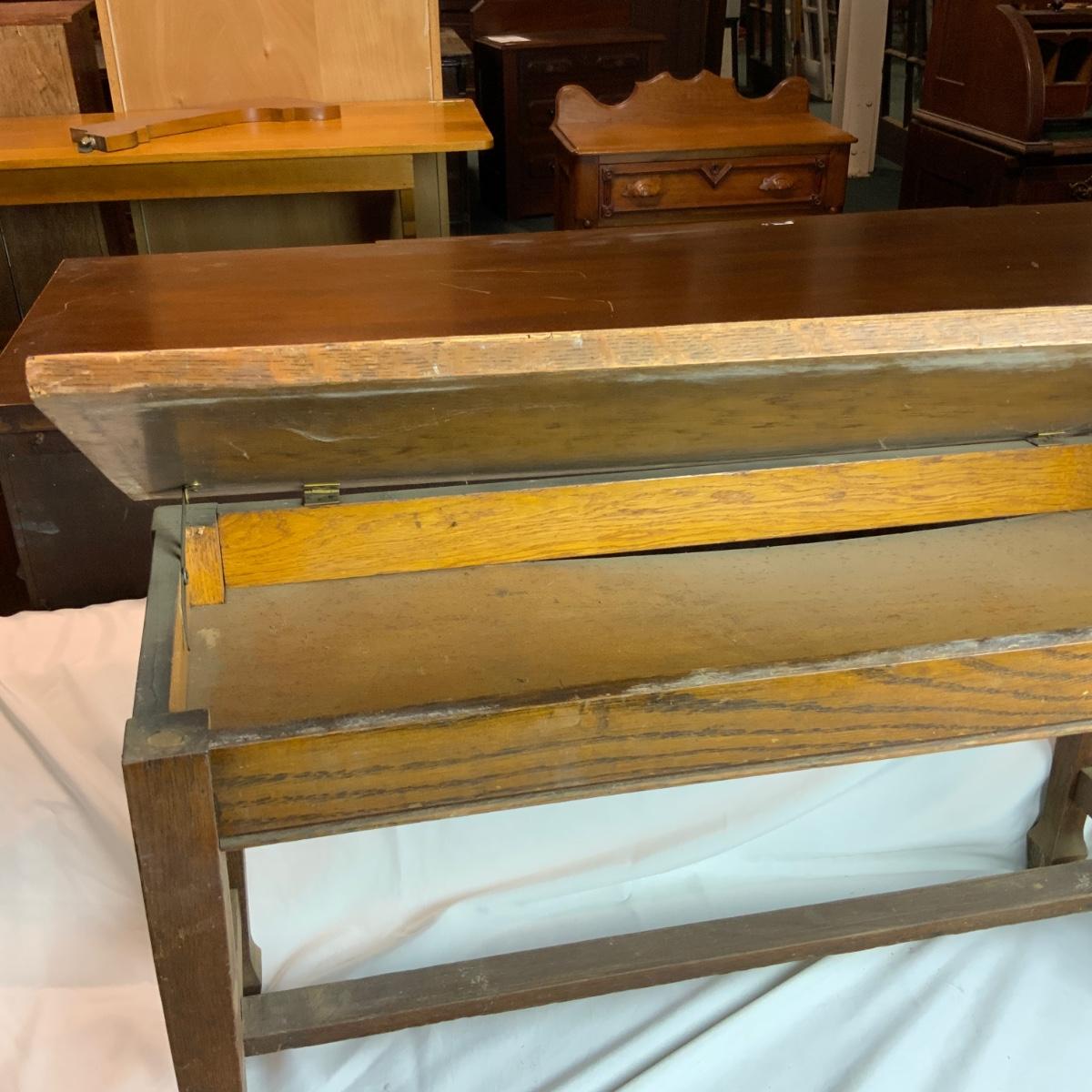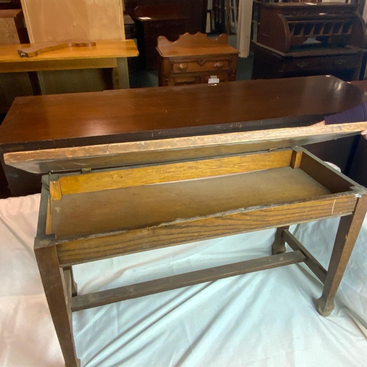 Large Wood Piano Bench. This piano bench needs a bit of work before it would be suitable to sit in front of a Steinway. Top opens for storage. //::\\ Please see photos for details and condition. No attempt has been made to hide any imperfections. All items listed in this auction are warehouse items, and need to be cleaned. A majority of the items need restoration as well. All items are sold AS IS and WITHOUT GUARANTEE. If you are uncertain about an item, DO NOT BID. Due to the nature of this online auction in-person inspection is HIGHLY recommended. All Sales are FINAL. Pick Up Times are FIRM. Please confirm with your own schedule that you can pick up in the scheduled times listed in the Terms and Conditions. Any questions please message the auctioneer. DO NOT Contact The Harp Gallery.
