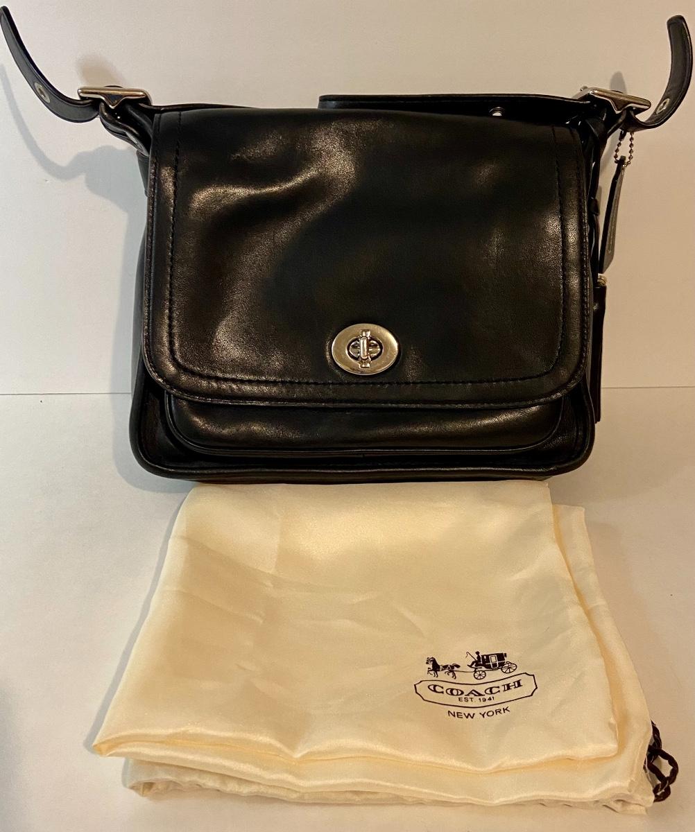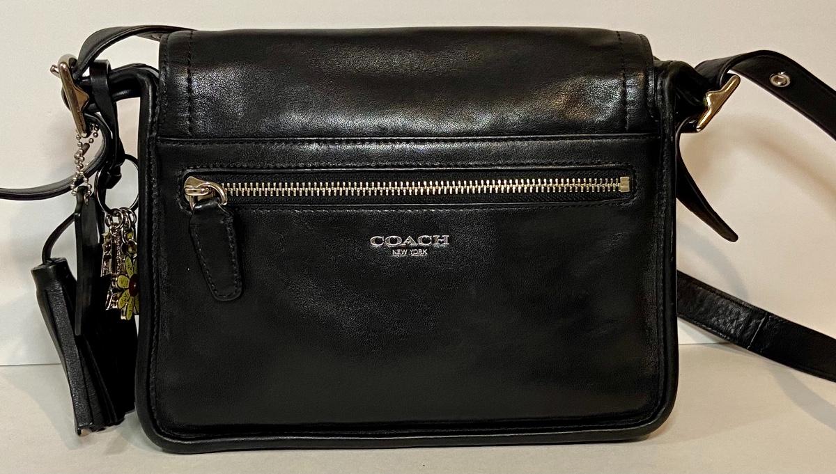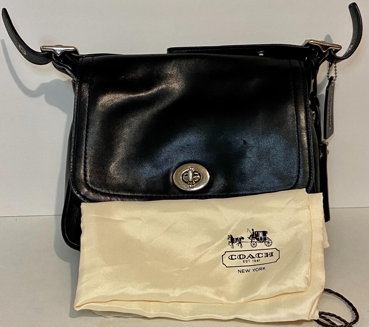 Lot 090: Medium Black Leather Coach Handbag/Crossbody