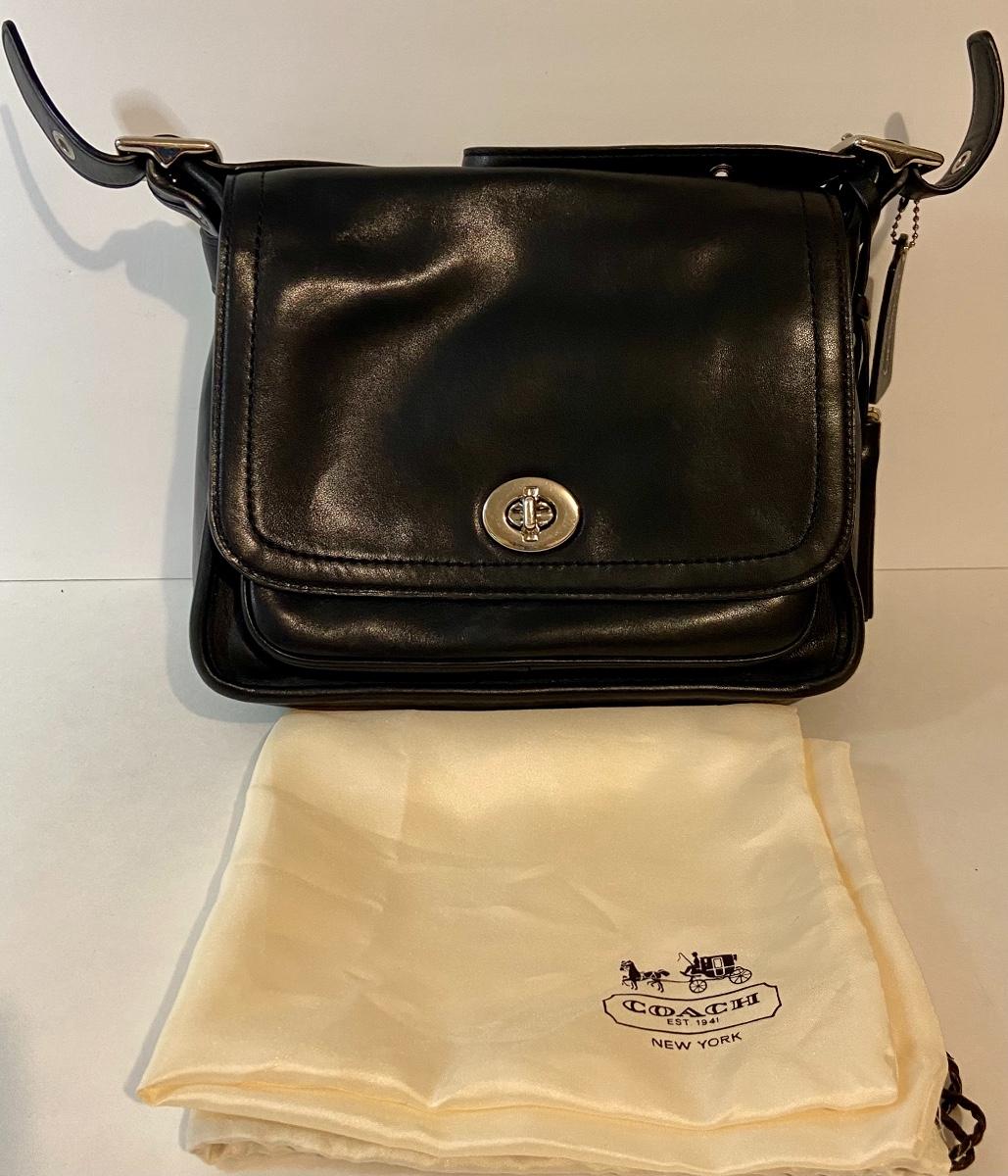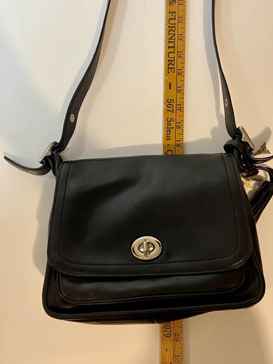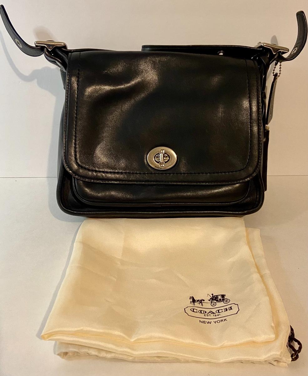 Lot 090: Medium Black Leather Coach Handbag/Crossbody