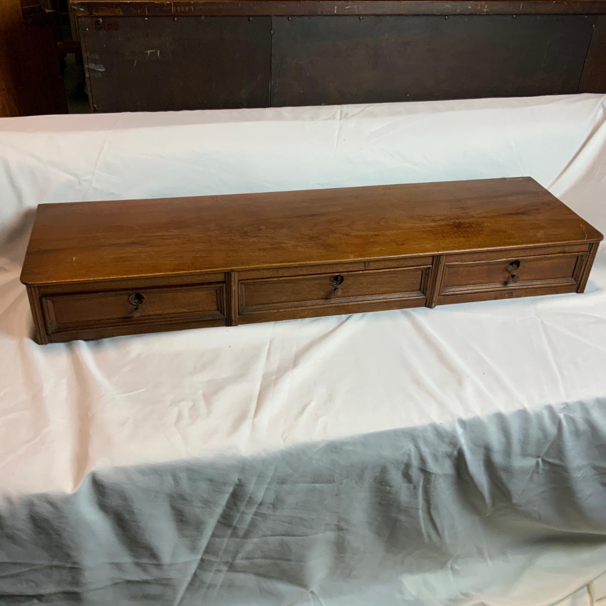 Desk Top Drawer Organizer. Clean it up put it on your desk and enjoy the additional storage. It’s also a good idea. If you’re using a computer monitor to have that raised to I love all this will help with eye strain. //::\\ Please see photos for details and condition. No attempt has been made to hide any imperfections. All items listed in this auction are warehouse items, and need to be cleaned. A majority of the items need restoration as well. All items are sold AS IS and WITHOUT GUARANTEE. If you are uncertain about an item, DO NOT BID. Due to the nature of this online auction in-person inspection is HIGHLY recommended. All Sales are FINAL. Pick Up Times are FIRM. Please confirm with your own schedule that you can pick up in the scheduled times listed in the Terms and Conditions. Any questions please message the auctioneer. DO NOT Contact The Harp Gallery.