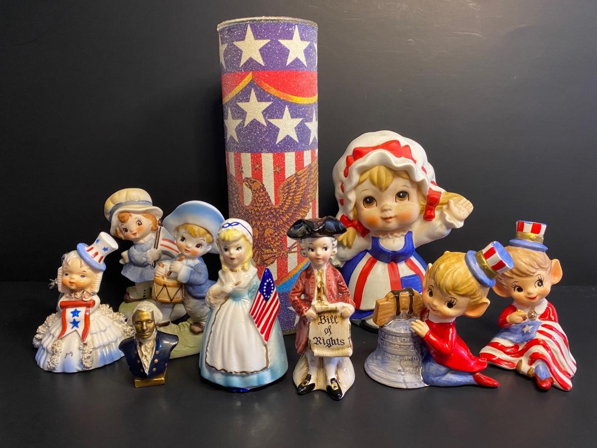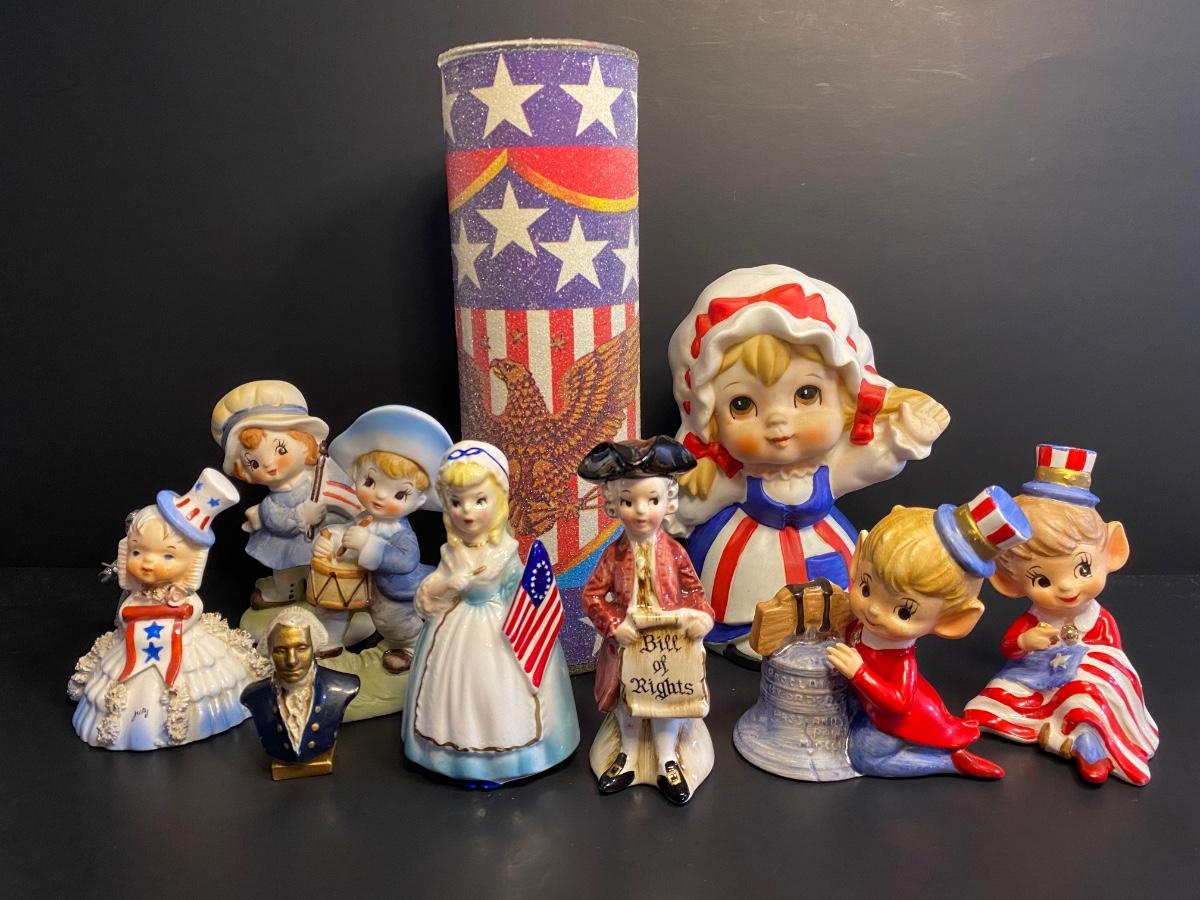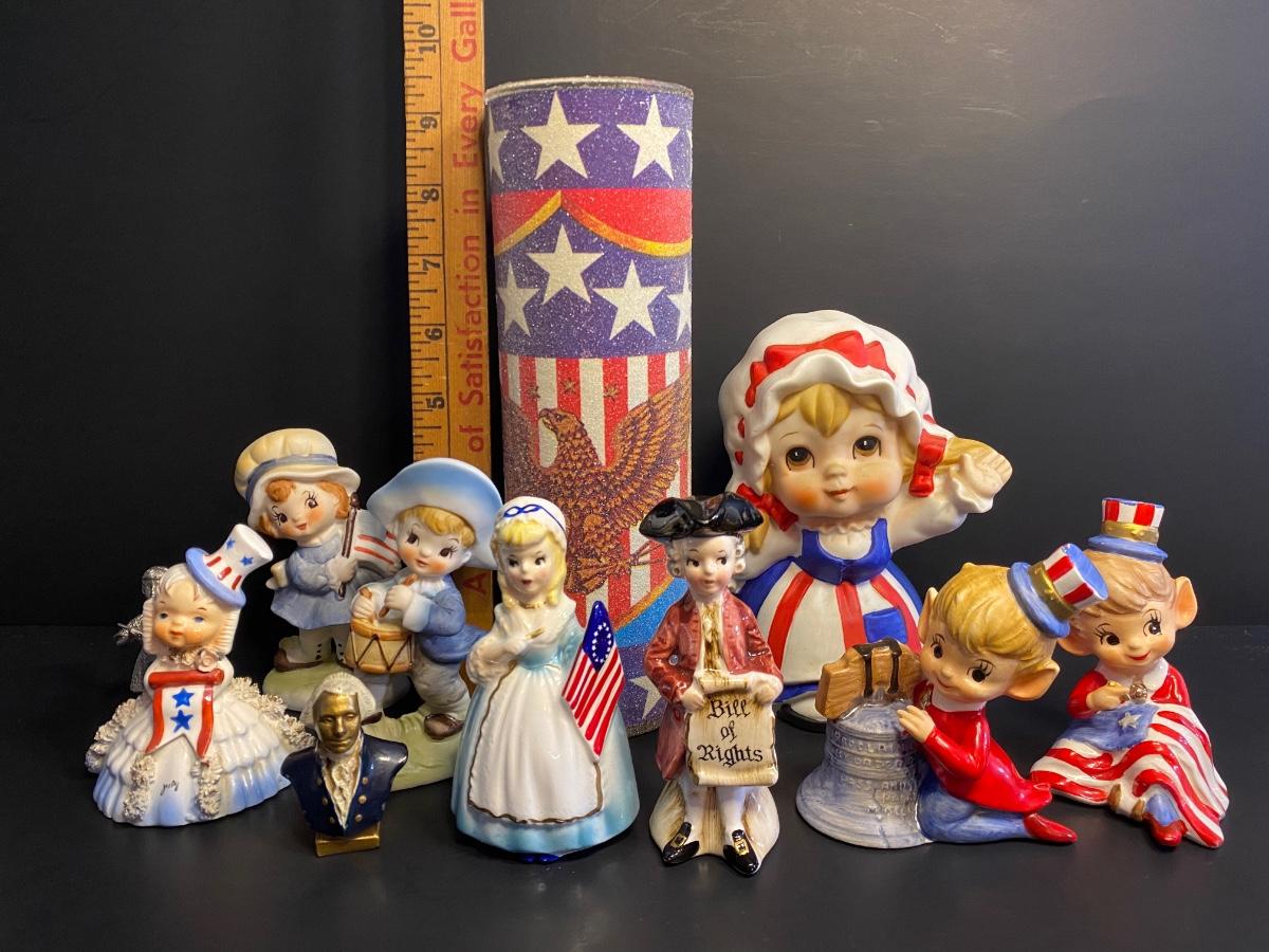 Patriotic lot filled with vintage salt and pepper shaker’s, candle, Napco and Enesco collectors Figurines and more. Please see all pictures as they are the best representation of the items. The pictures show condition, measurements if taken, and what is included in the lot. Due to the large amount that we photograph and the time frame, we are not always able to take measurements. All items unless noted, are pre-owned and have been used. If you purchased furniture, you must bring help. We do not allow one person to carry large furniture out on their own. Bring help, tools and a truck for the safety of our client’s homes, and your personal safety. Company policy. Thank you.