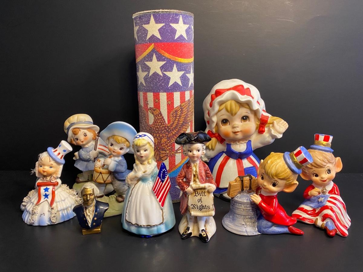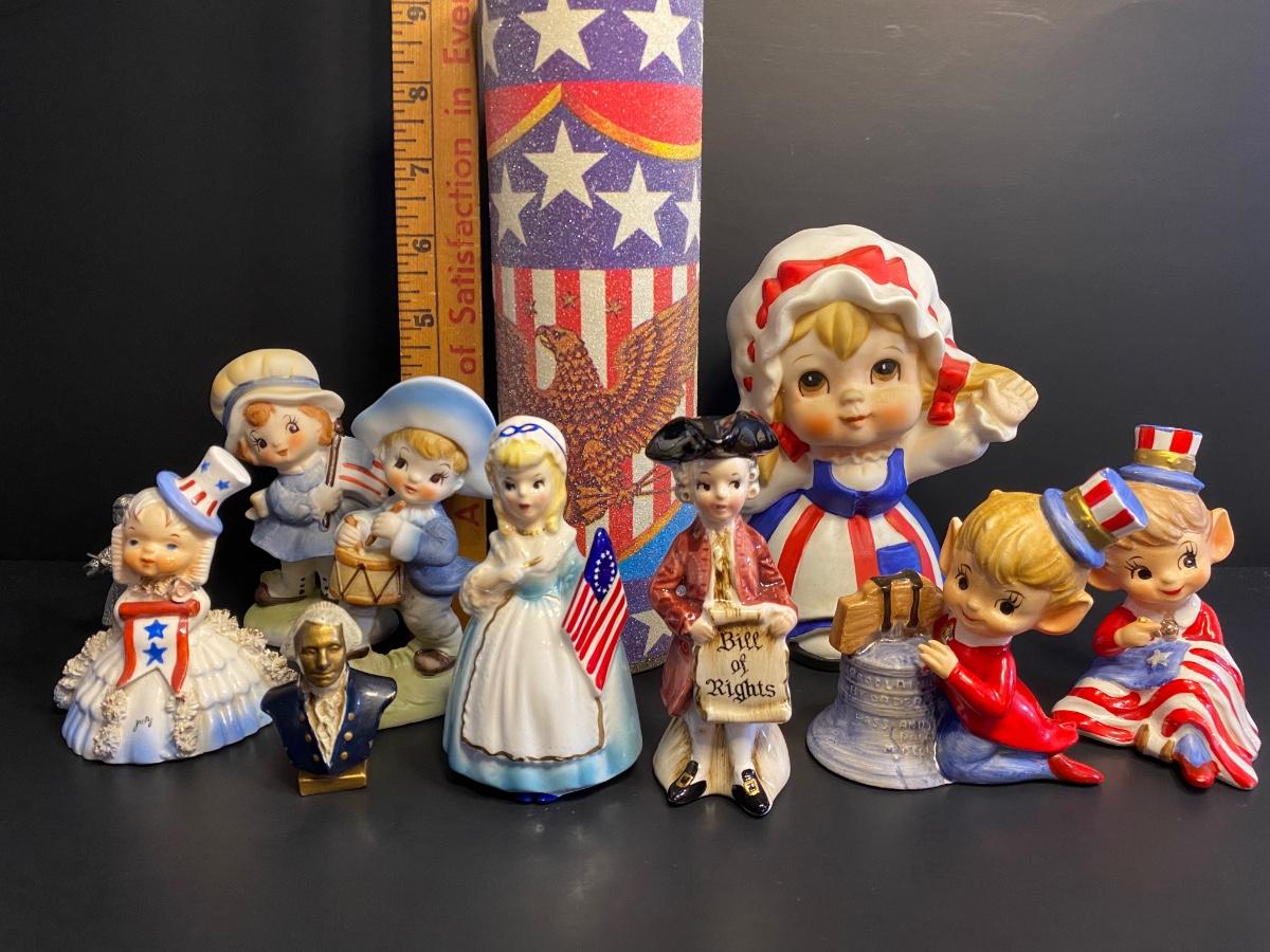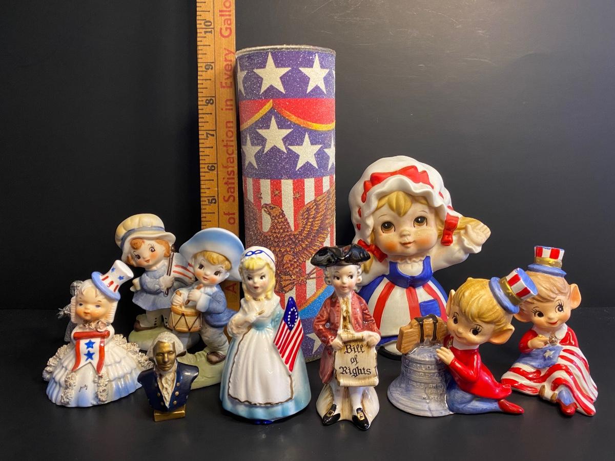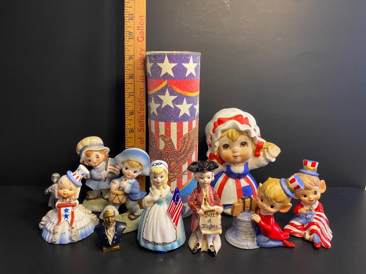 Patriotic lot filled with vintage salt and pepper shaker’s, candle, Napco and Enesco collectors Figurines and more. Please see all pictures as they are the best representation of the items. The pictures show condition, measurements if taken, and what is included in the lot. Due to the large amount that we photograph and the time frame, we are not always able to take measurements. All items unless noted, are pre-owned and have been used. If you purchased furniture, you must bring help. We do not allow one person to carry large furniture out on their own. Bring help, tools and a truck for the safety of our client’s homes, and your personal safety. Company policy. Thank you.