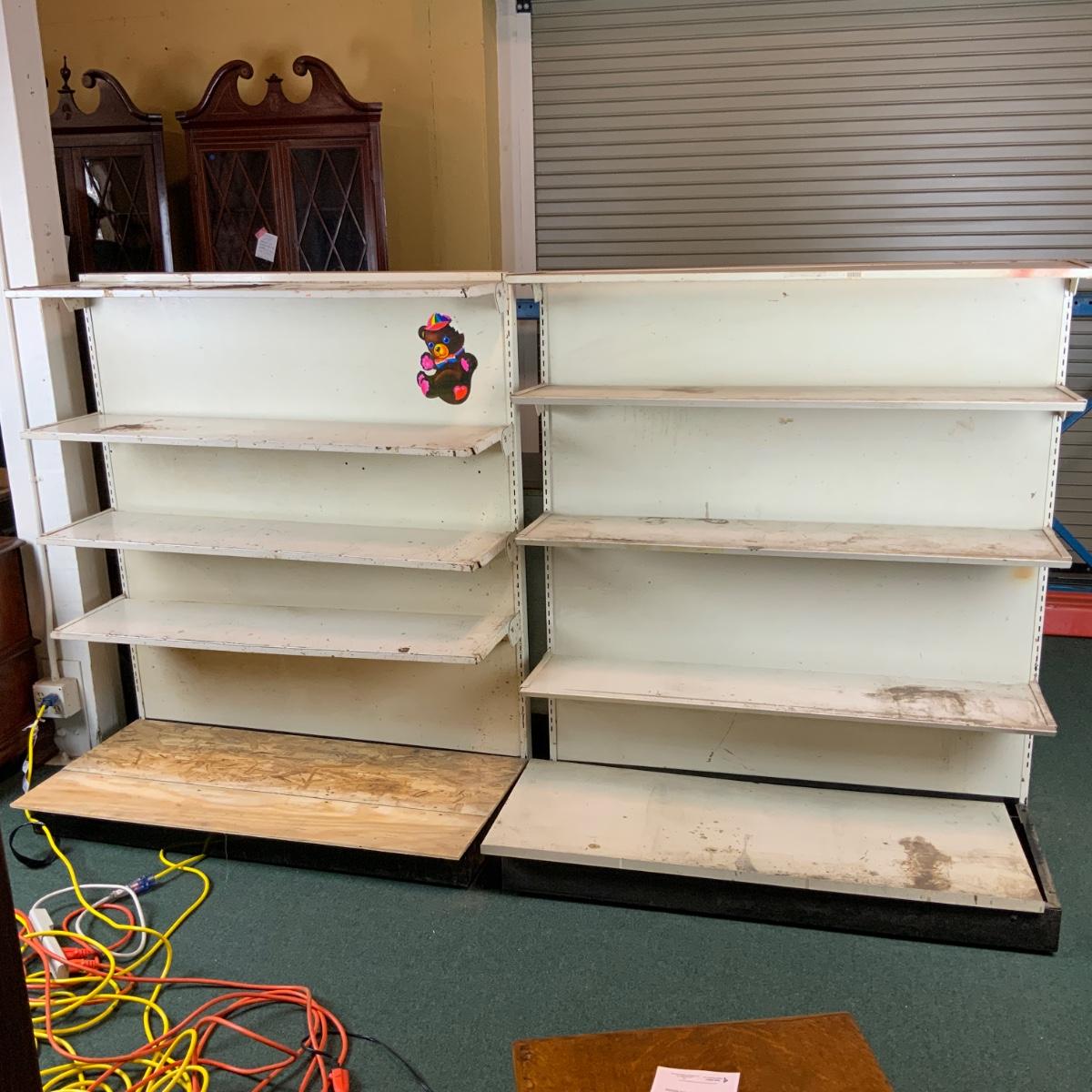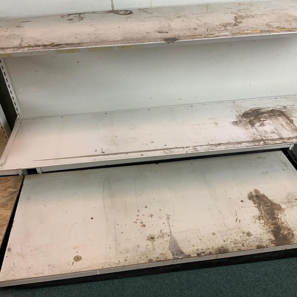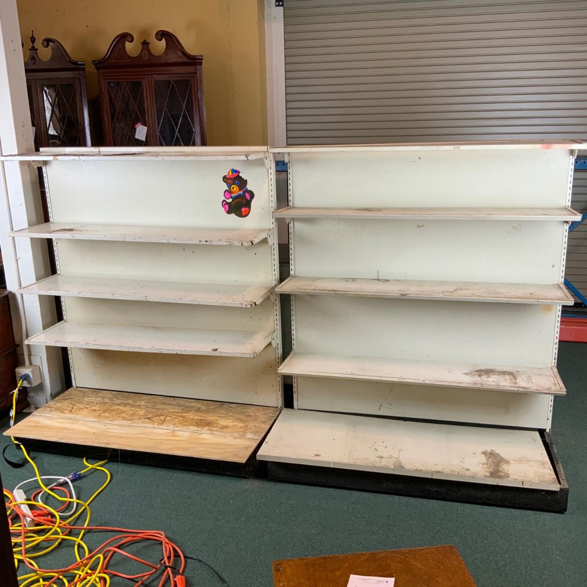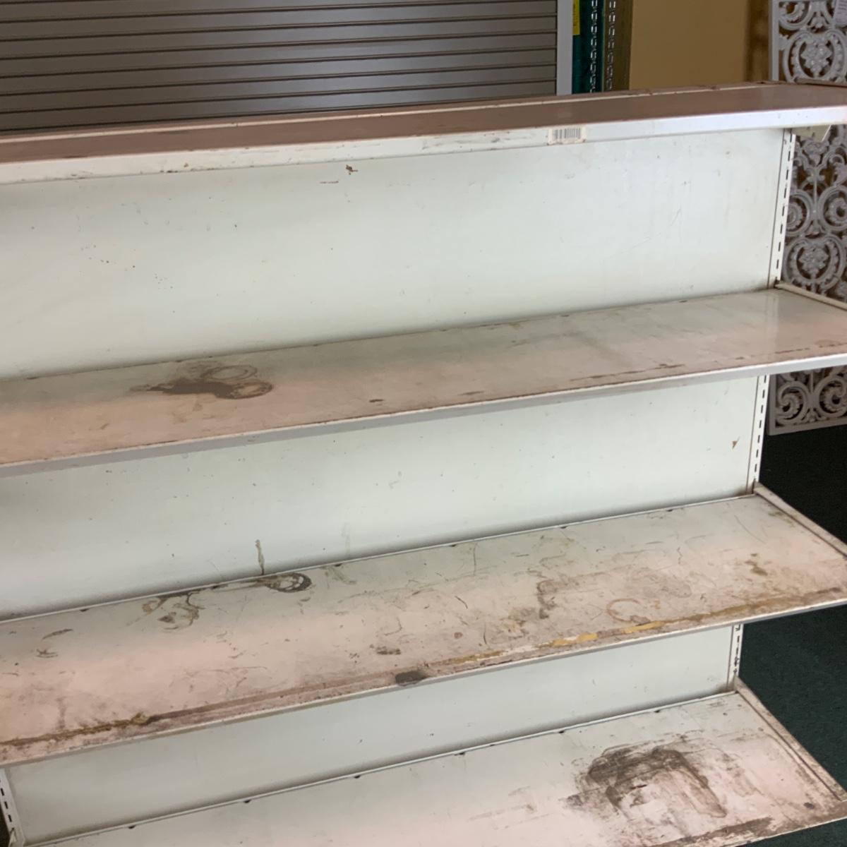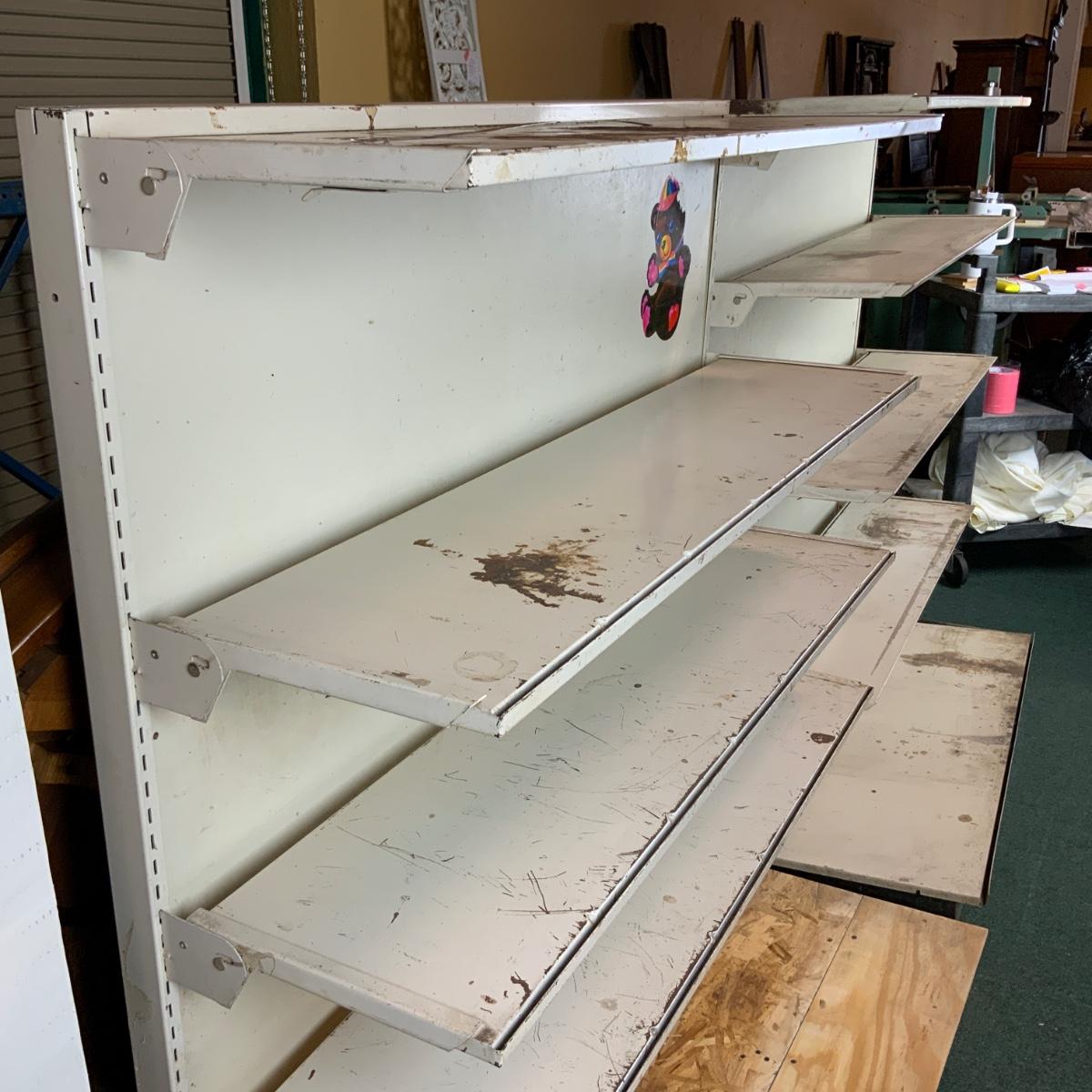 Two Store Shelving Units. This would work great for organizing a garage or warehouse. You can never have too many shelves. The bear sticker is just an added bonus! //::\\ Please see photos for details and condition. No attempt has been made to hide any imperfections. All items listed in this auction are warehouse items, and need to be cleaned. A majority of the items need restoration as well. All items are sold AS IS and WITHOUT GUARANTEE. If you are uncertain about an item, DO NOT BID. Due to the nature of this online auction in-person inspection is HIGHLY recommended. All Sales are FINAL. Pick Up Times are FIRM. Please confirm with your own schedule that you can pick up in the scheduled times listed in the Terms and Conditions. Any questions please message the auctioneer. DO NOT Contact The Harp Gallery.