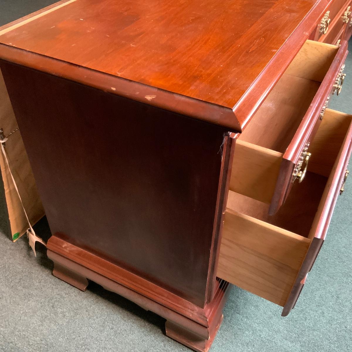 Small Two-Drawer Dresser. In nice condition. A solid piece. And essential piece. //::\\ Please see photos for details and condition. No attempt has been made to hide any imperfections. All items listed in this auction are warehouse items, and need to be cleaned. A majority of the items need restoration as well. All items are sold AS IS and WITHOUT GUARANTEE. If you are uncertain about an item, DO NOT BID. Due to the nature of this online auction in-person inspection is HIGHLY recommended. All Sales are FINAL. Pick Up Times are FIRM. Please confirm with your own schedule that you can pick up in the scheduled times listed in the Terms and Conditions. Any questions please message the auctioneer. DO NOT Contact The Harp Gallery.