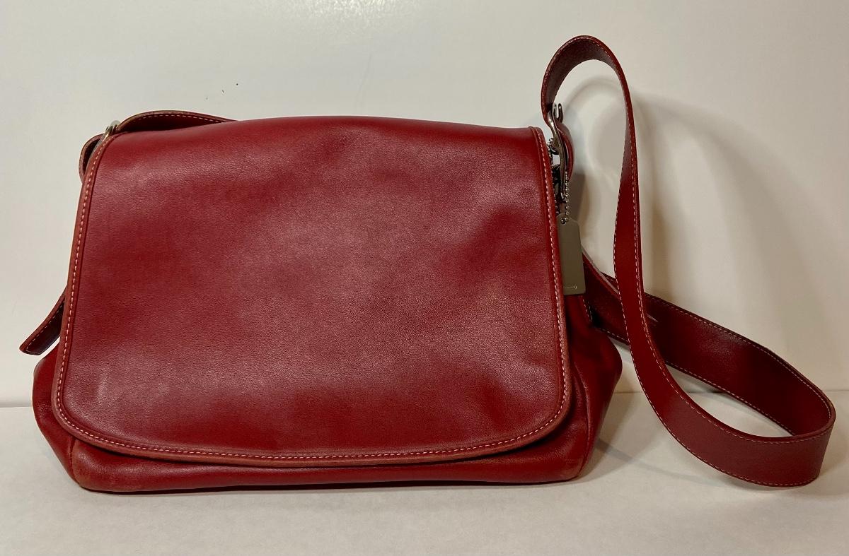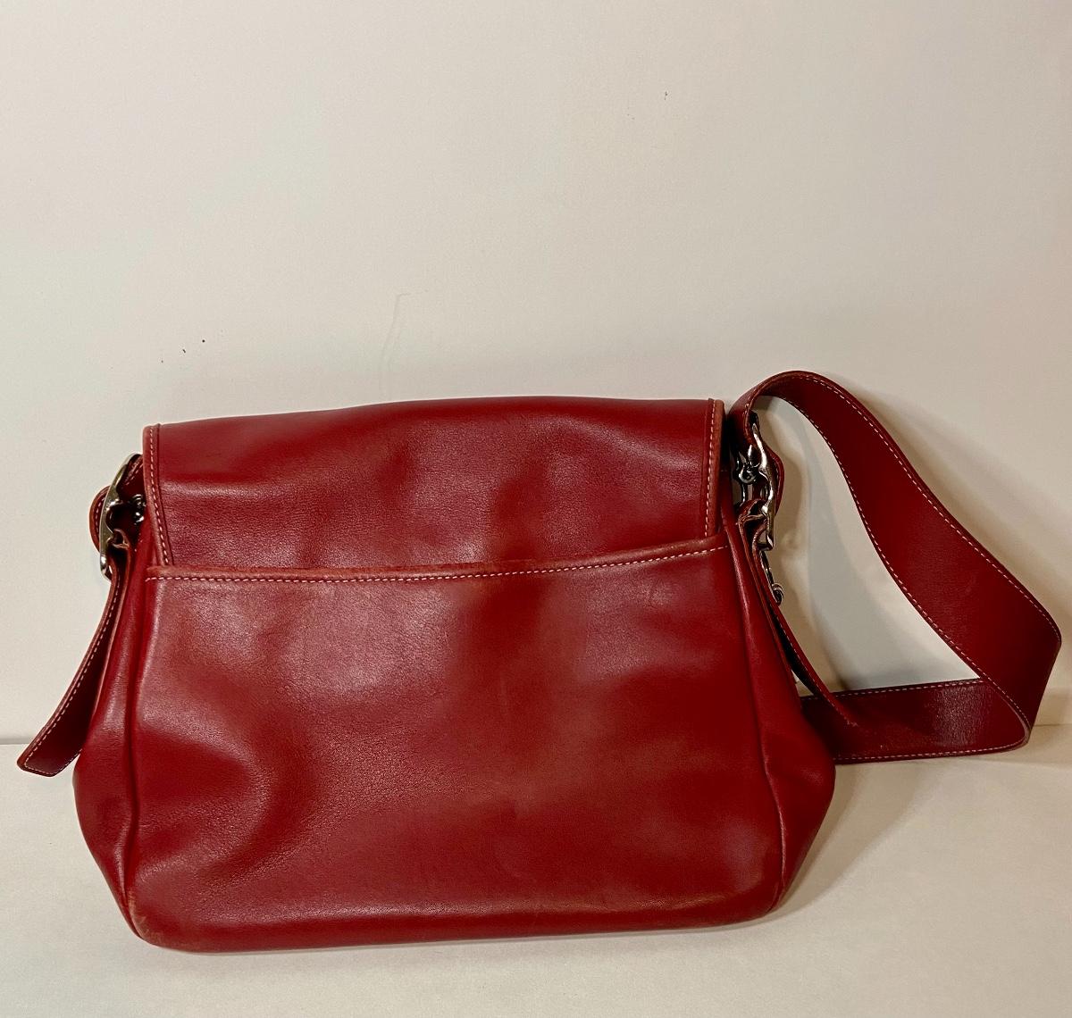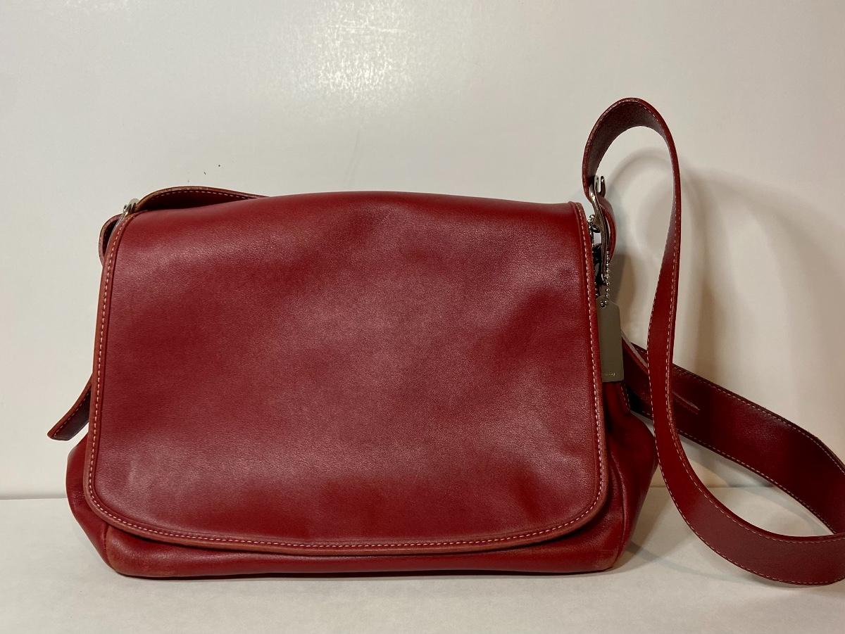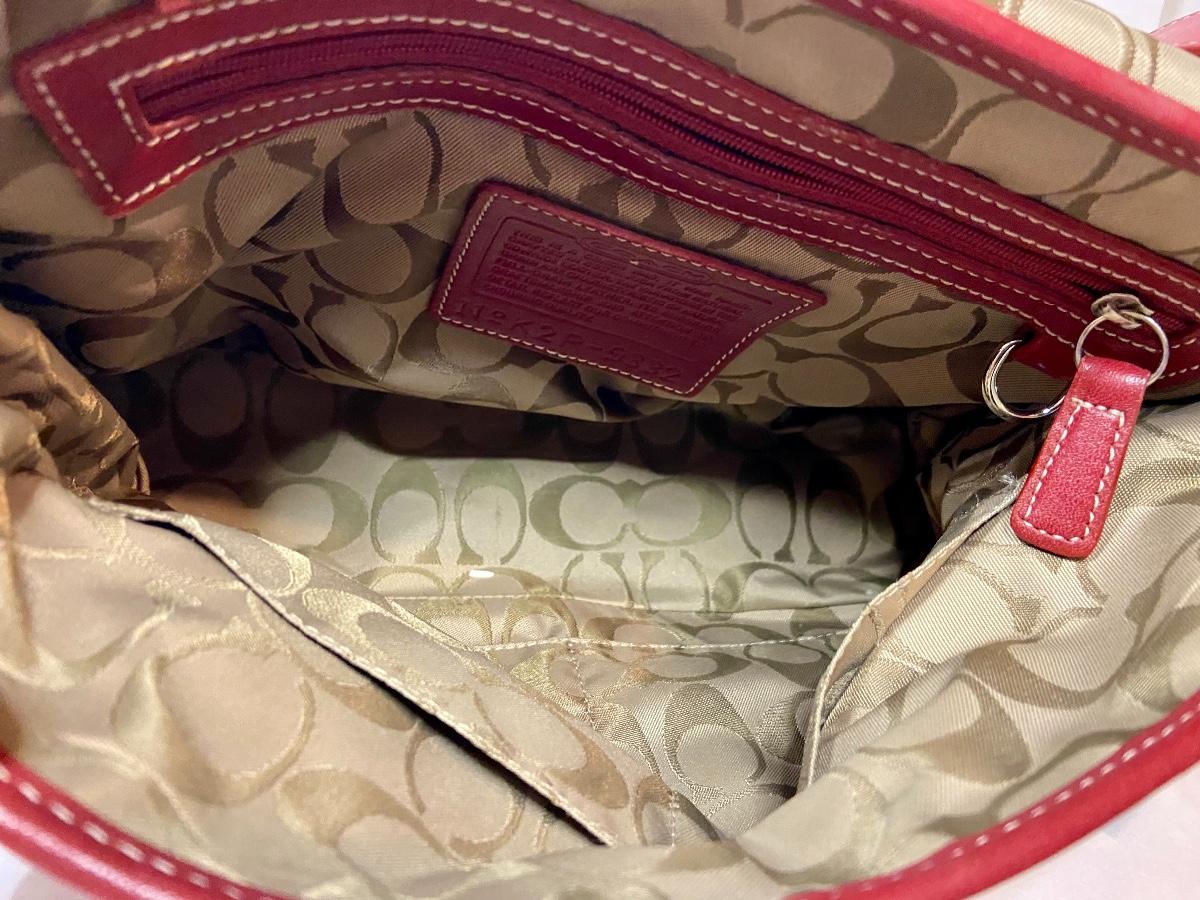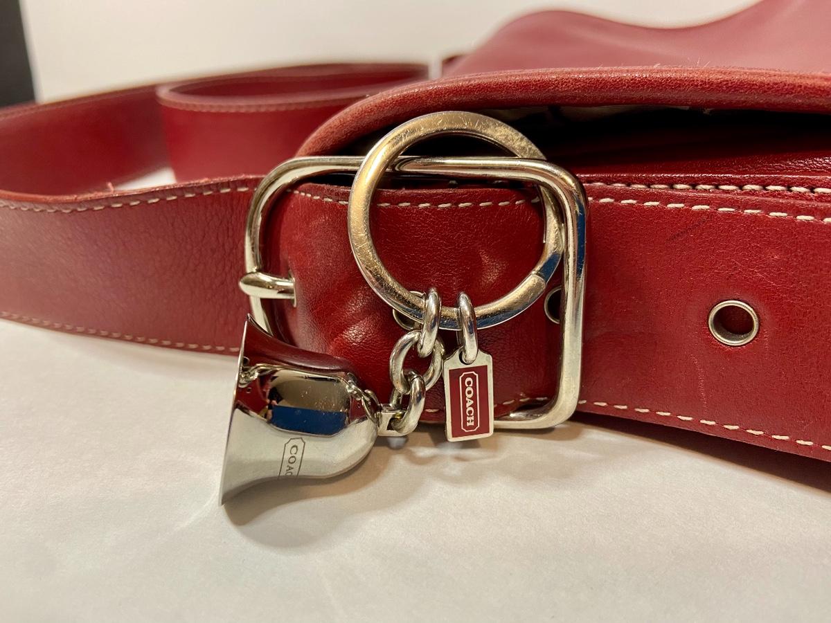 Lot 097: Red Leather Medium Coach Handbag w/ Coach Keychain