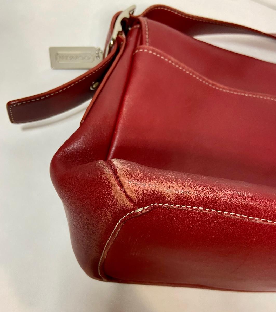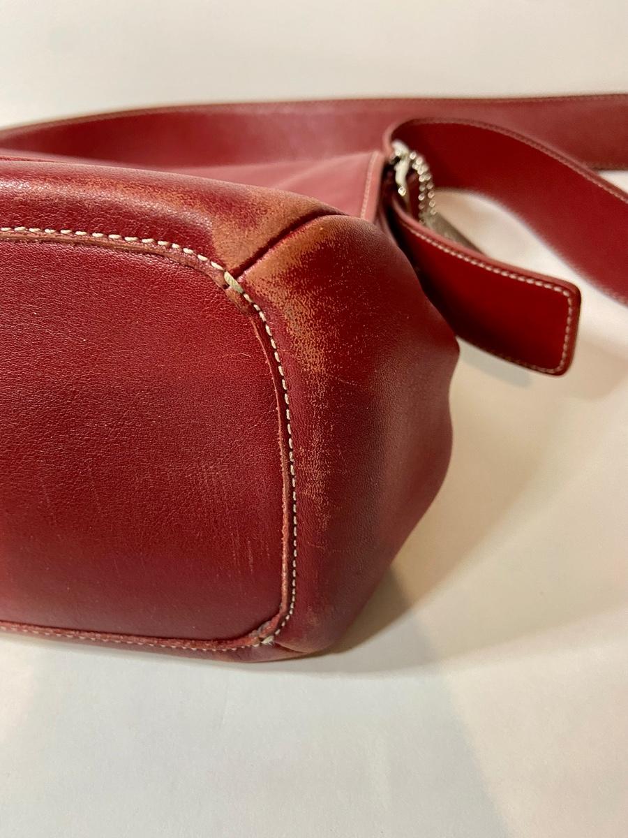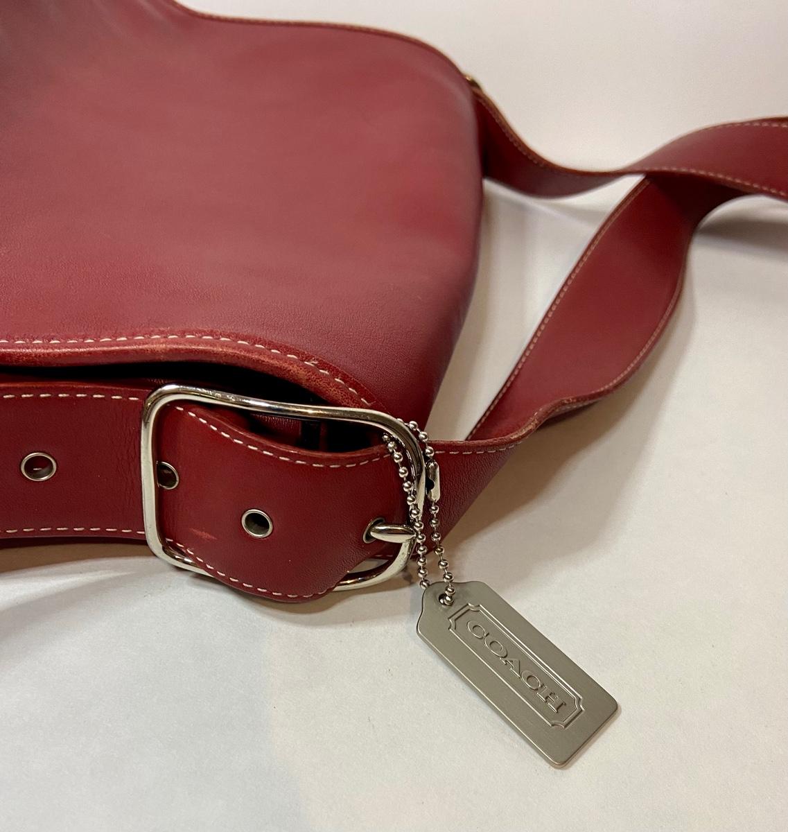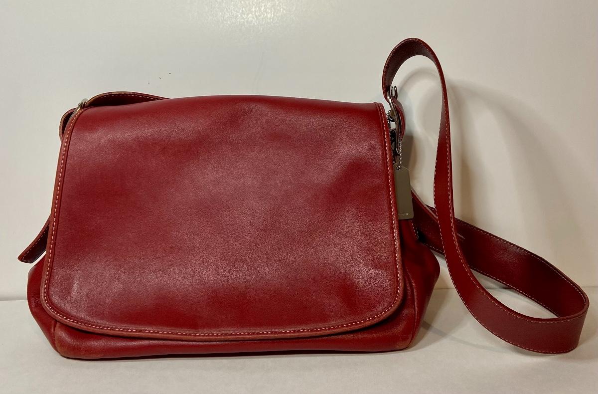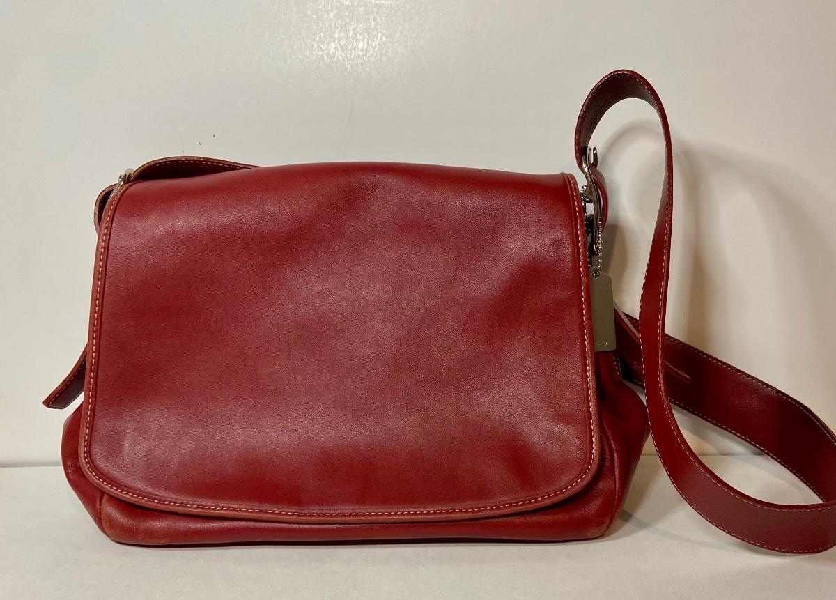 Lot 097: Red Leather Medium Coach Handbag w/ Coach Keychain