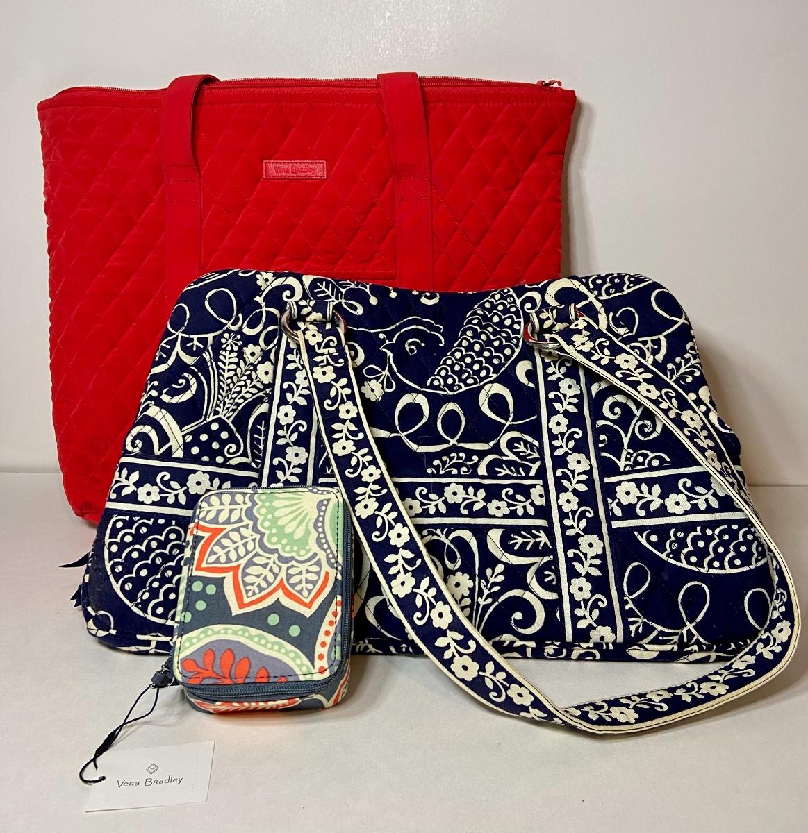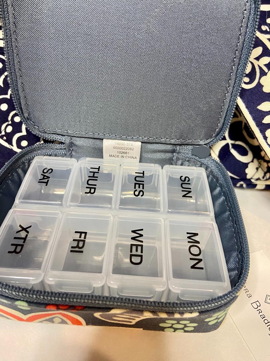 Travel pill box and 2 tote bags. Please see all pictures as they are the best representation of the items. The pictures show condition, measurements if taken, and what is included in the lot. Due to the large amount that we photograph and the time frame, we are not always able to take measurements. All items unless noted, are pre-owned and have been used. If you purchased furniture, you must bring help. We do not allow one person to carry large furniture out on their own. Bring help, tools and a truck for the safety of our client’s homes, and your personal safety. Company policy. Thank you